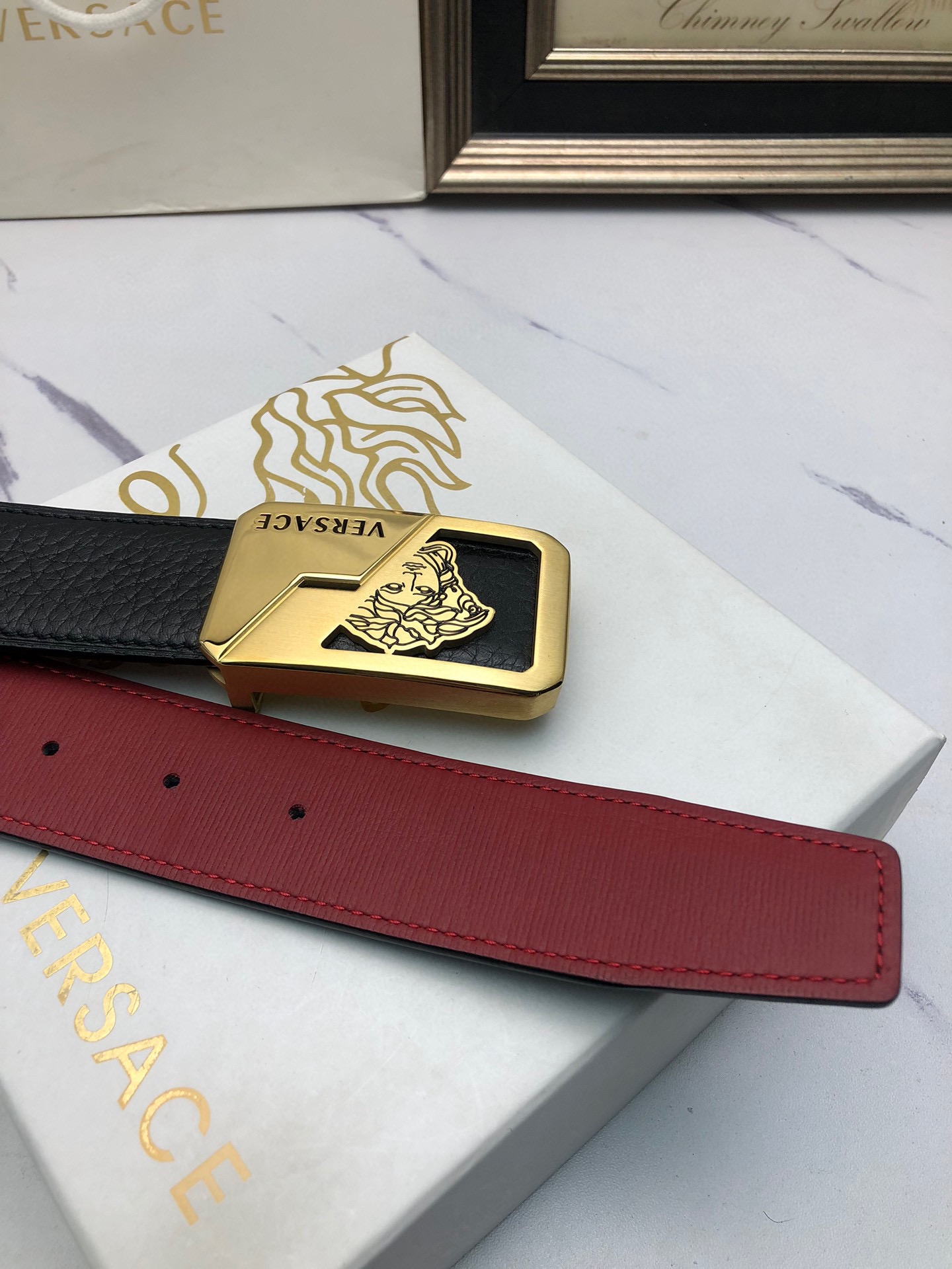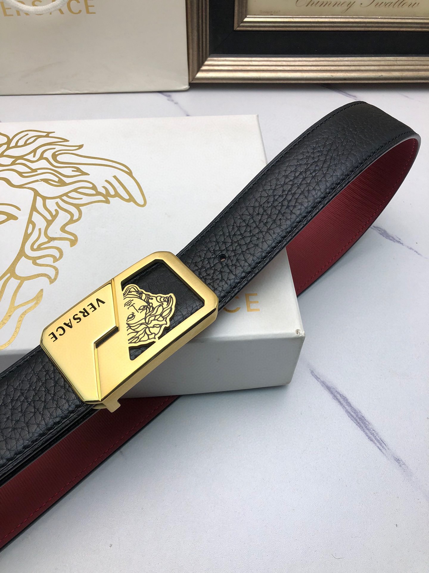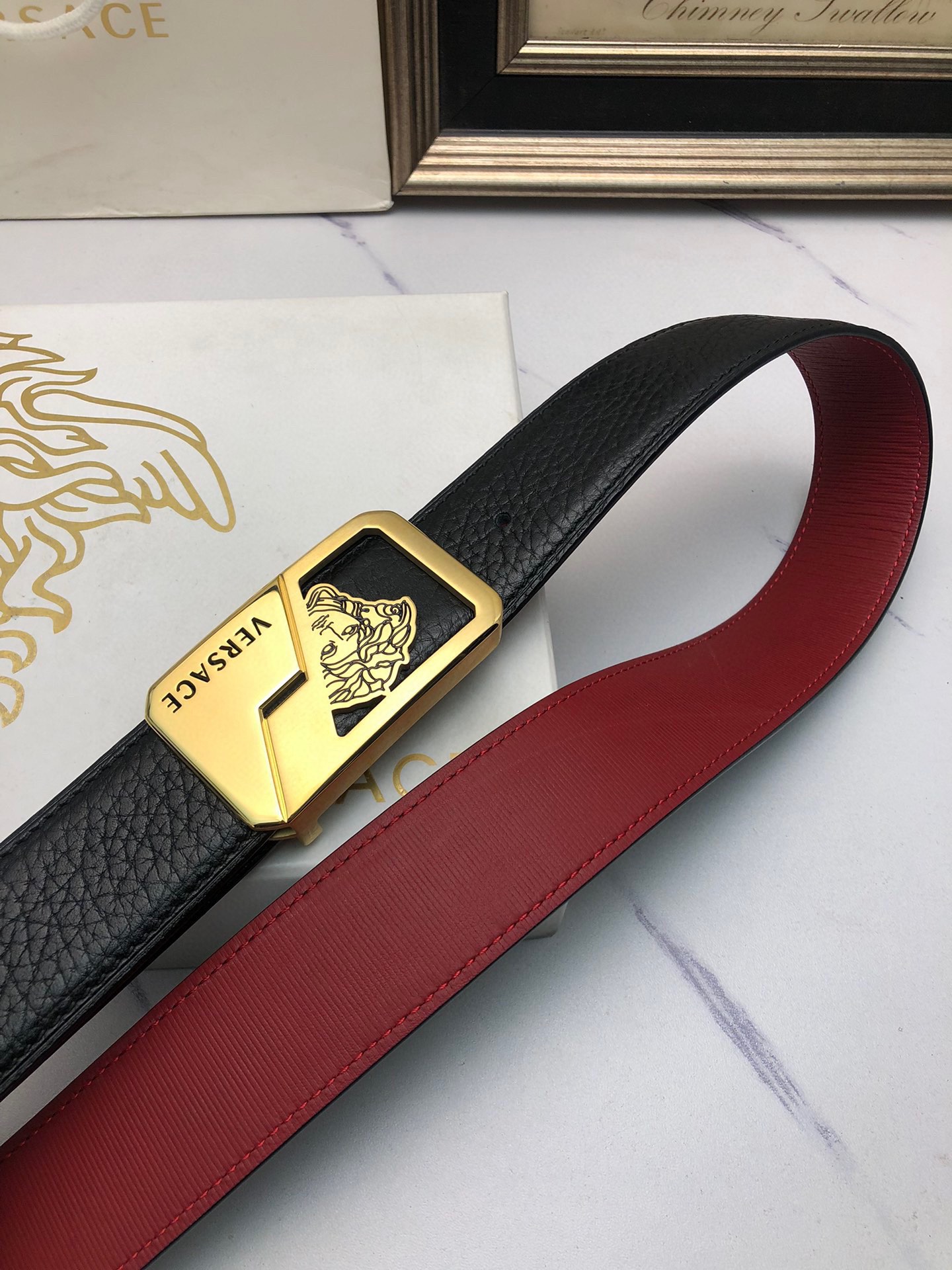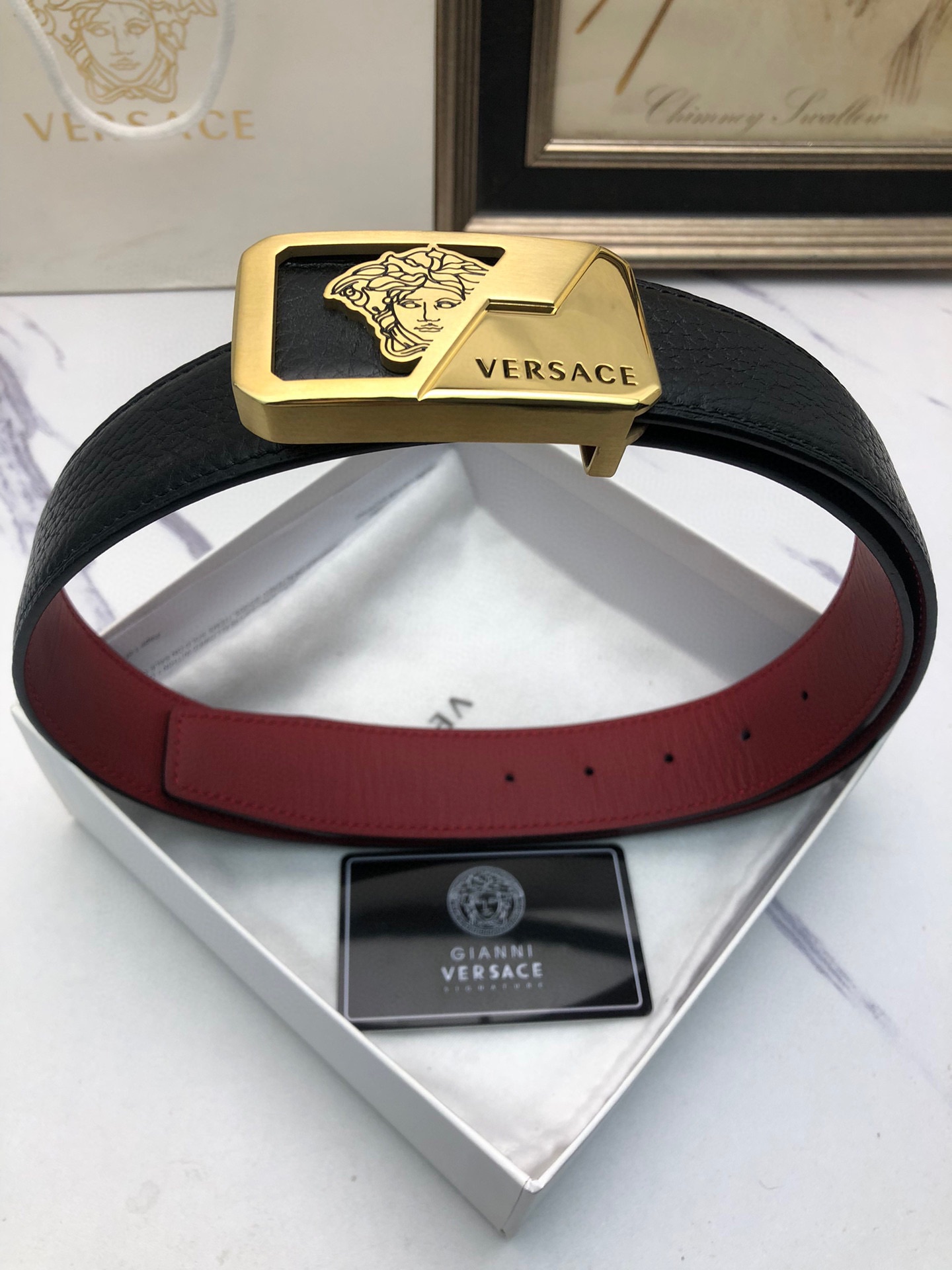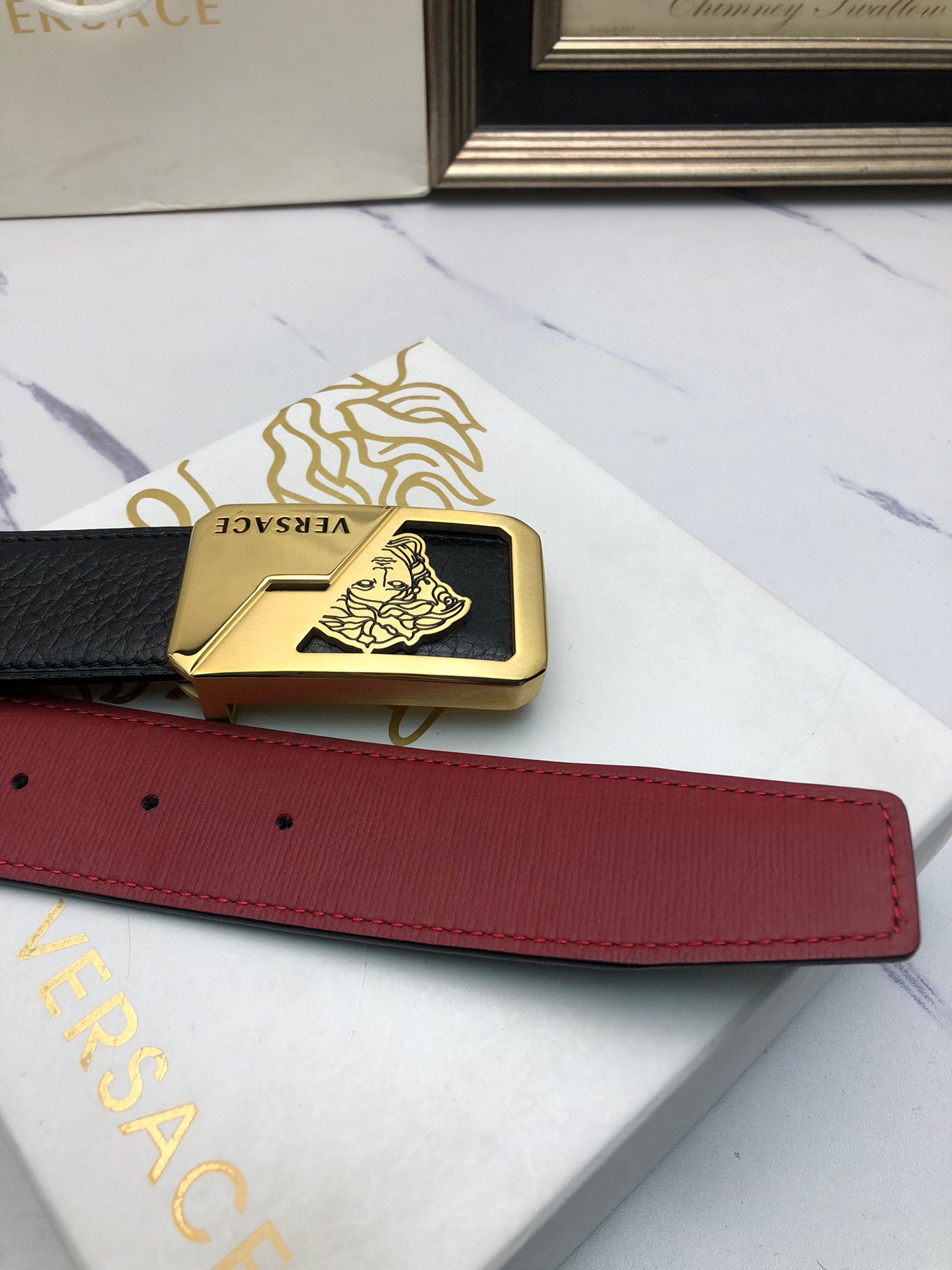 This belt is AAAAA 1:1 quality (superb). Materials used are identical to the original ones. Versace trademark marks are indistinguishable to the authentic. Photos take by actual belt, what you receive will be 100% same with our photos.