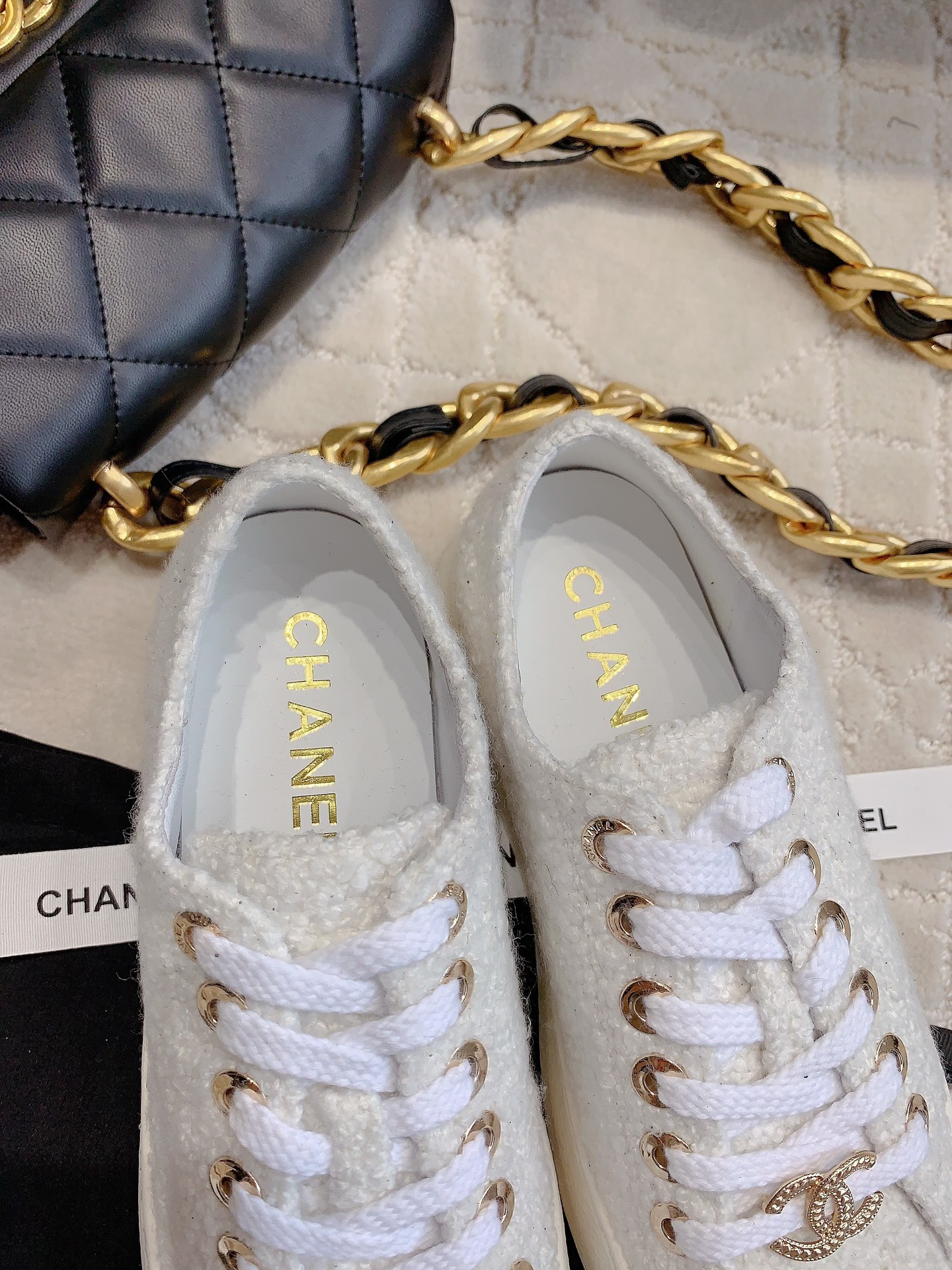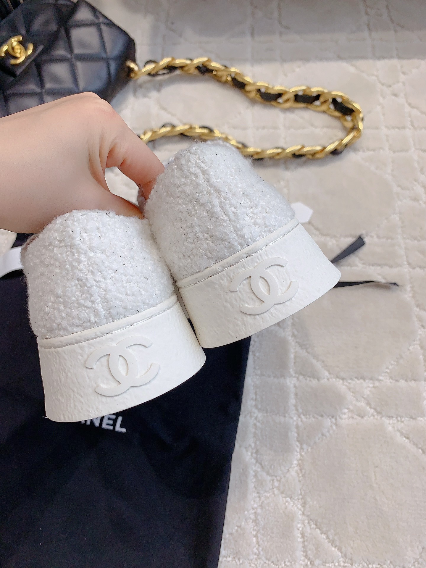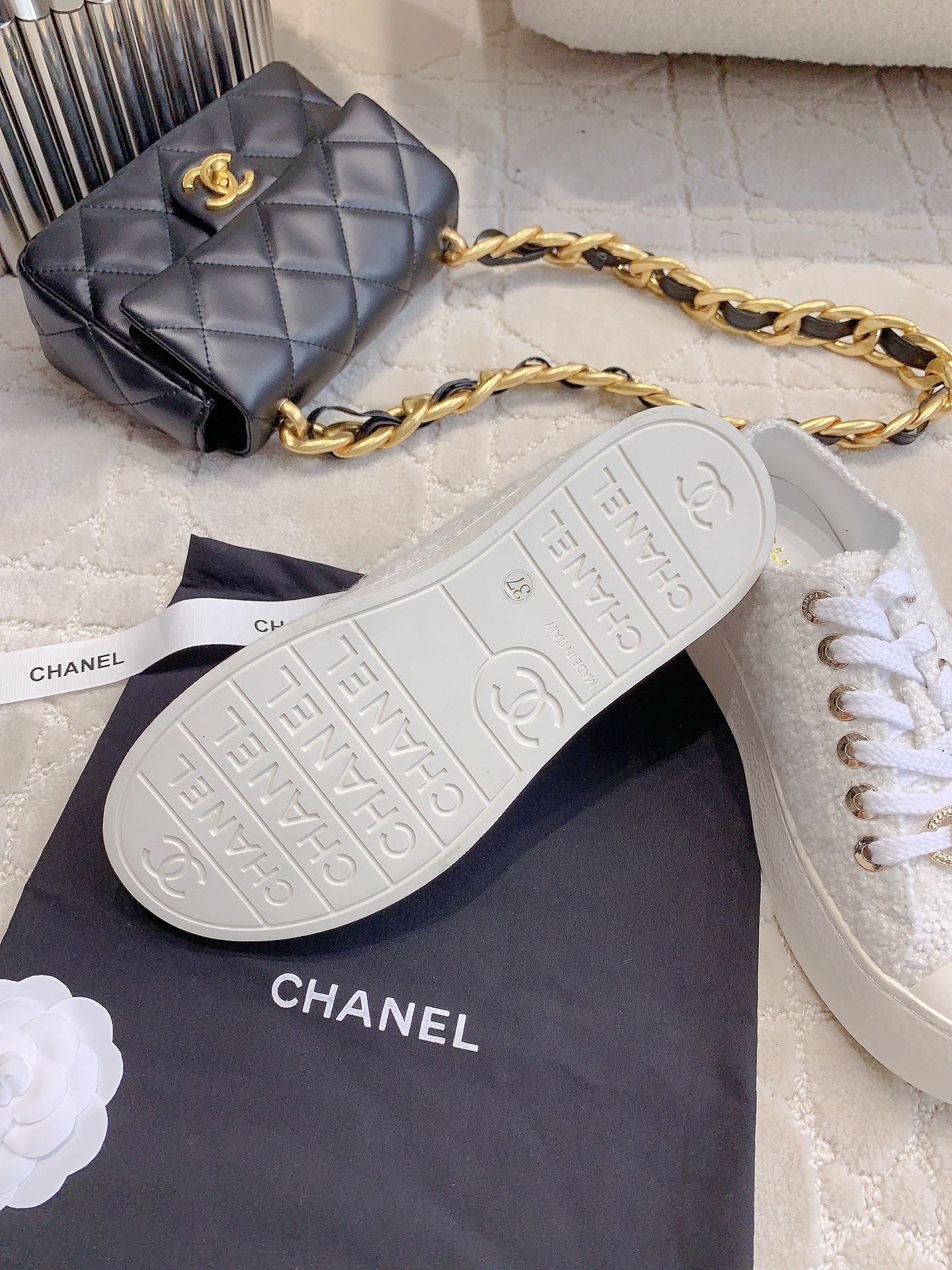 This shoes is AAAAA 1:1 quality (superb). Materials used are identical to the original ones. Chanel trademark marks are indistinguishable to the authentic. Photos take by actual shoes, what you receive will be 100% same with our photos.