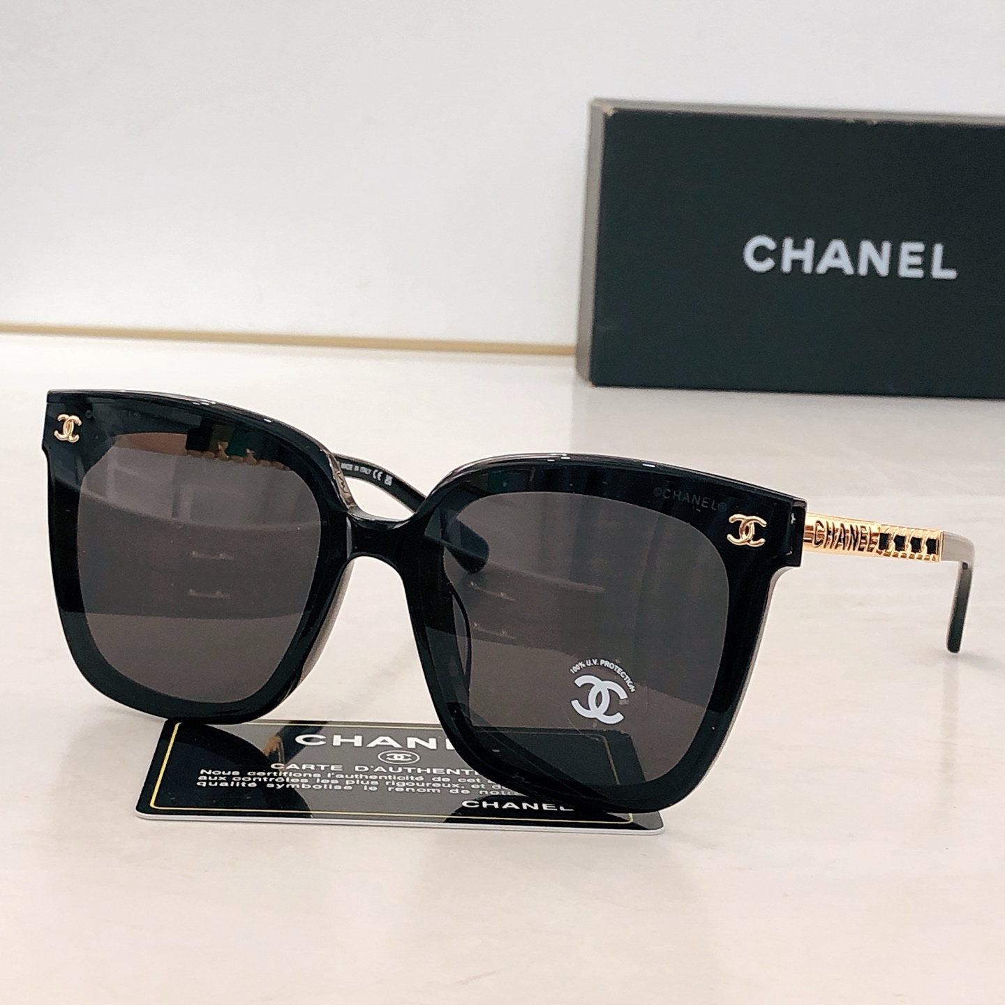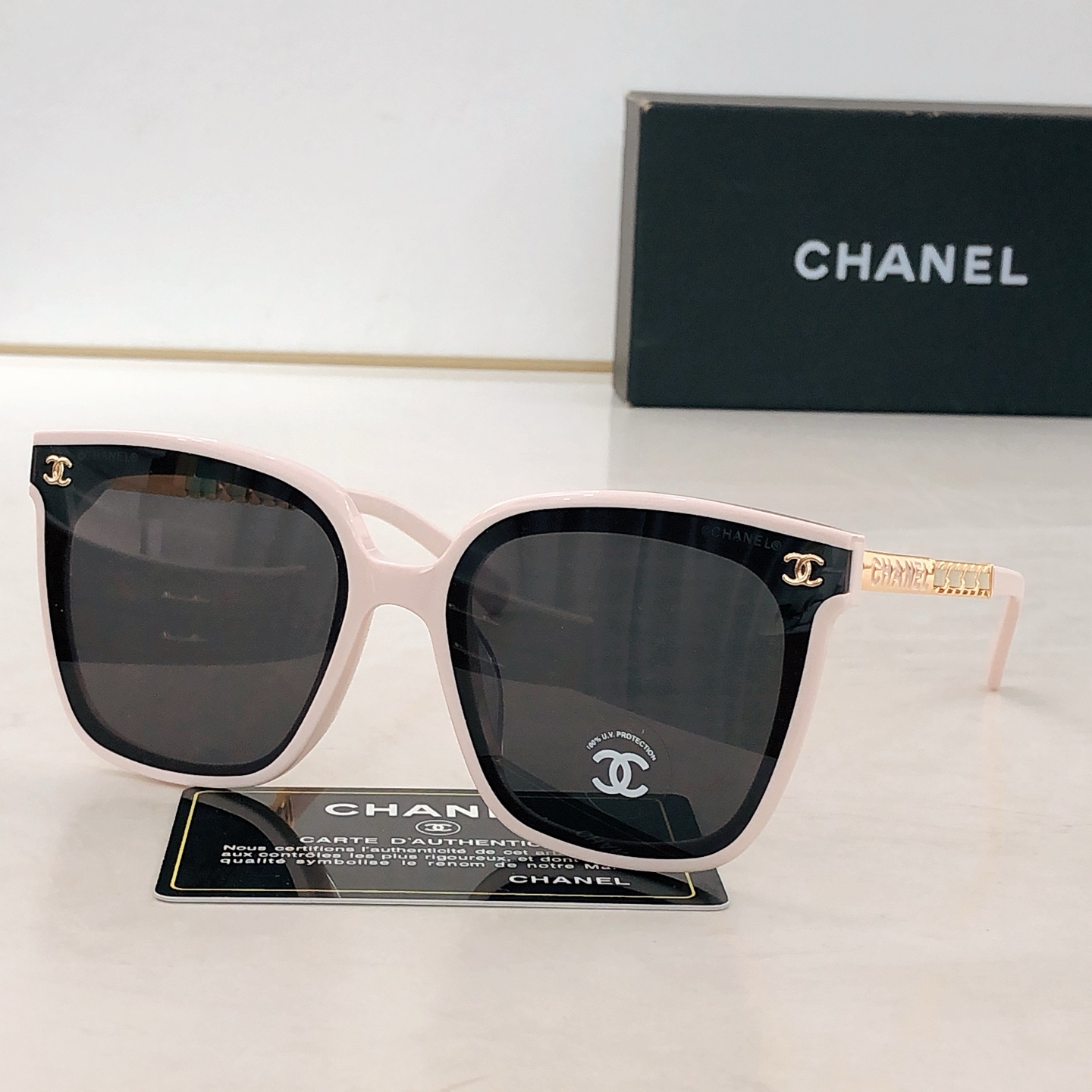 This sunglasses is AAAAA 1:1 quality (superb). Materials used are identical to the original ones. Chanel trademark marks are indistinguishable to the authentic. Photos take by actual sunglasses, what you receive will be 100% same with our photos.