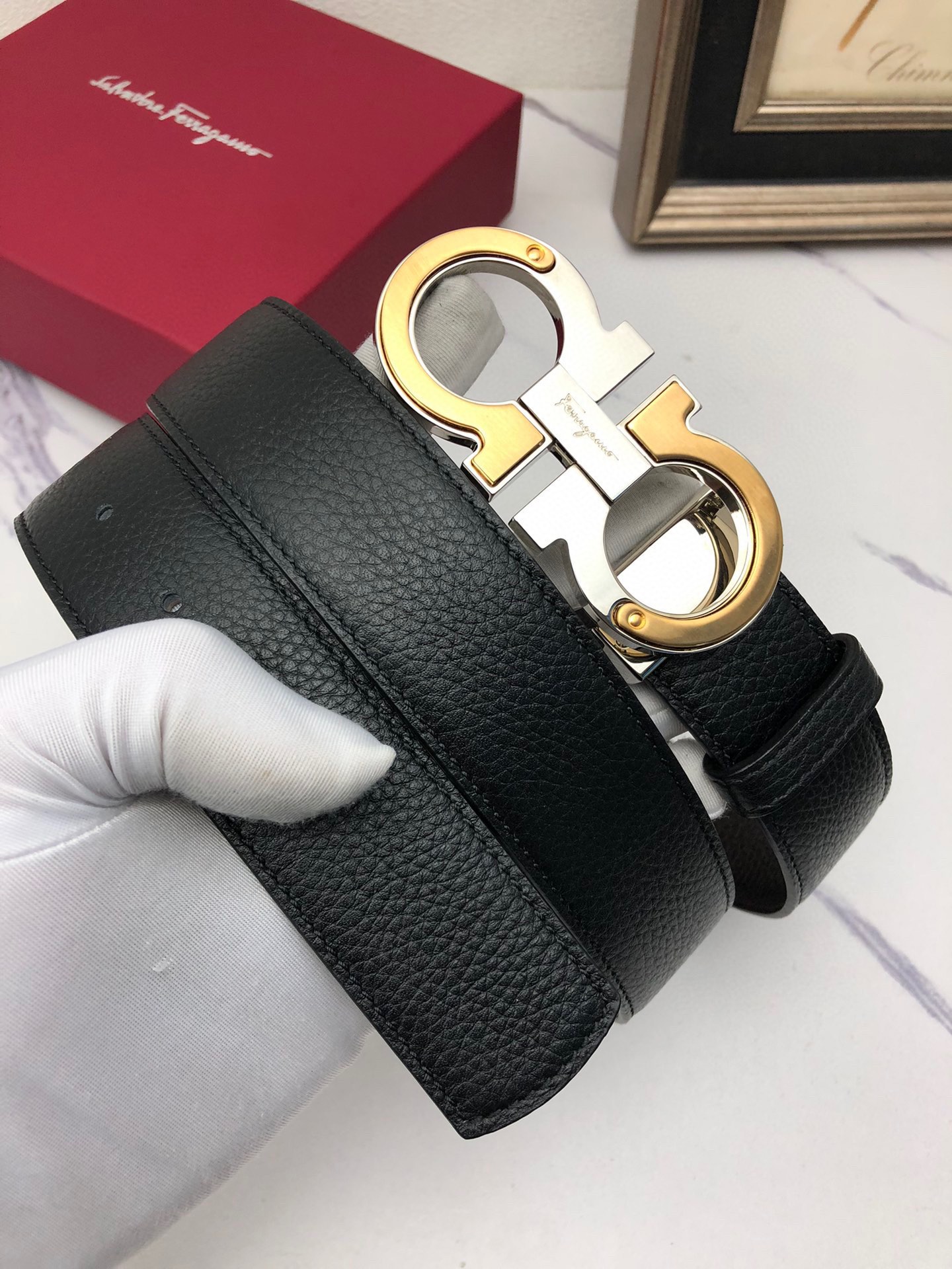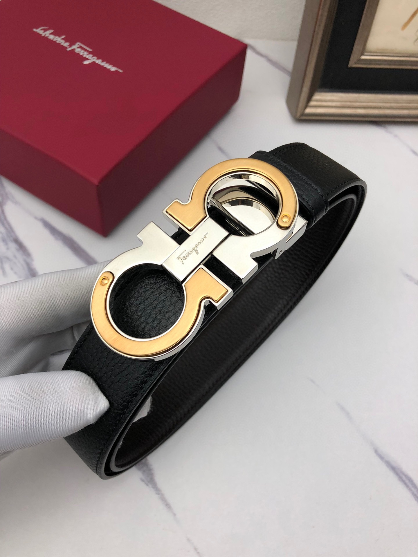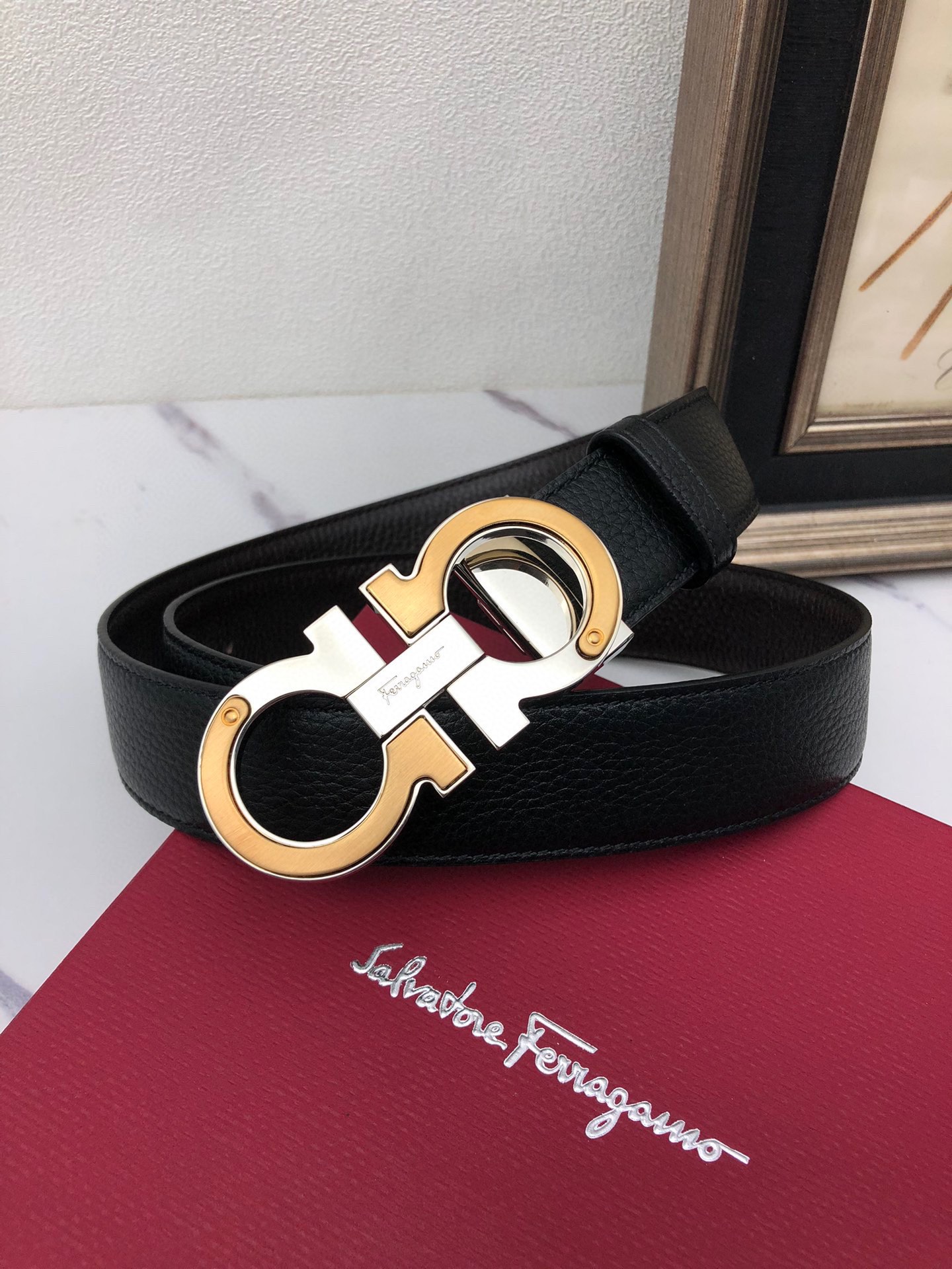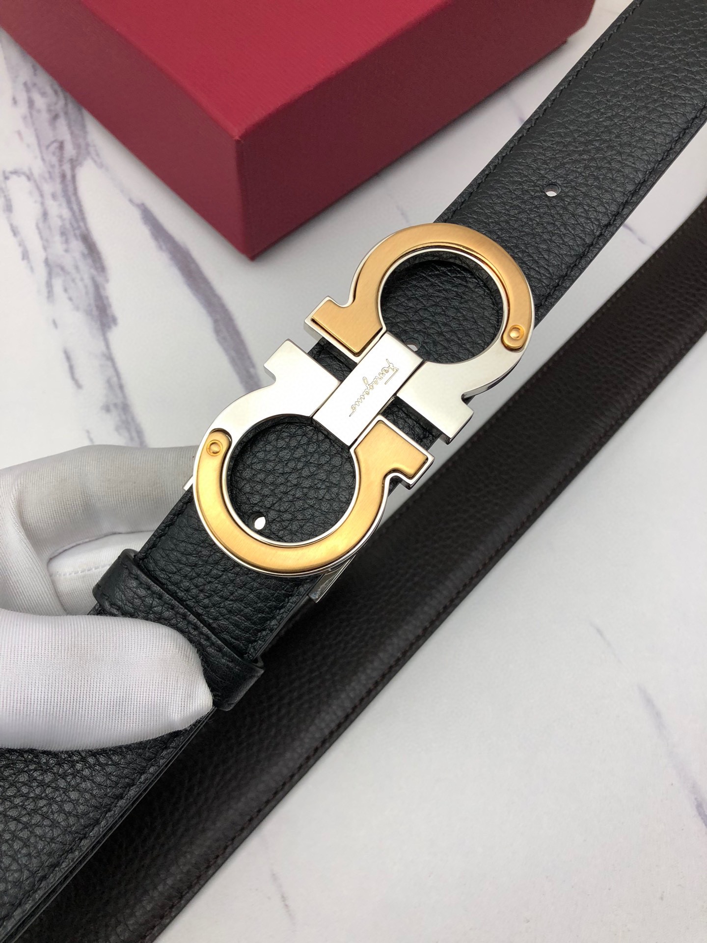 This belt is AAAAA 1:1 quality (superb). Materials used are identical to the original ones. Salvatore Ferragamo trademark marks are indistinguishable to the authentic. Photos take by actual belt, what you receive will be 100% same with our photos.