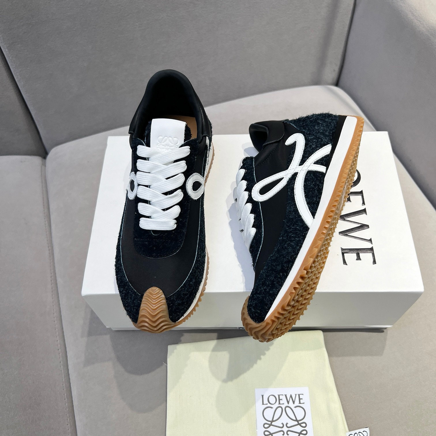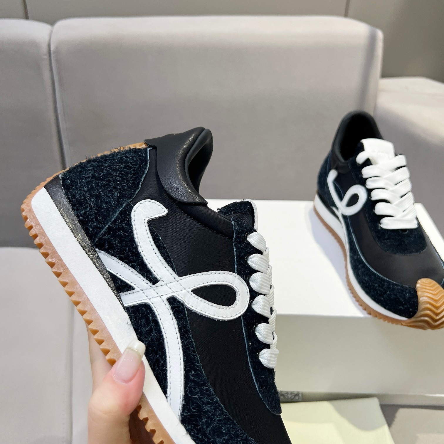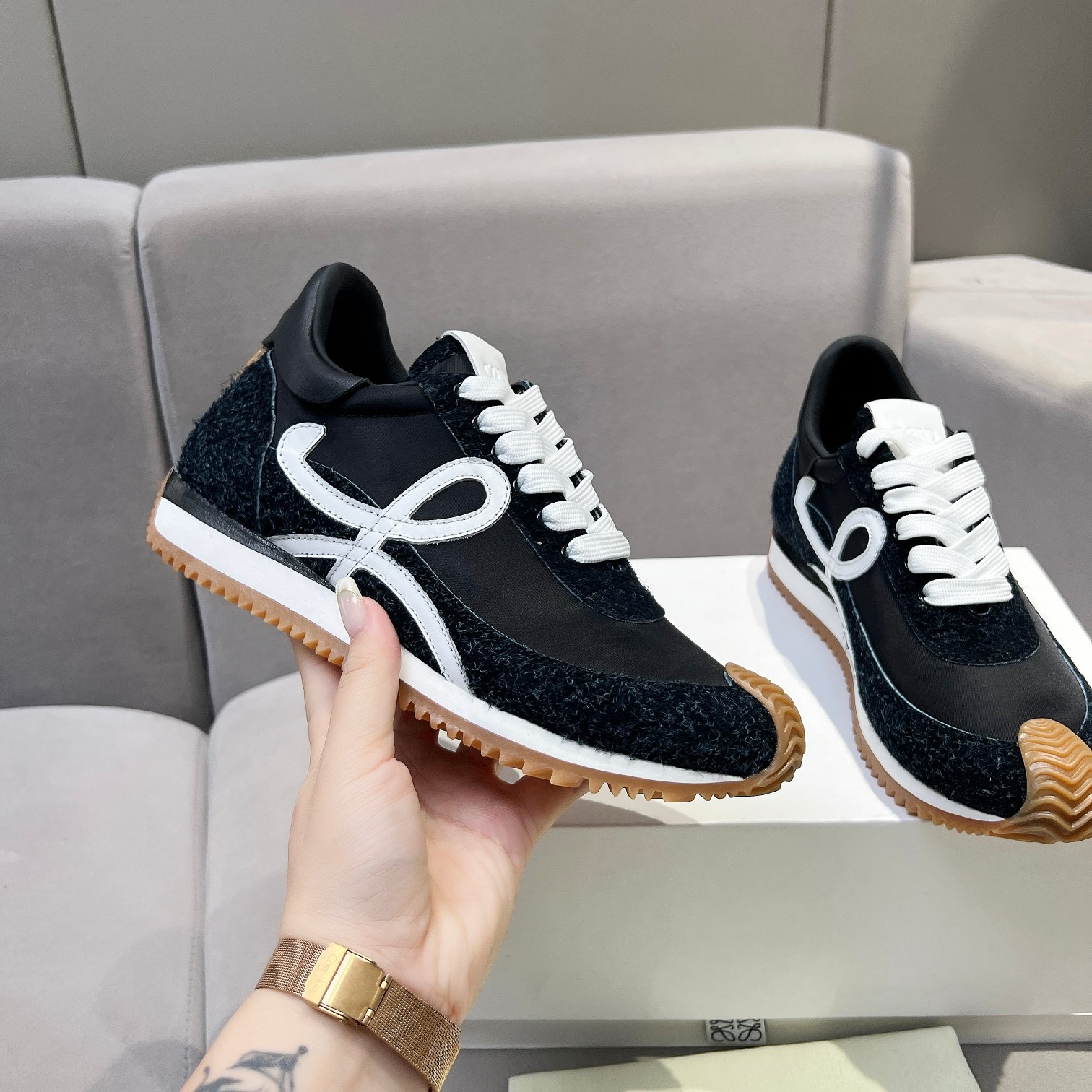 This shoes is AAAAA 1:1 quality (superb). Materials used are identical to the original ones. Loewe trademark marks are indistinguishable to the authentic. Photos take by actual shoes, what you receive will be 100% same with our photos.