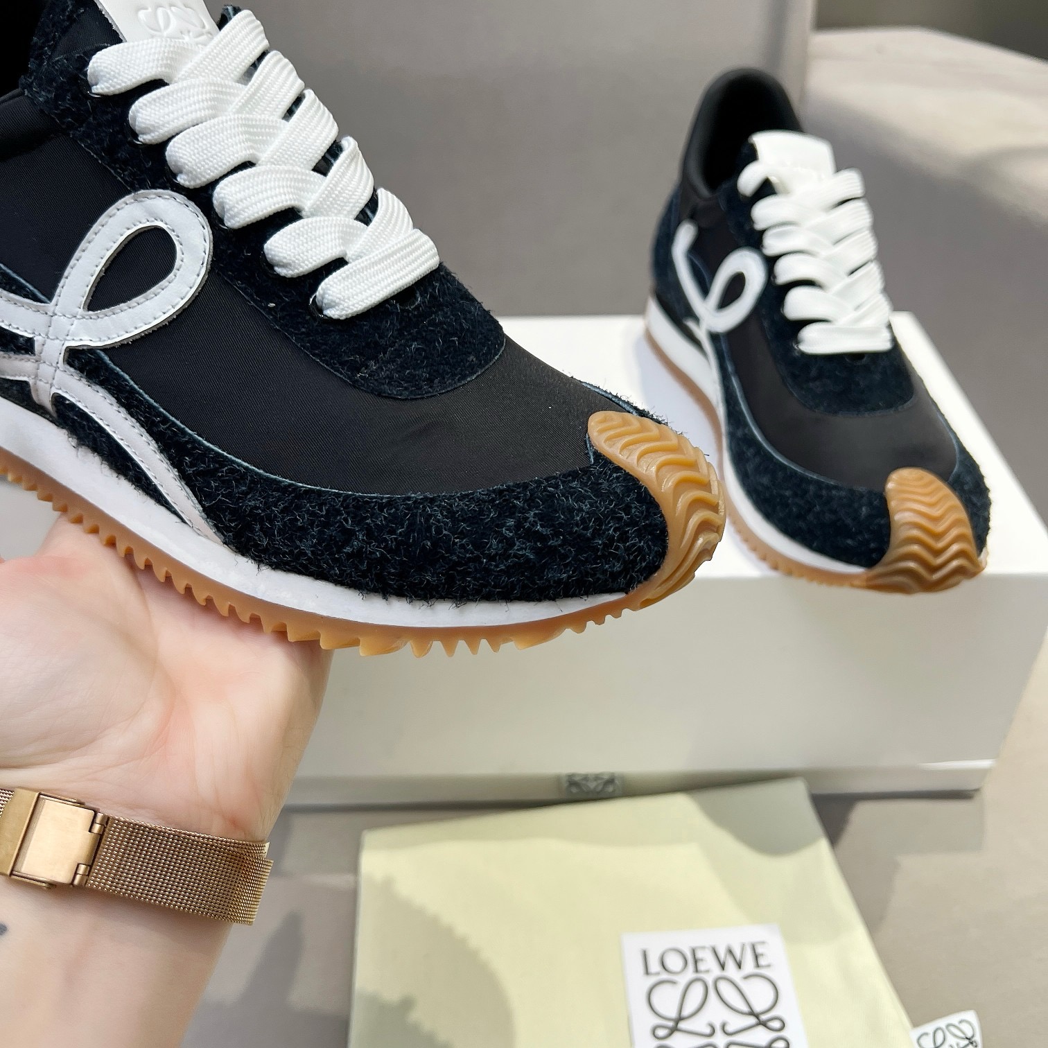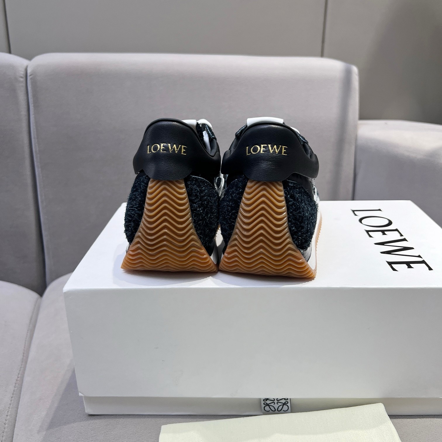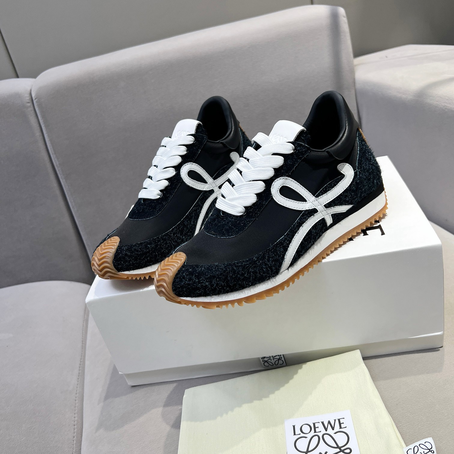 This shoes is AAAAA 1:1 quality (superb). Materials used are identical to the original ones. Loewe trademark marks are indistinguishable to the authentic. Photos take by actual shoes, what you receive will be 100% same with our photos.