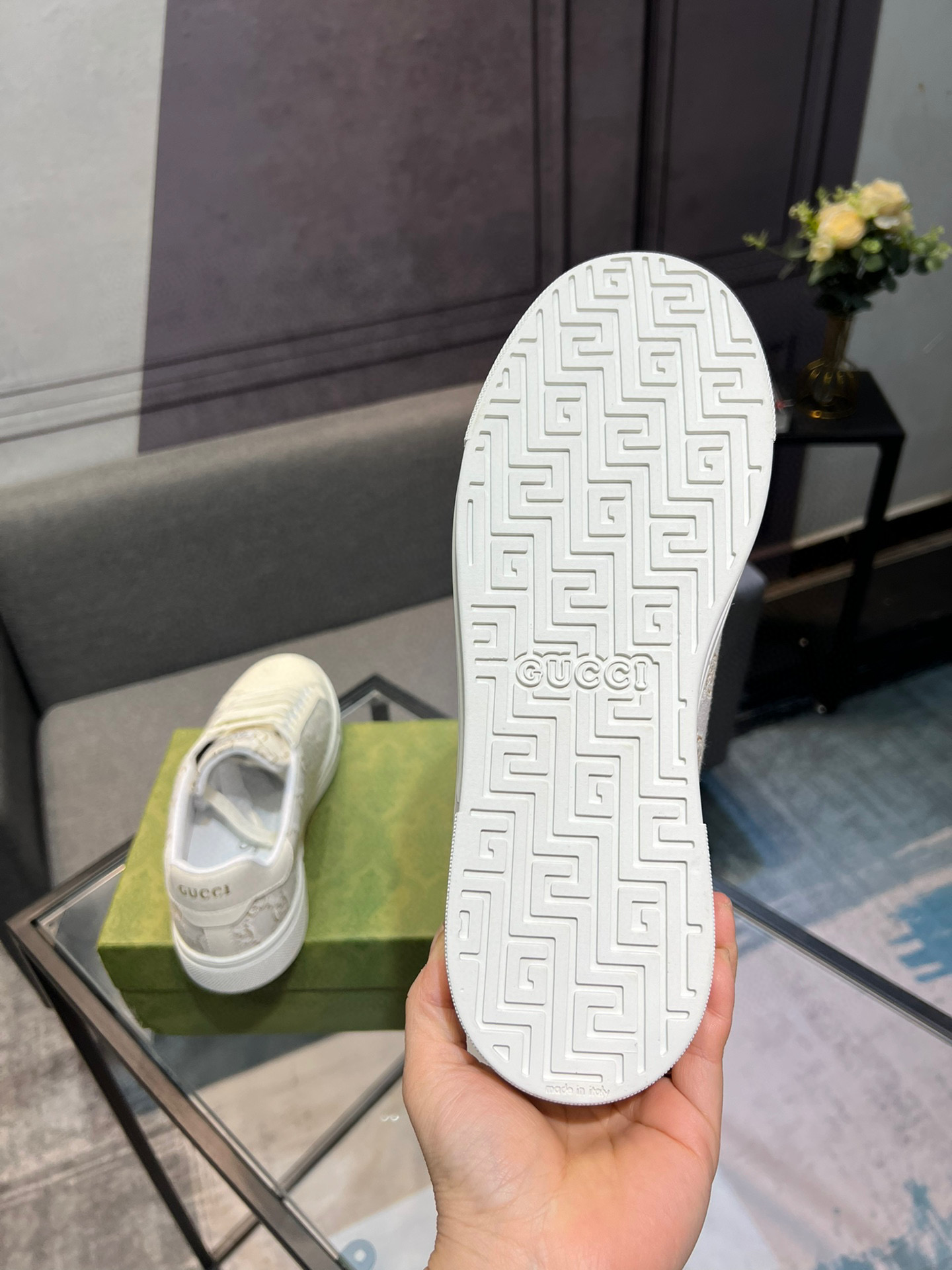 This shoes is AAAAA 1:1 quality (superb). Materials used are identical to the original ones. Gucci trademark marks are indistinguishable to the authentic. Photos take by actual shoes, what you receive will be 100% same with our photos.