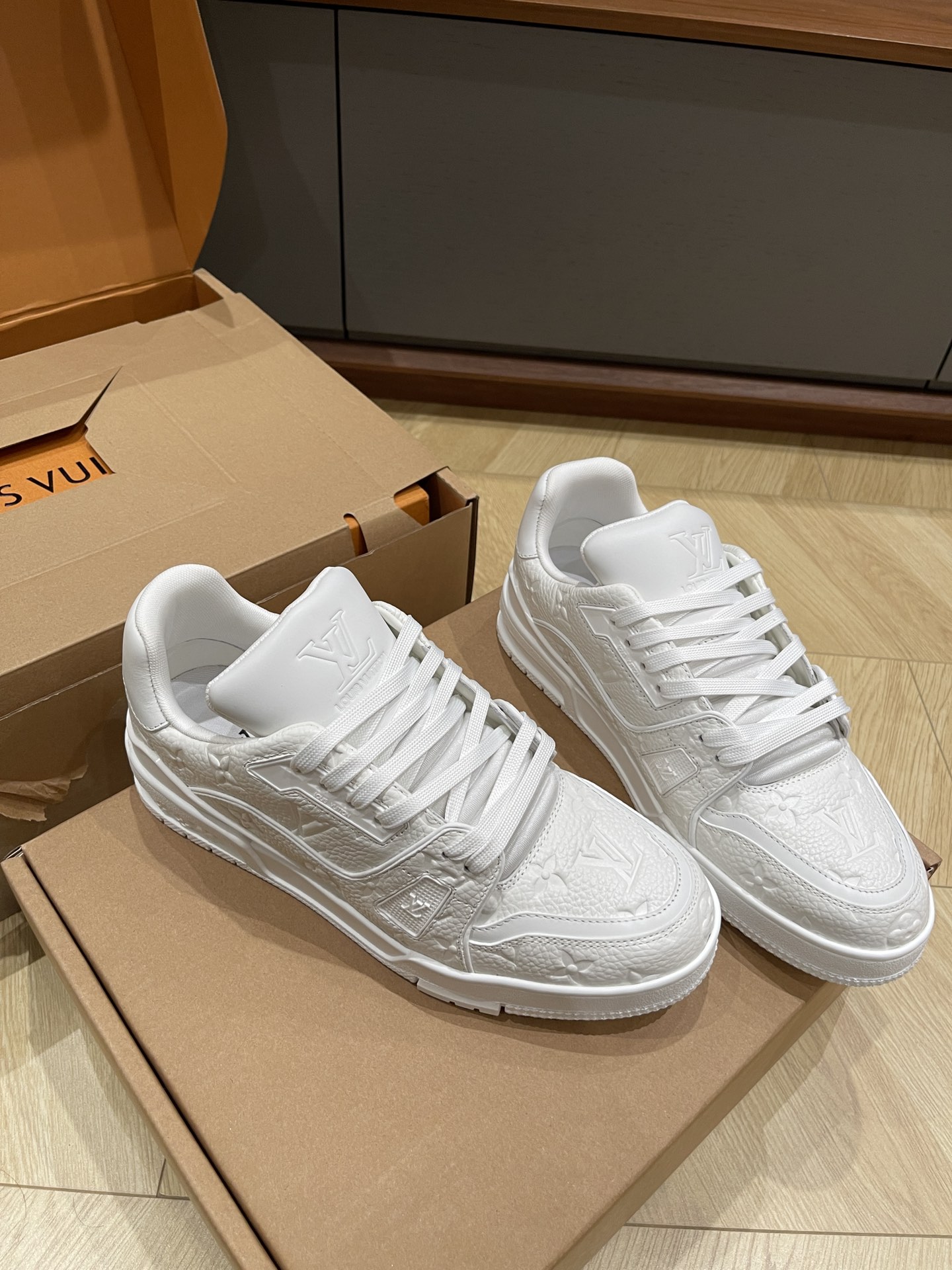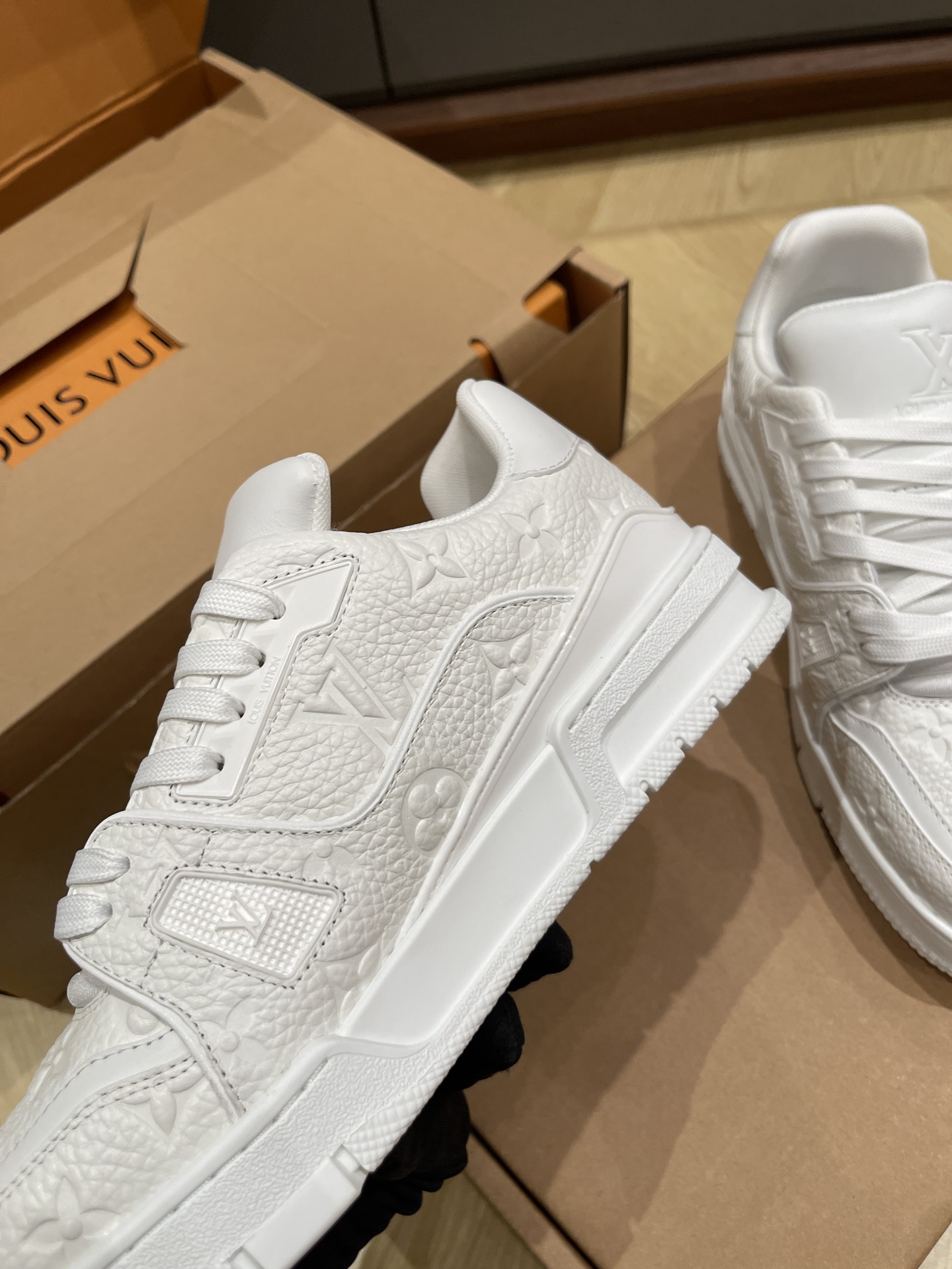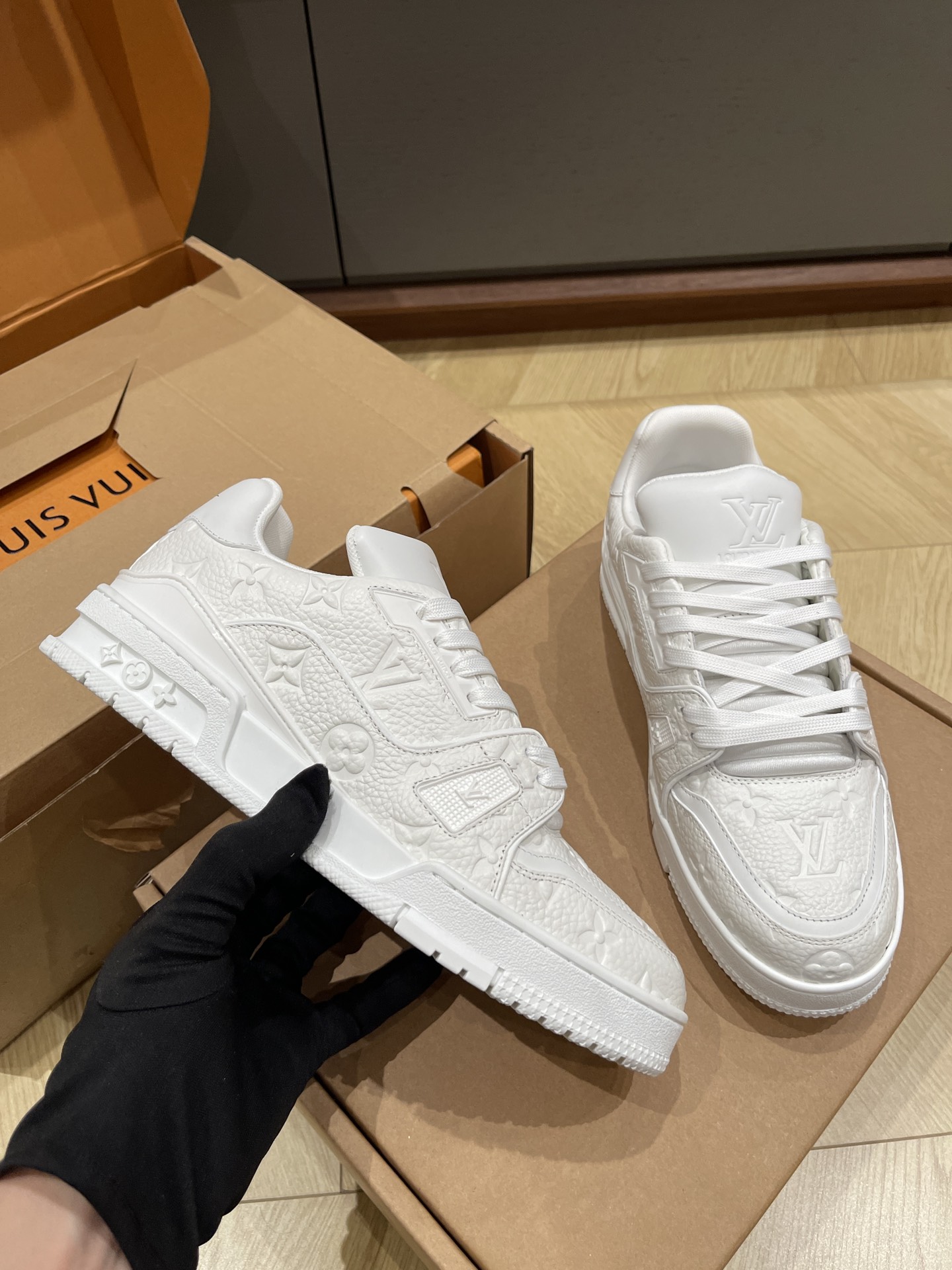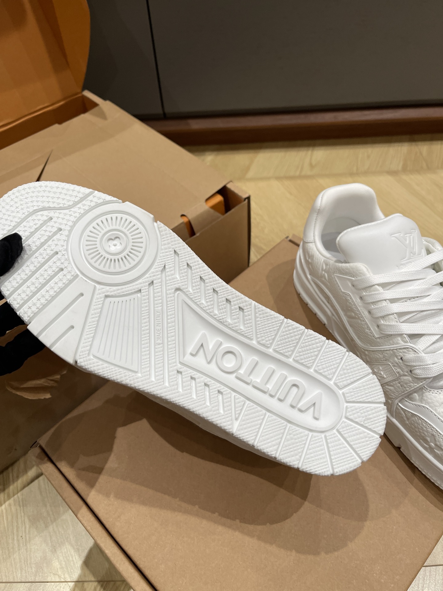 This shoes is AAAAA 1:1 quality (superb). Materials used are identical to the original ones. Louis Vuitton trademark marks are indistinguishable to the authentic. Photos take by actual shoes, what you receive will be 100% same with our photos.