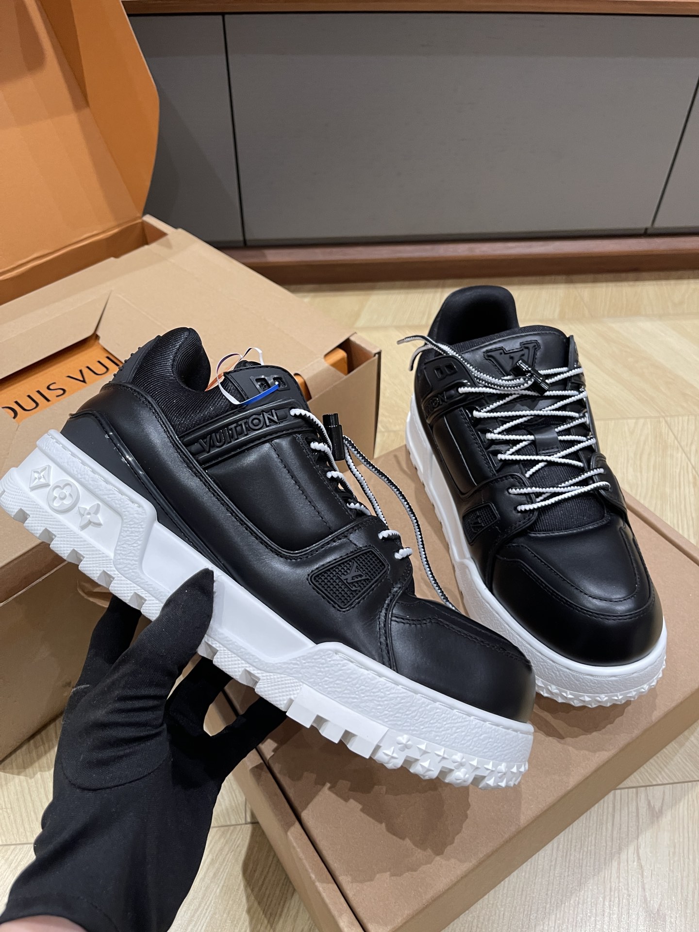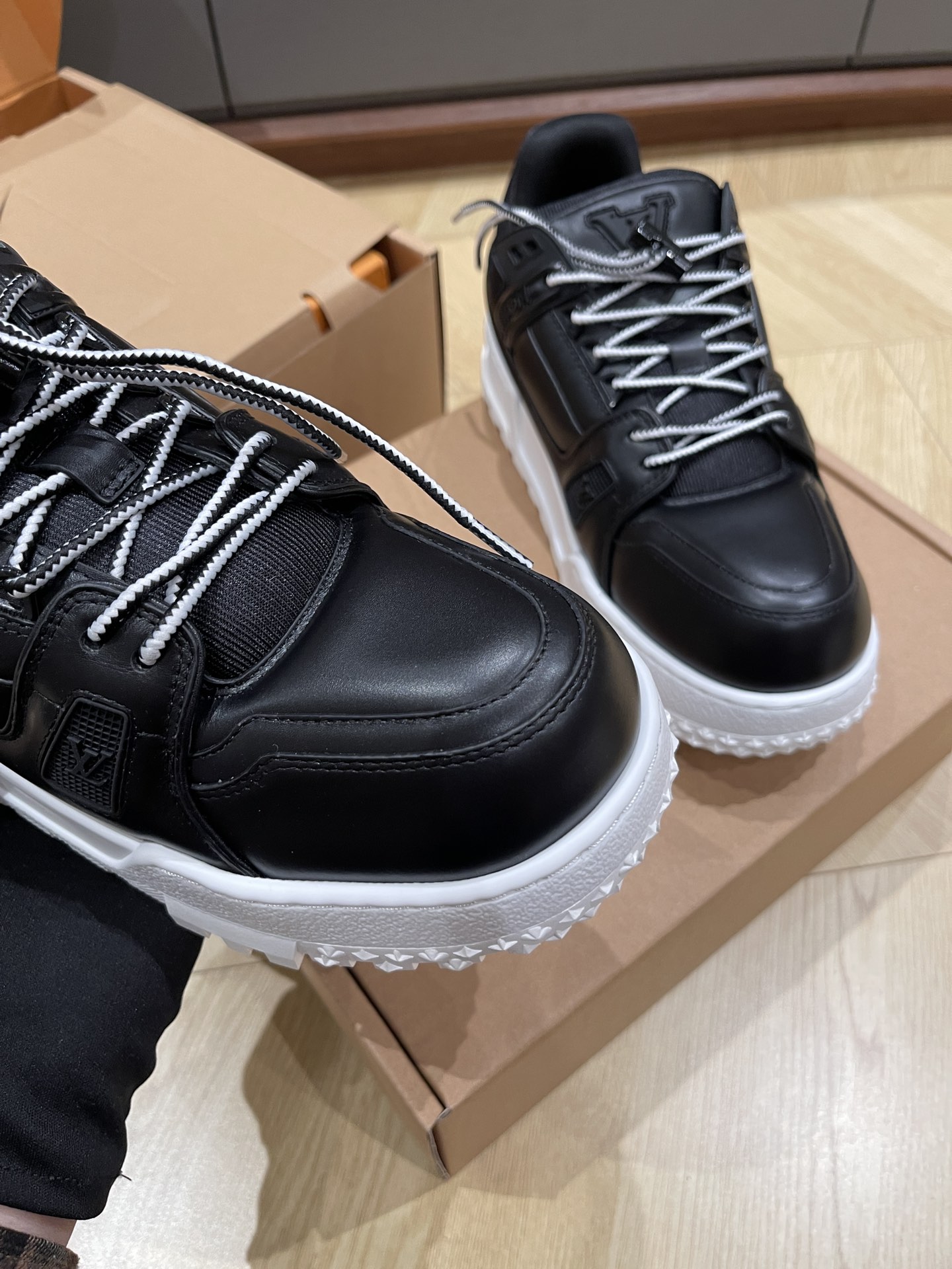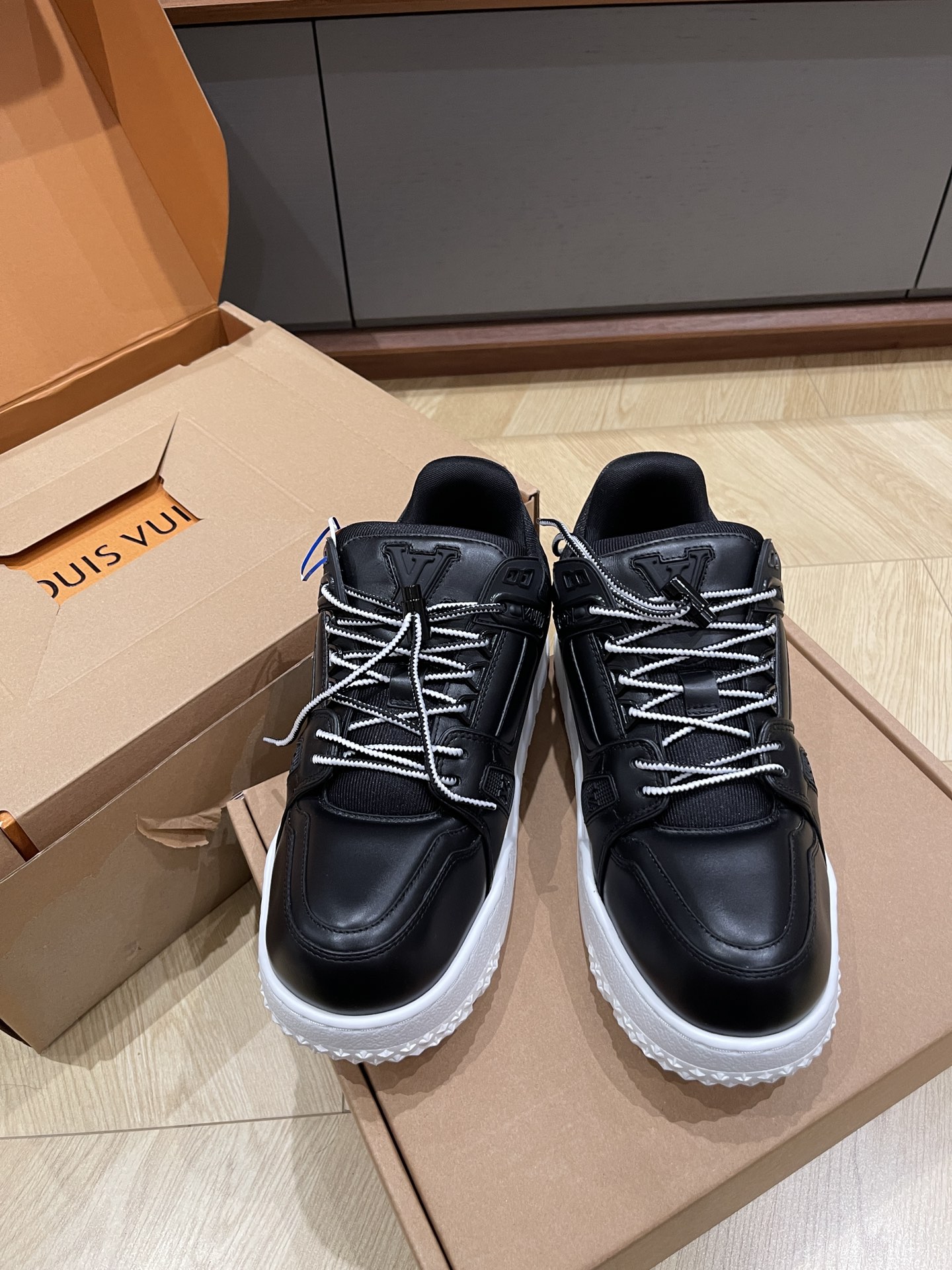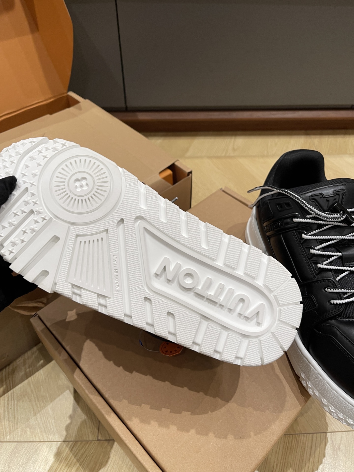 This shoes is AAAAA 1:1 quality (superb). Materials used are identical to the original ones. Louis Vuitton trademark marks are indistinguishable to the authentic. Photos take by actual shoes, what you receive will be 100% same with our photos.