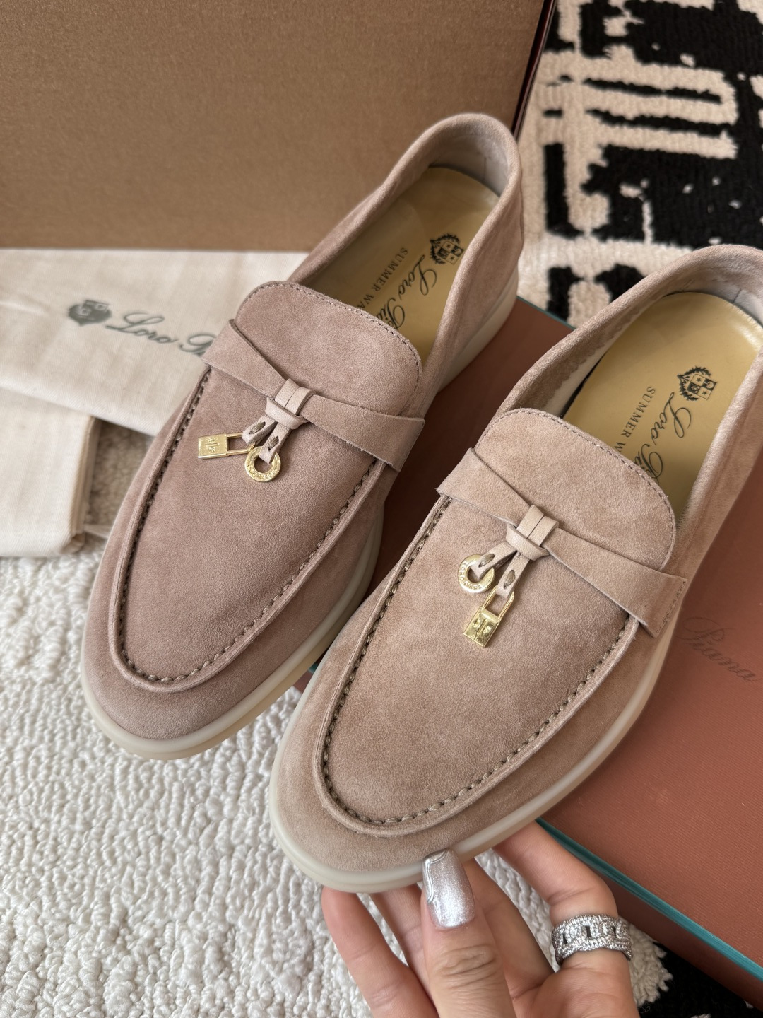 This shoes is AAAAA 1:1 quality (superb). Materials used are identical to the original ones. Loro Piana trademark marks are indistinguishable to the authentic. Photos take by actual shoes, what you receive will be 100% same with our photos.