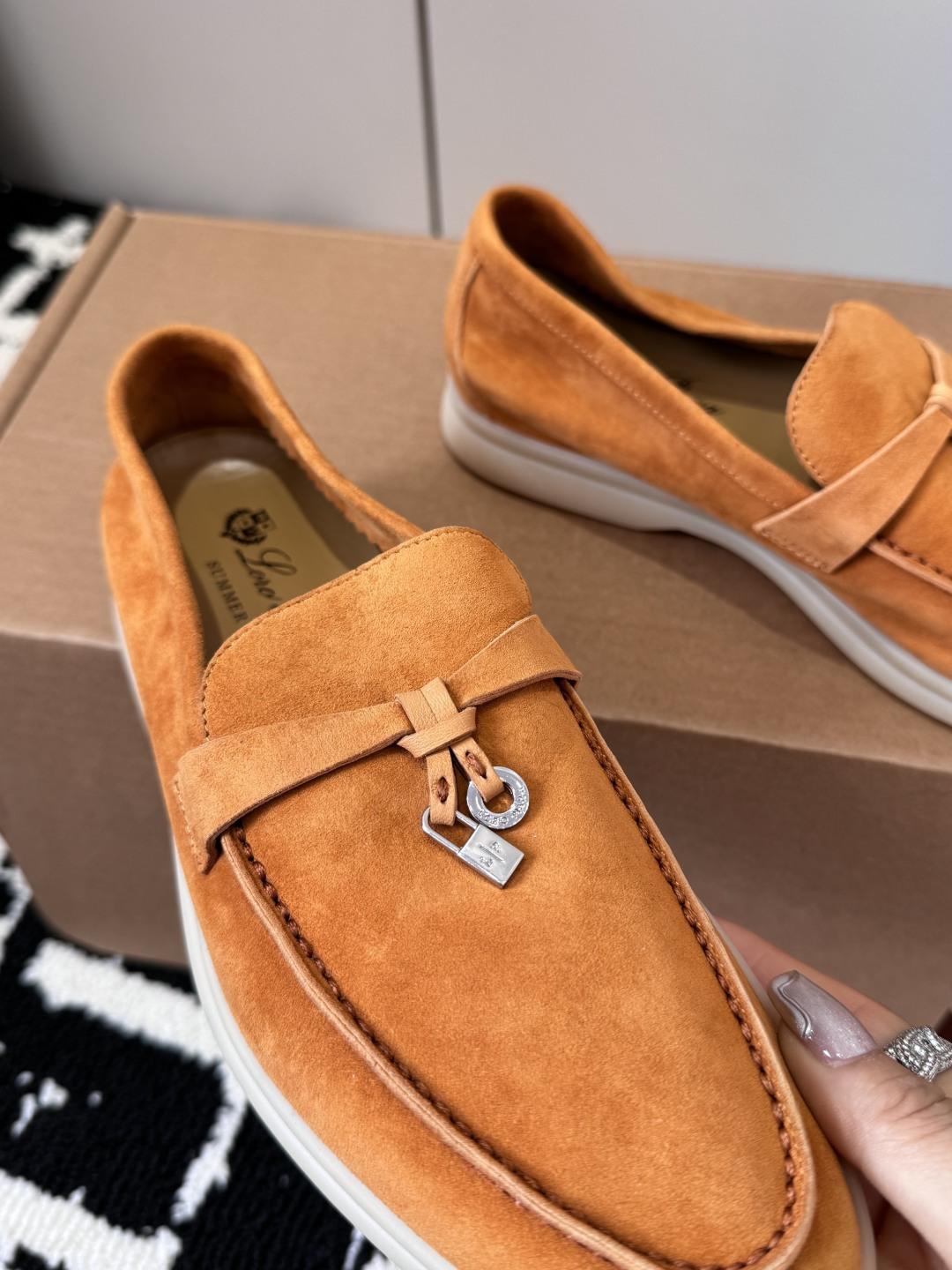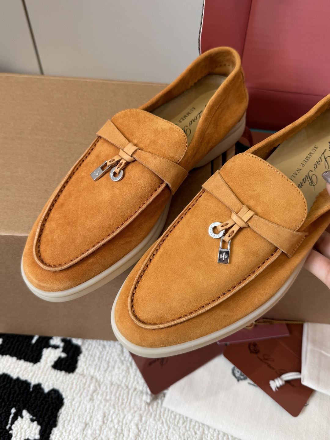 This shoes is AAAAA 1:1 quality (superb). Materials used are identical to the original ones. Loro Piana trademark marks are indistinguishable to the authentic. Photos take by actual shoes, what you receive will be 100% same with our photos.