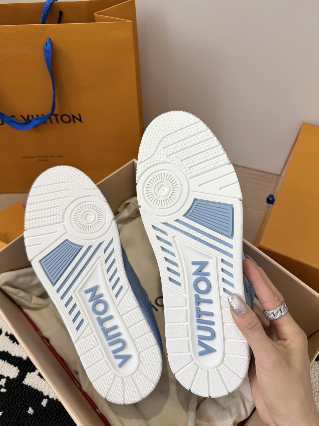 This shoes is AAAAA 1:1 quality (superb). Materials used are identical to the original ones. Louis Vuitton trademark marks are indistinguishable to the authentic. Photos take by actual shoes, what you receive will be 100% same with our photos.