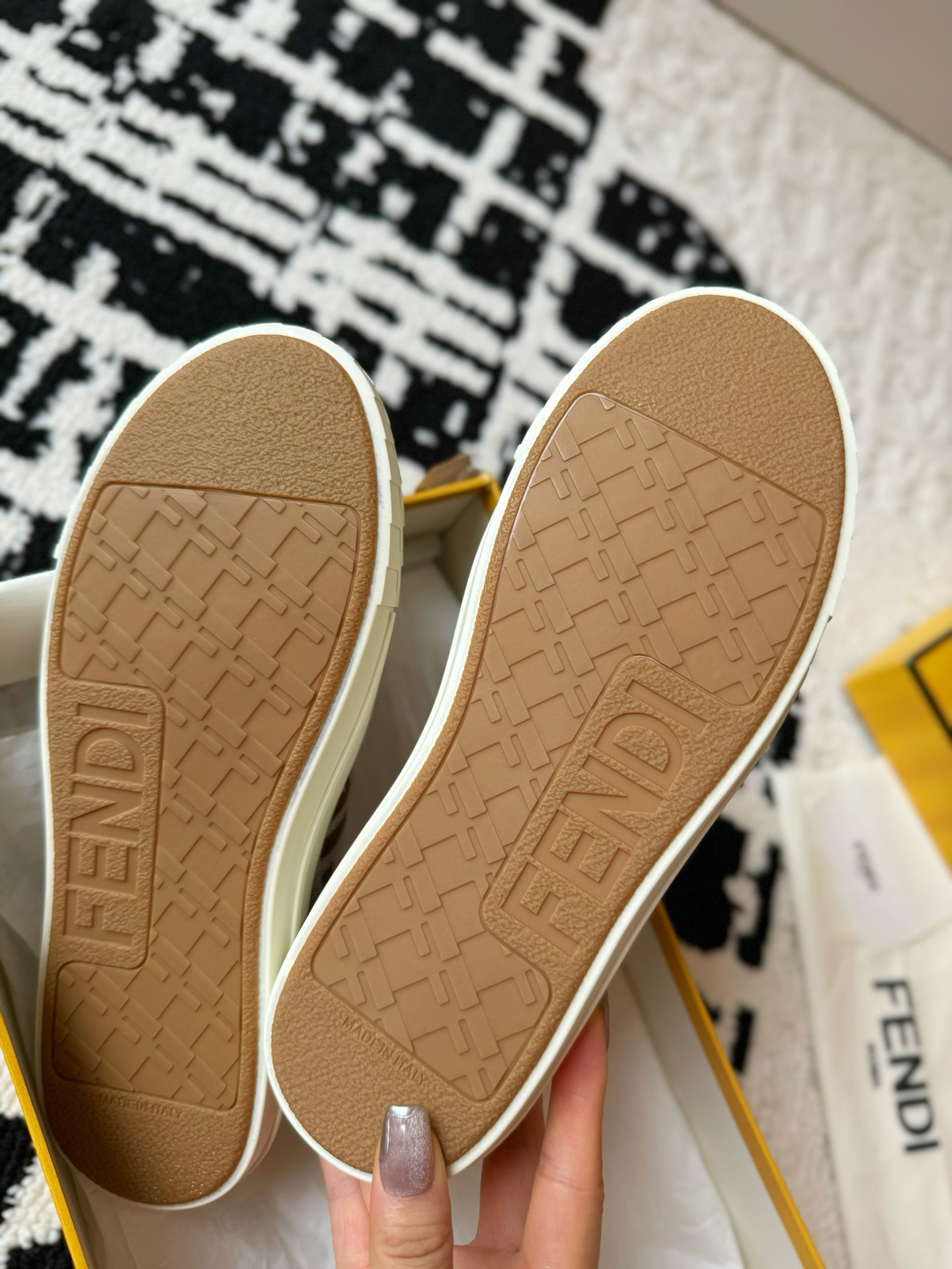 This shoes is AAAAA 1:1 quality (superb). Materials used are identical to the original ones. Fendi trademark marks are indistinguishable to the authentic. Photos take by actual shoes, what you receive will be 100% same with our photos.