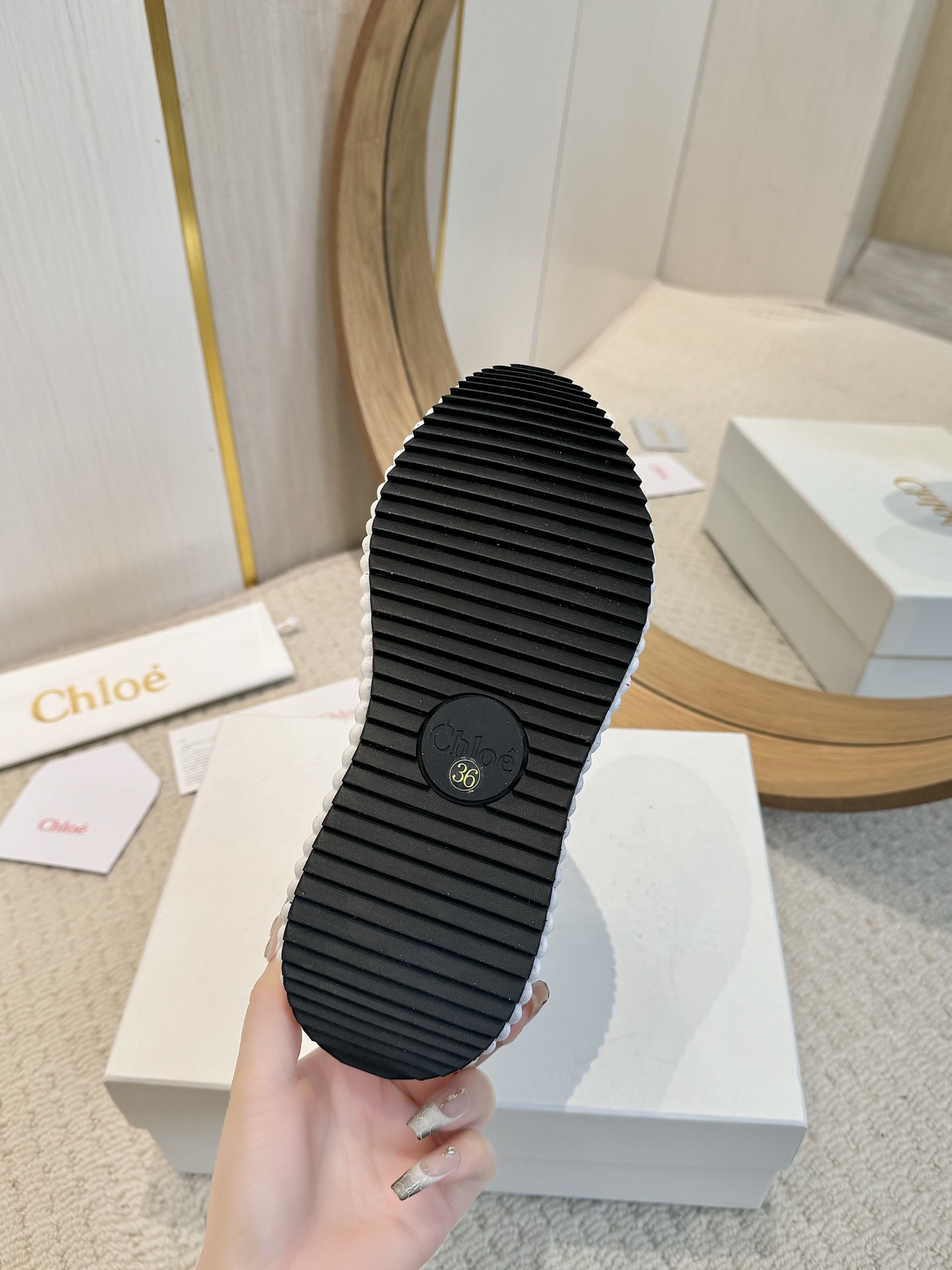 This shoes is AAAAA 1:1 quality (superb). Materials used are identical to the original ones. Chloe trademark marks are indistinguishable to the authentic. Photos take by actual shoes, what you receive will be 100% same with our photos.