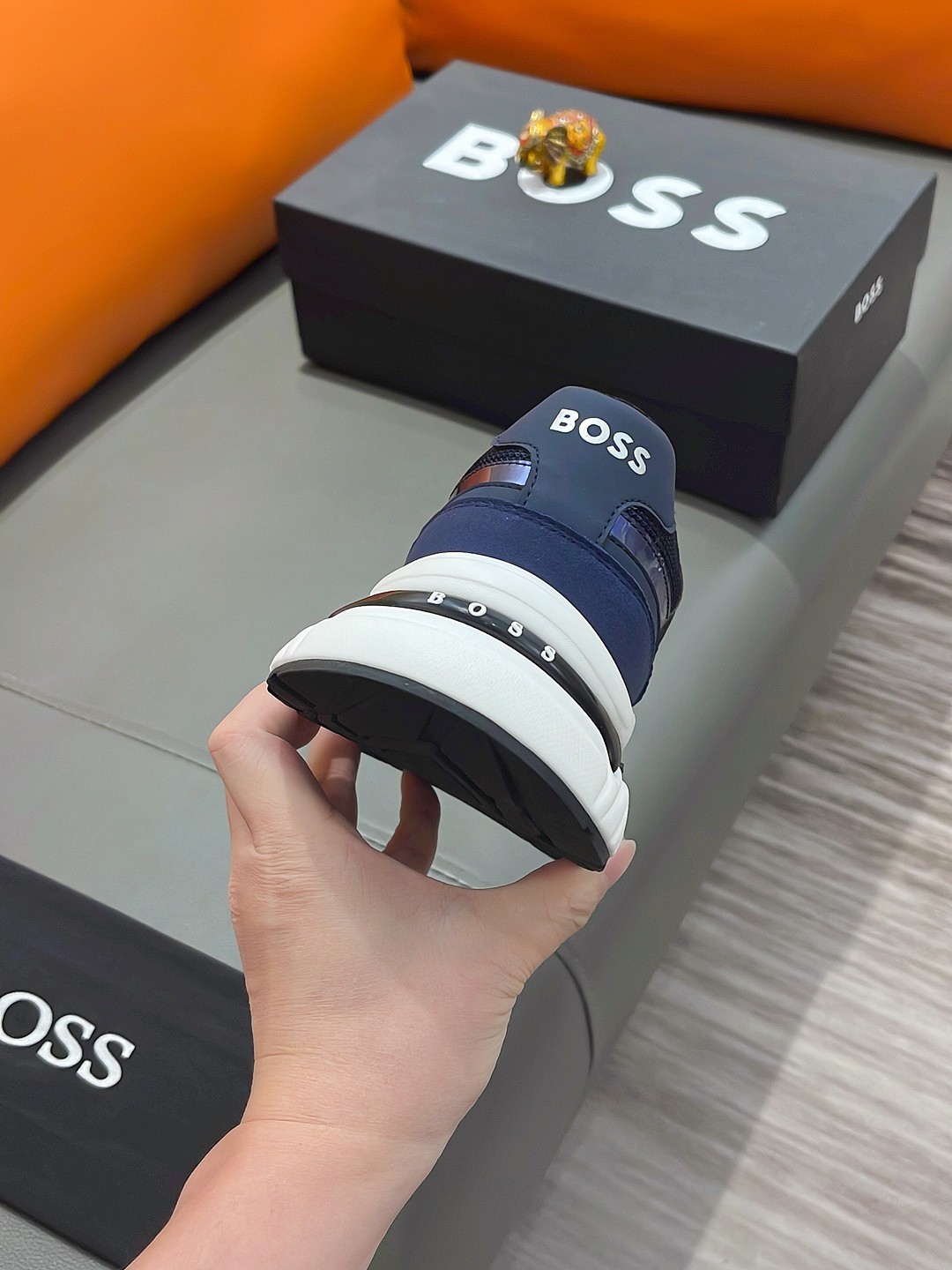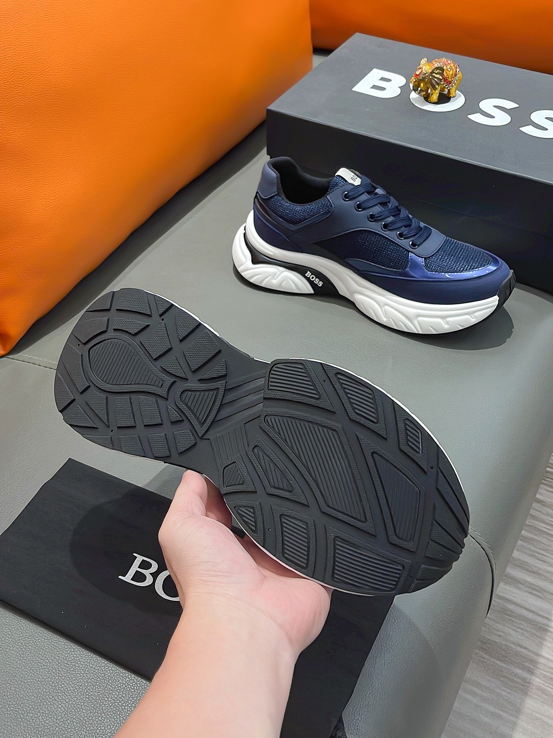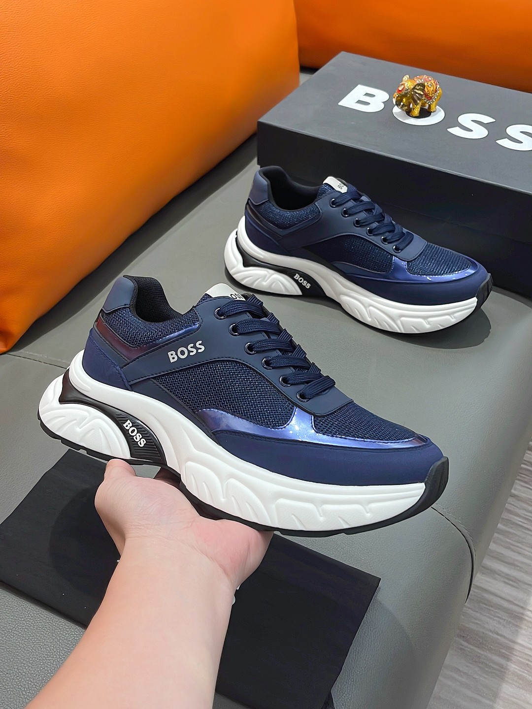 This shoes is AAAAA 1:1 quality (superb). Materials used are identical to the original ones. BOSS trademark marks are indistinguishable to the authentic. Photos take by actual shoes, what you receive will be 100% same with our photos.