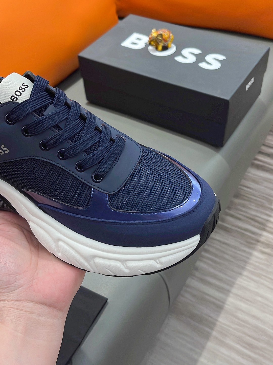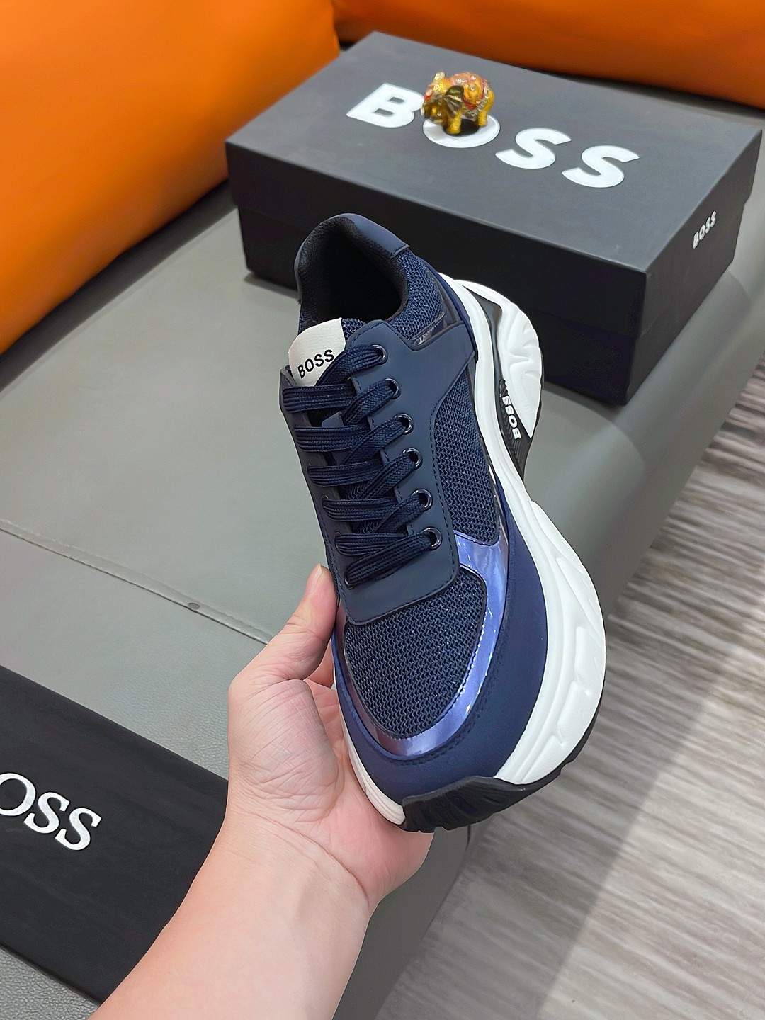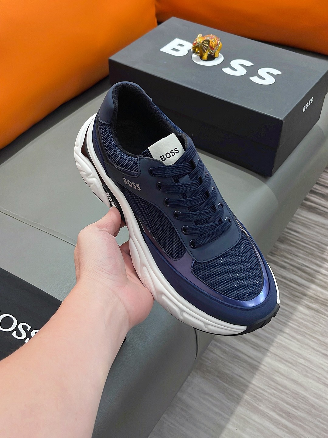 This shoes is AAAAA 1:1 quality (superb). Materials used are identical to the original ones. BOSS trademark marks are indistinguishable to the authentic. Photos take by actual shoes, what you receive will be 100% same with our photos.