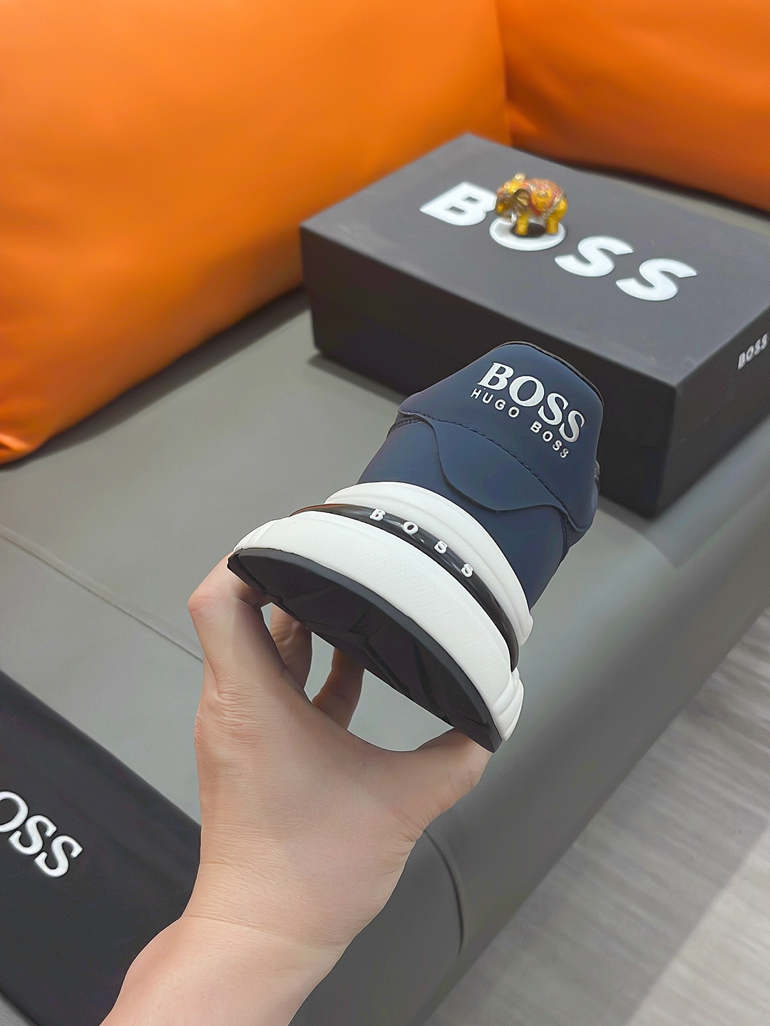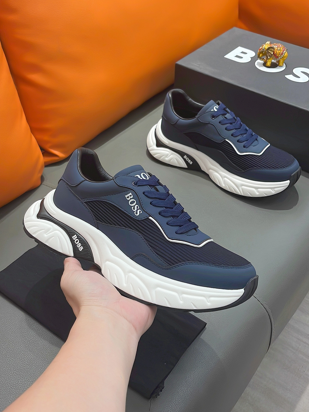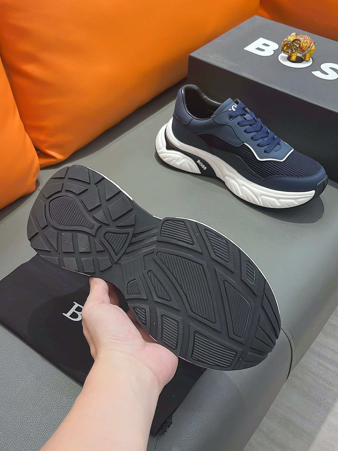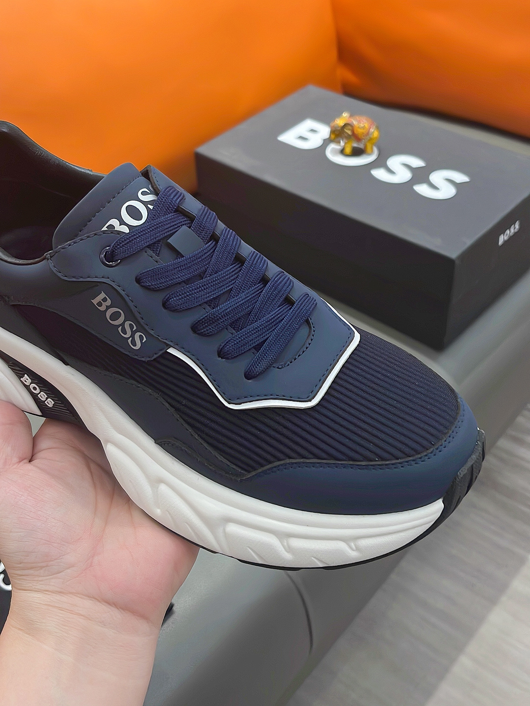 This shoes is AAAAA 1:1 quality (superb). Materials used are identical to the original ones. BOSS trademark marks are indistinguishable to the authentic. Photos take by actual shoes, what you receive will be 100% same with our photos.
