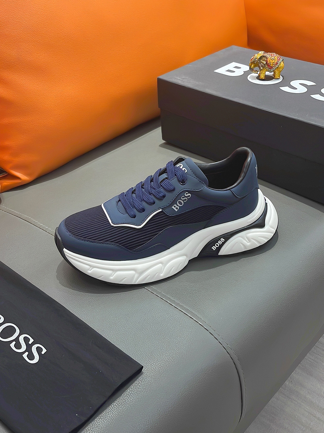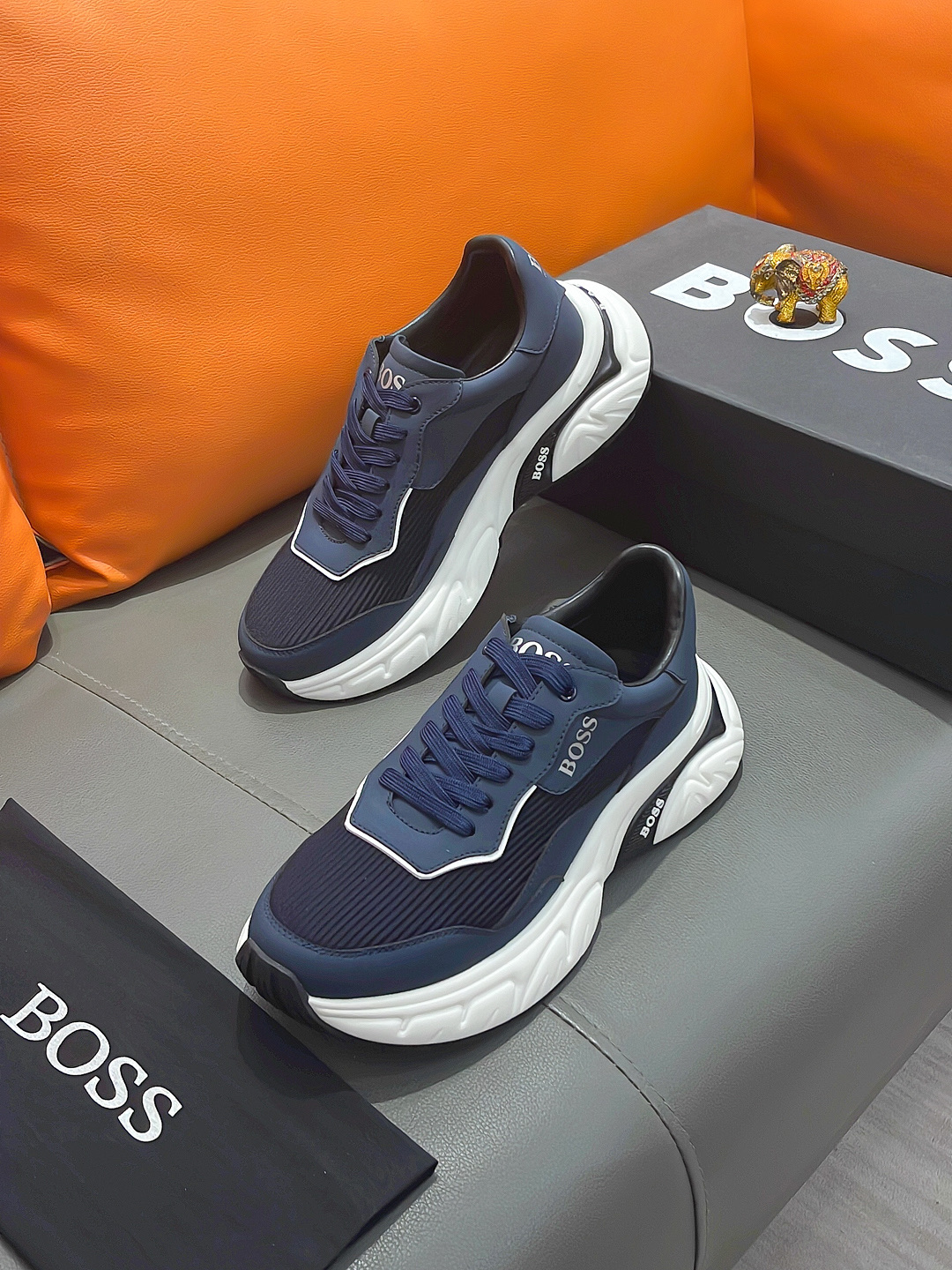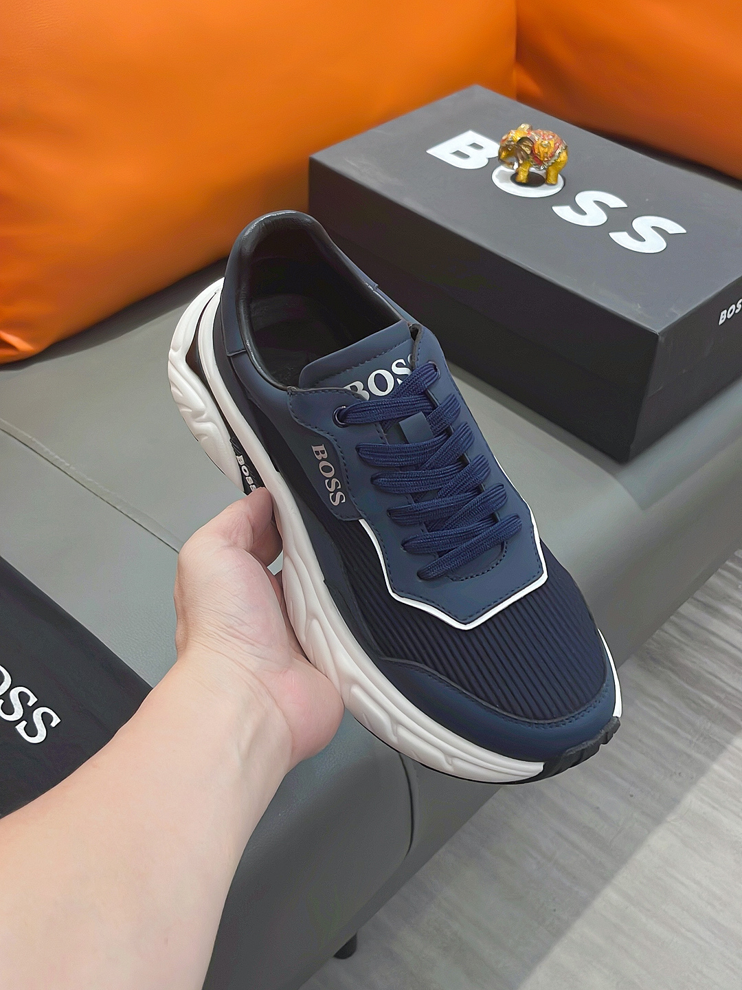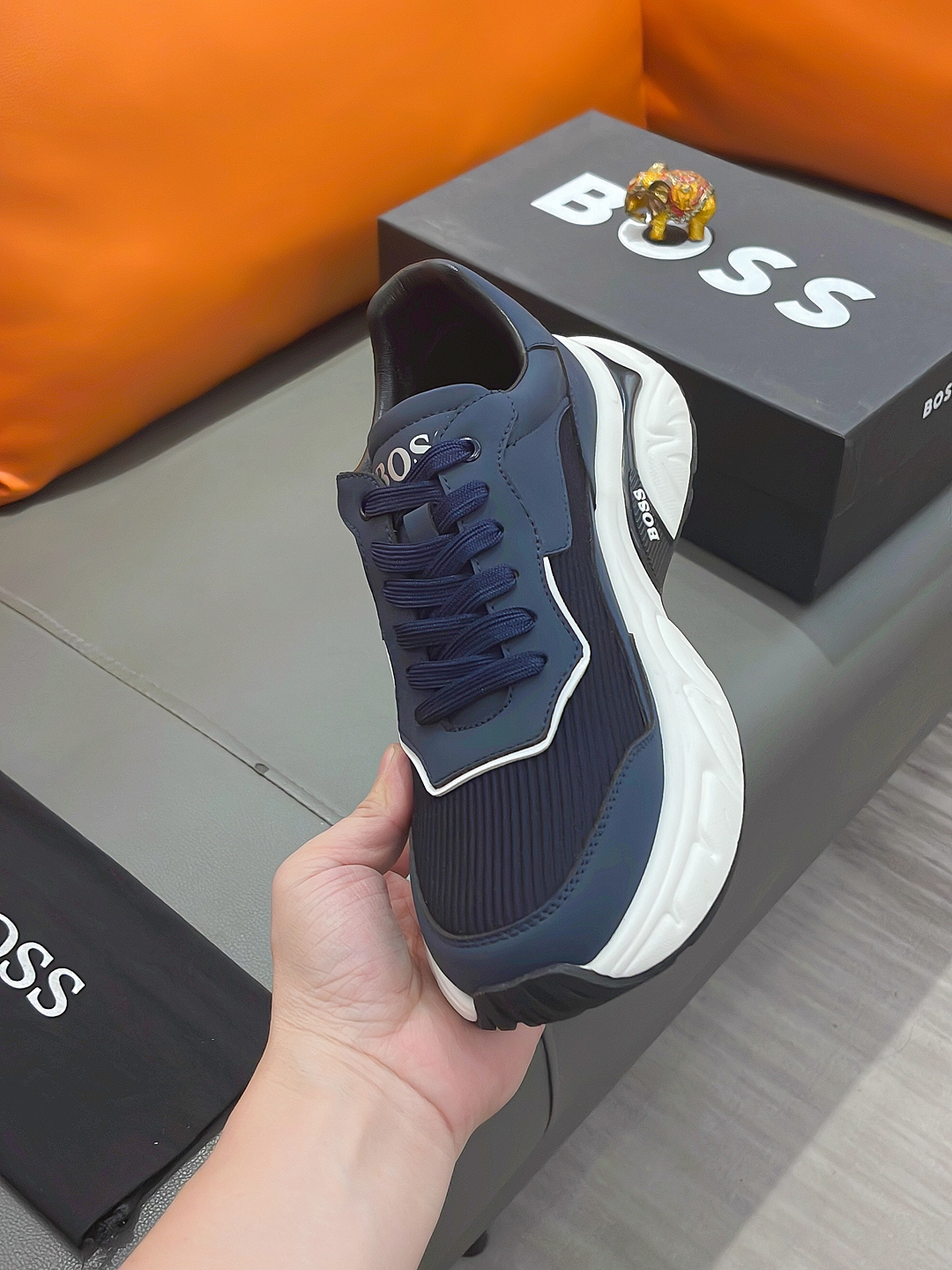 This shoes is AAAAA 1:1 quality (superb). Materials used are identical to the original ones. BOSS trademark marks are indistinguishable to the authentic. Photos take by actual shoes, what you receive will be 100% same with our photos.