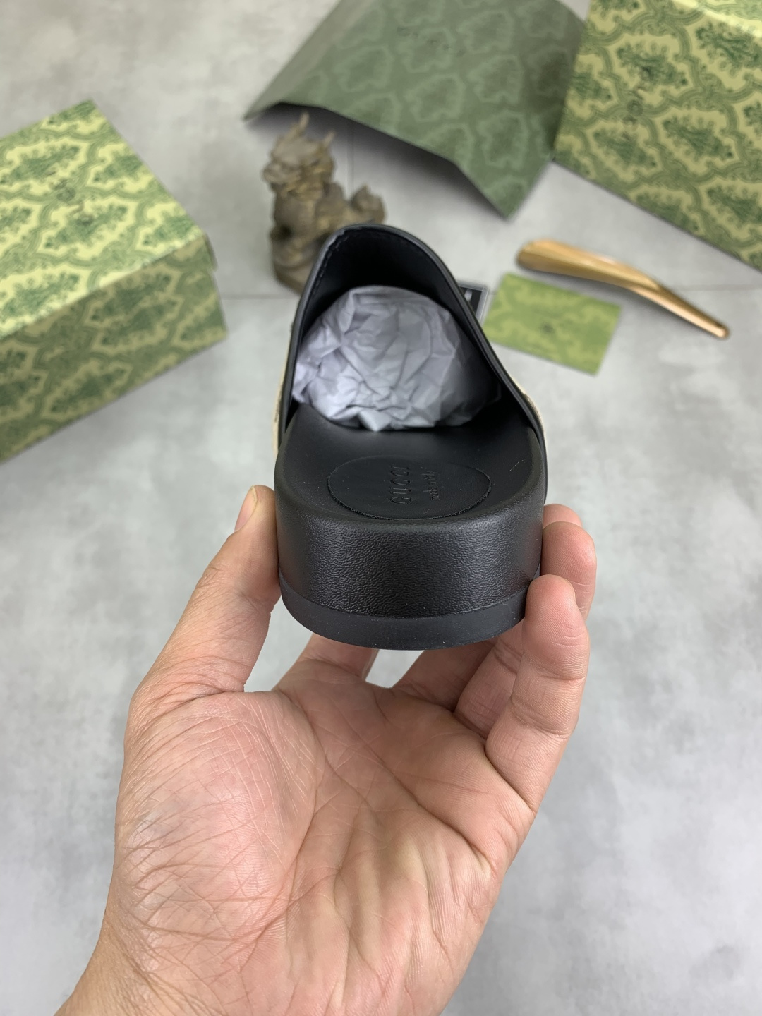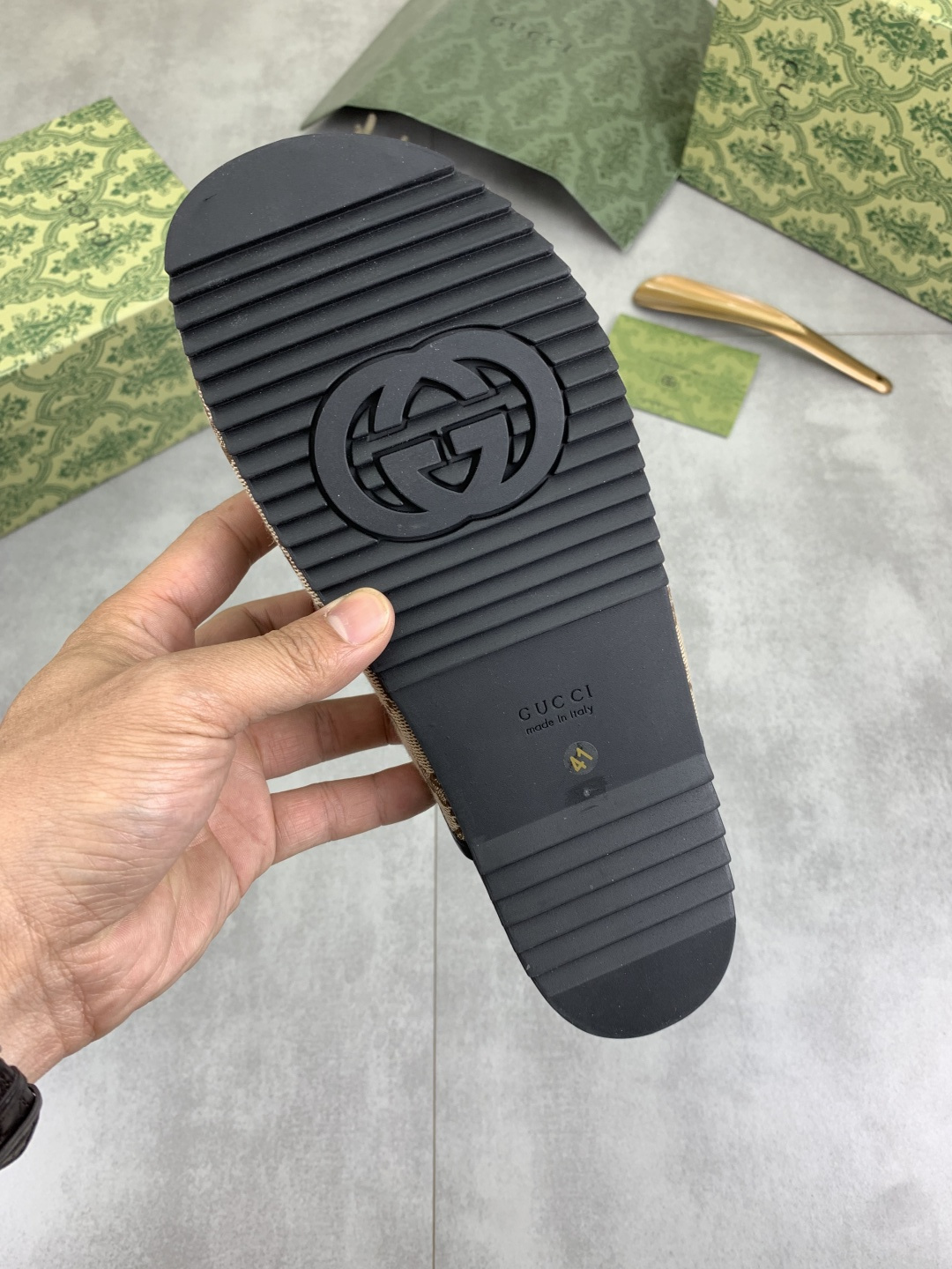 This shoes is AAAAA 1:1 quality (superb). Materials used are identical to the original ones. Gucci trademark marks are indistinguishable to the authentic. Photos take by actual shoes, what you receive will be 100% same with our photos.
