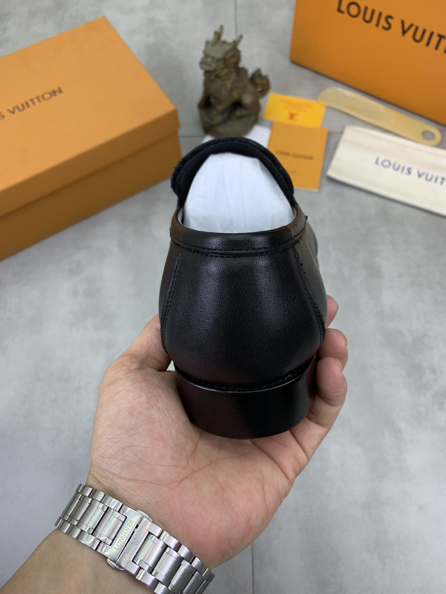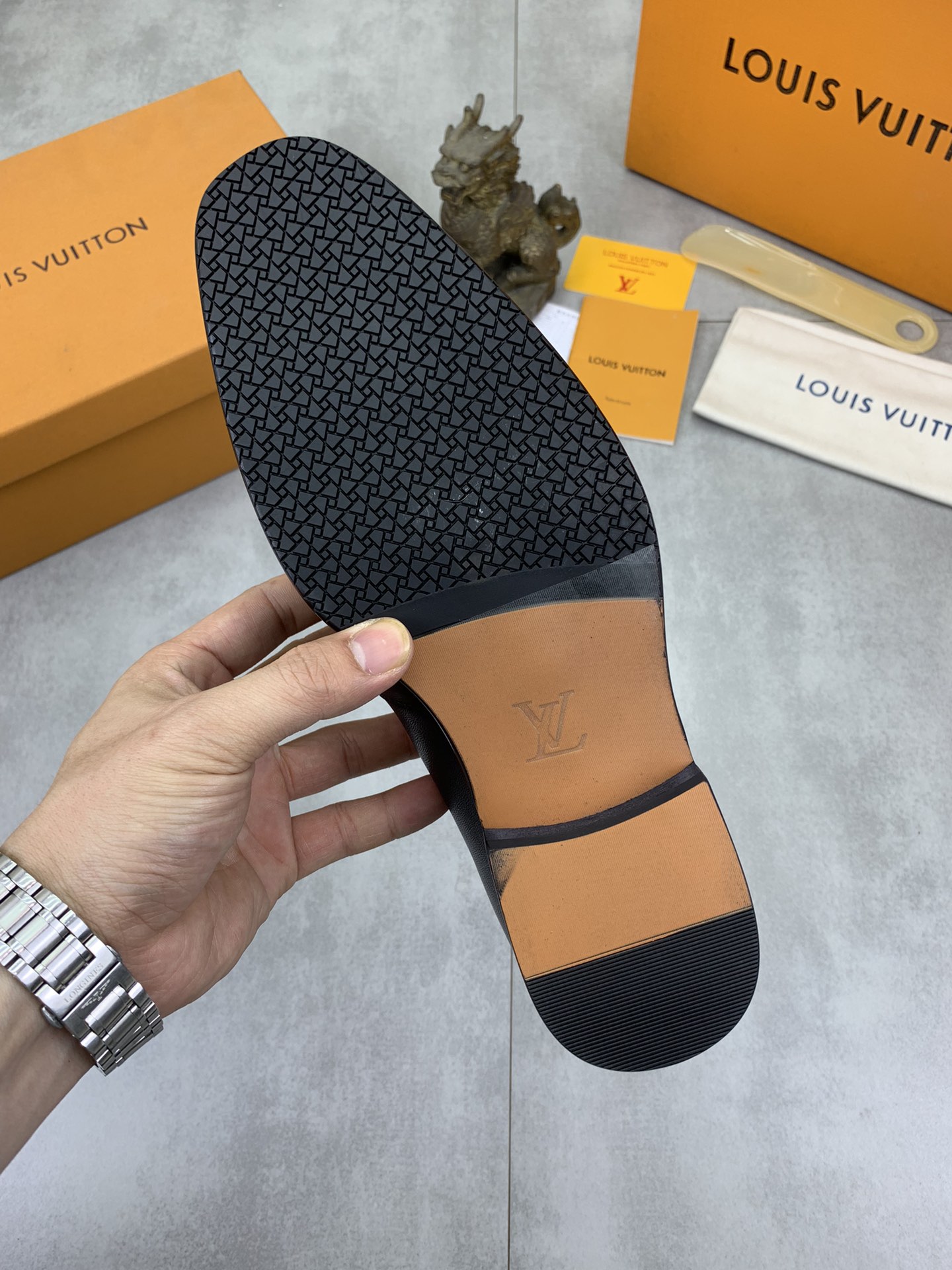 This shoes is AAAAA 1:1 quality (superb). Materials used are identical to the original ones. Louis Vuitton trademark marks are indistinguishable to the authentic. Photos take by actual shoes, what you receive will be 100% same with our photos.