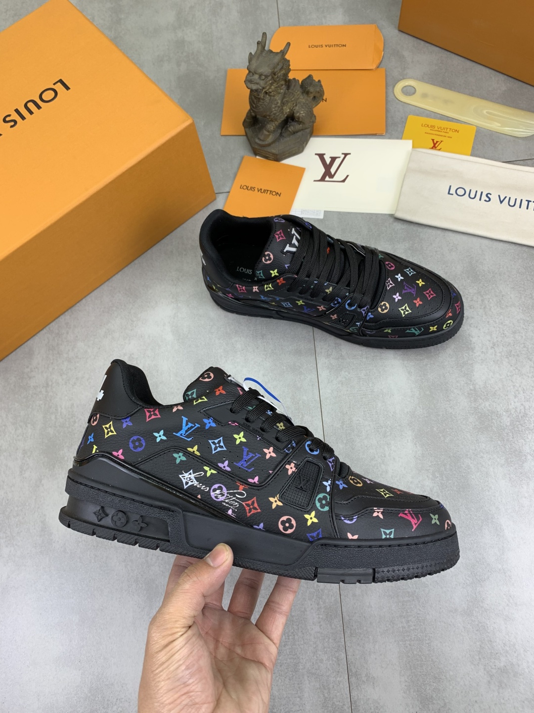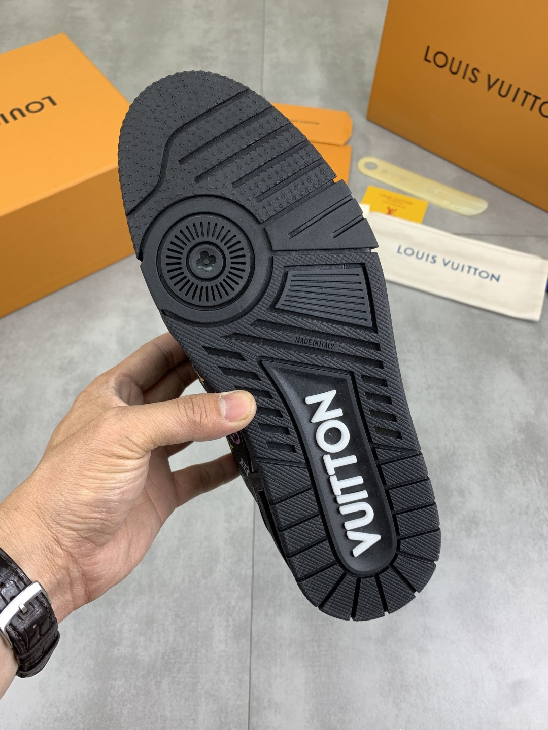 This shoes is AAAAA 1:1 quality (superb). Materials used are identical to the original ones. Louis Vuitton trademark marks are indistinguishable to the authentic. Photos take by actual shoes, what you receive will be 100% same with our photos.