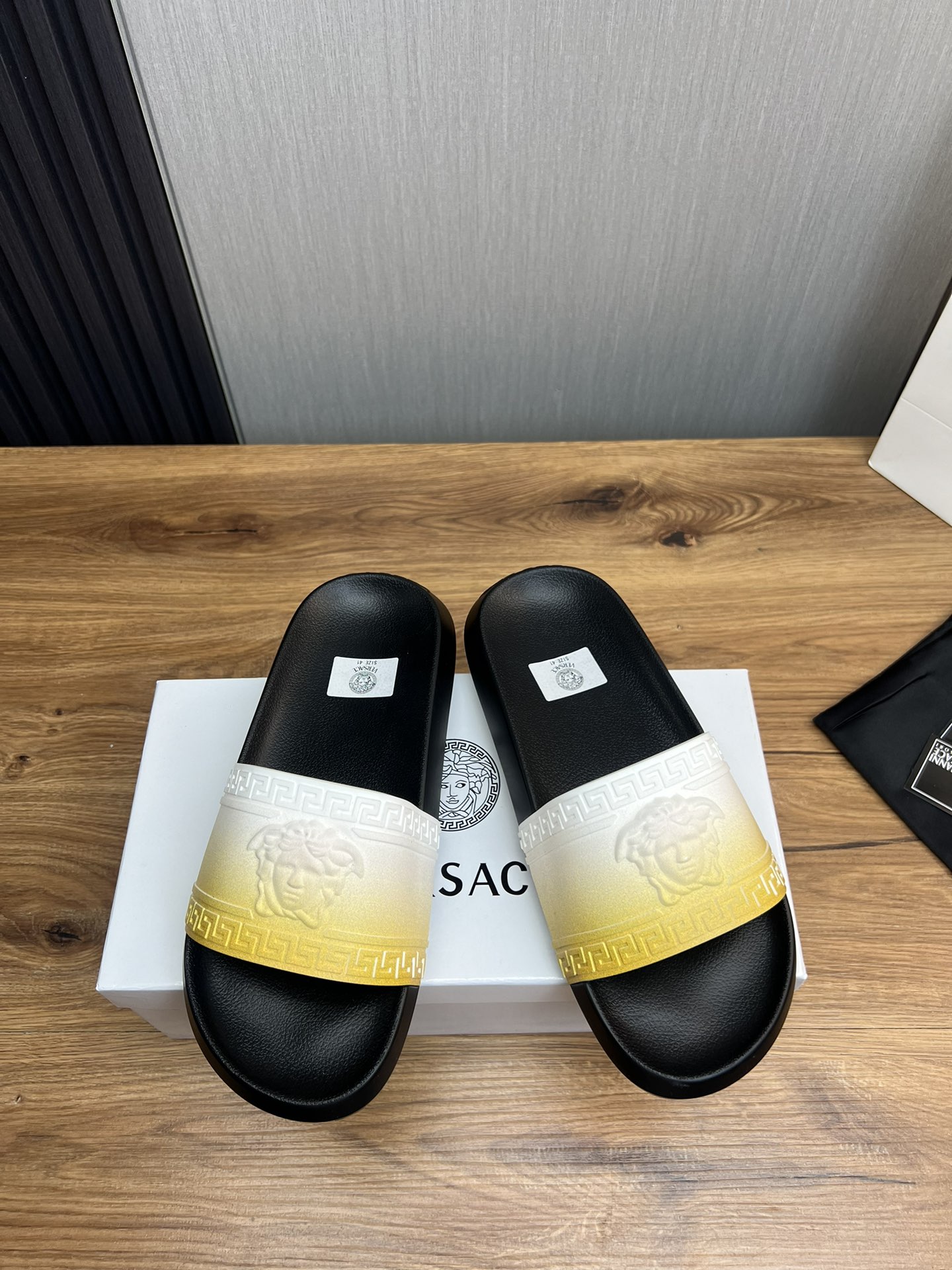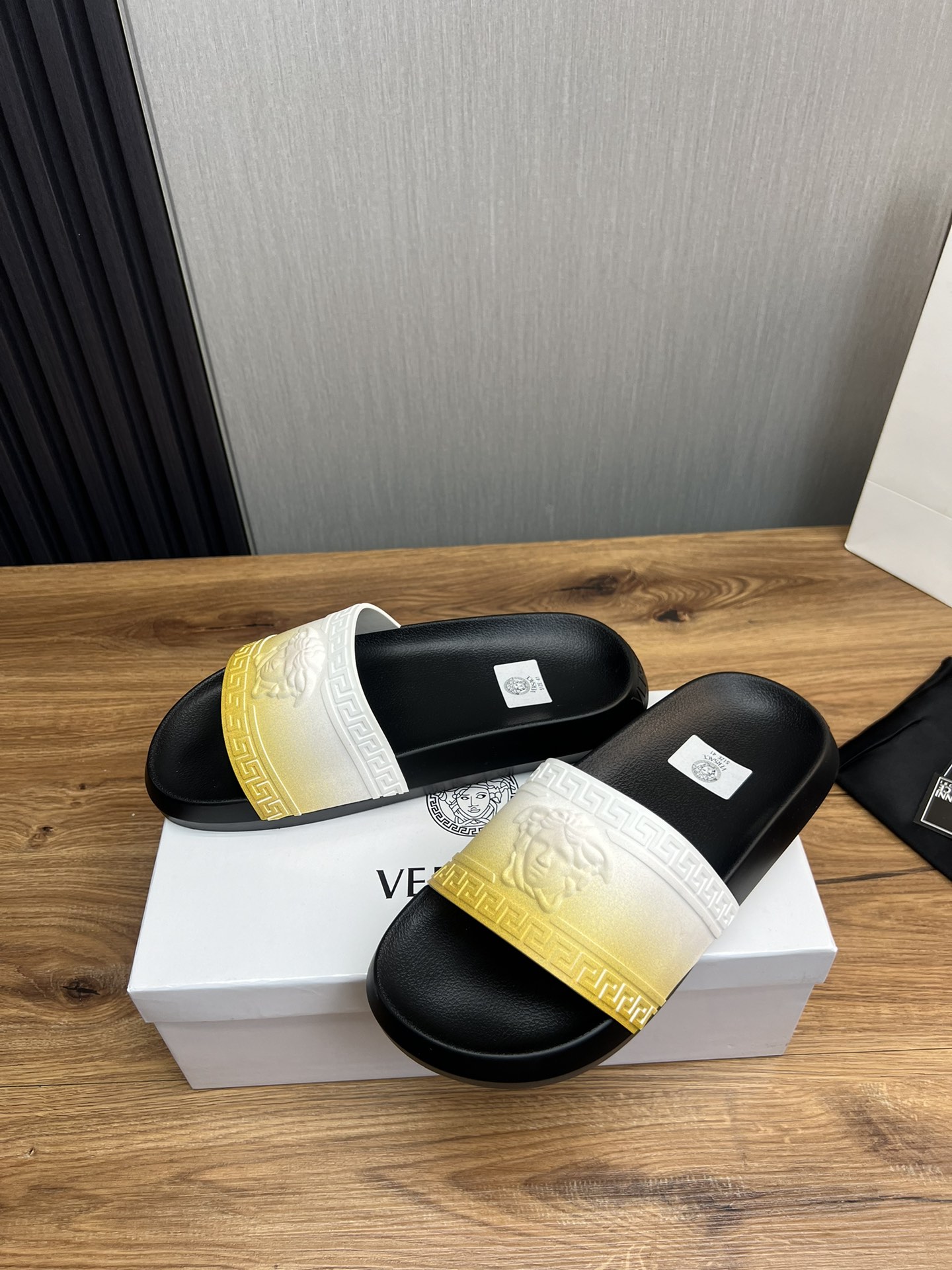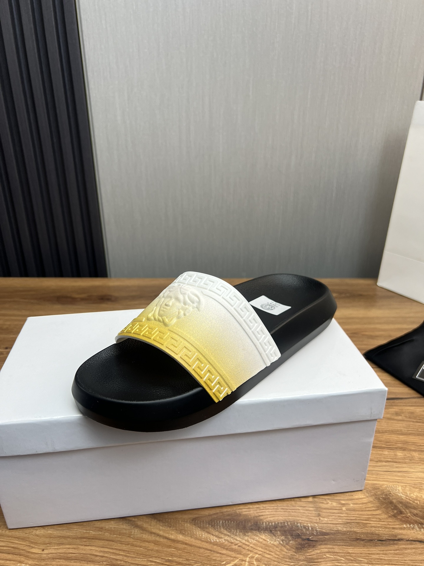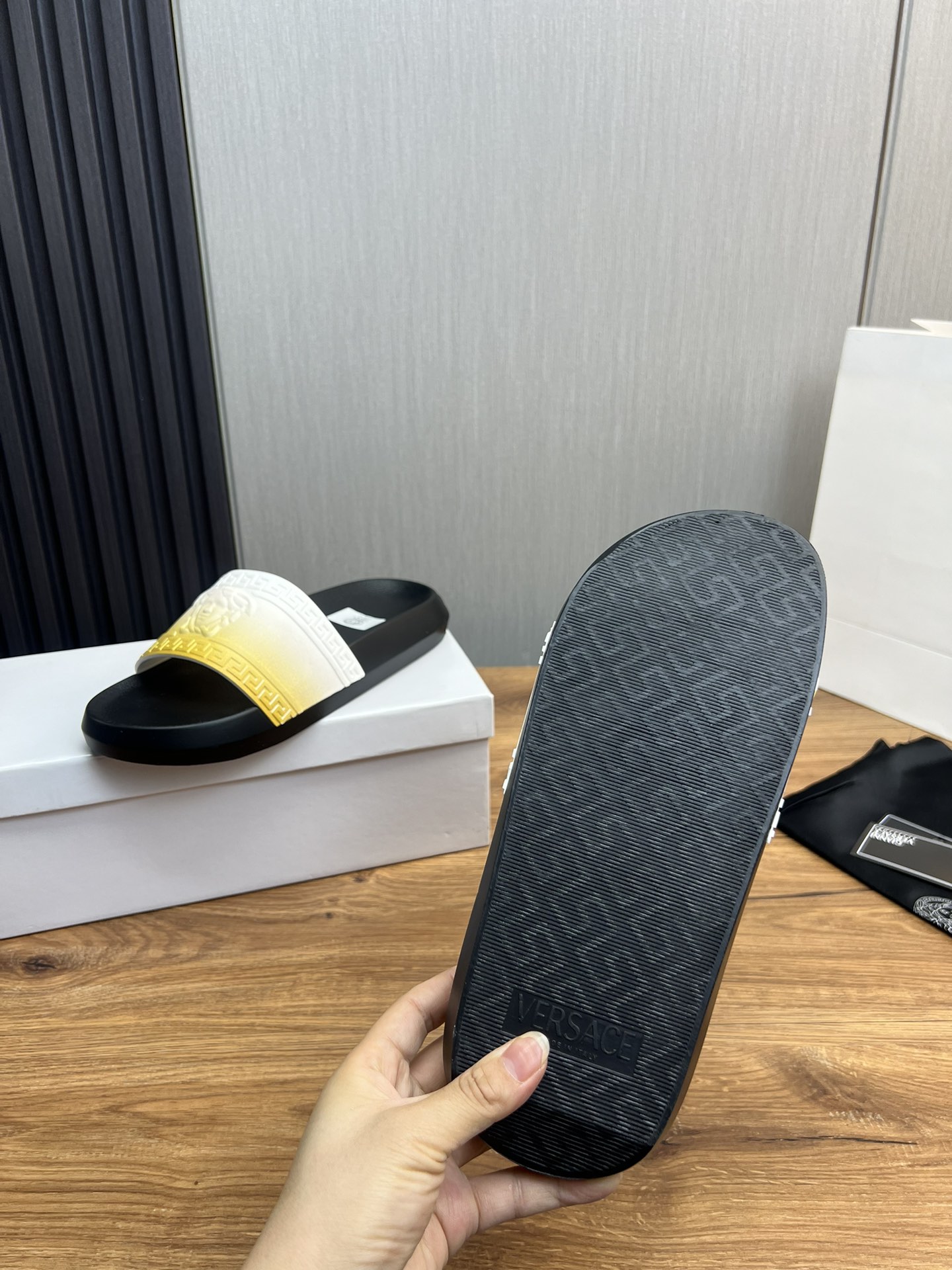 This shoes is AAAAA 1:1 quality (superb). Materials used are identical to the original ones. Versace trademark marks are indistinguishable to the authentic. Photos take by actual shoes, what you receive will be 100% same with our photos.