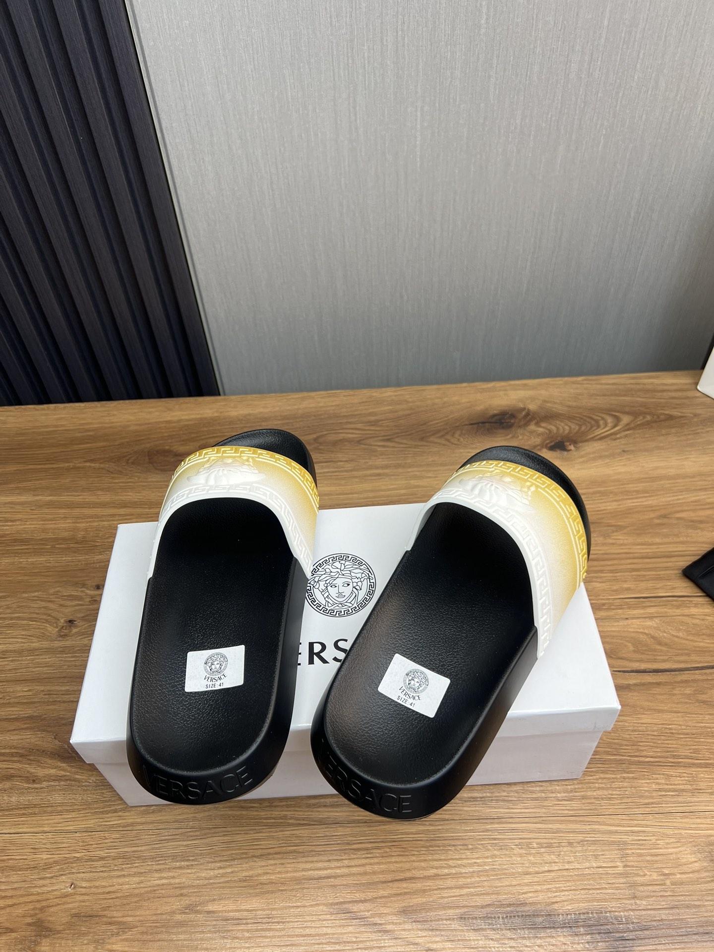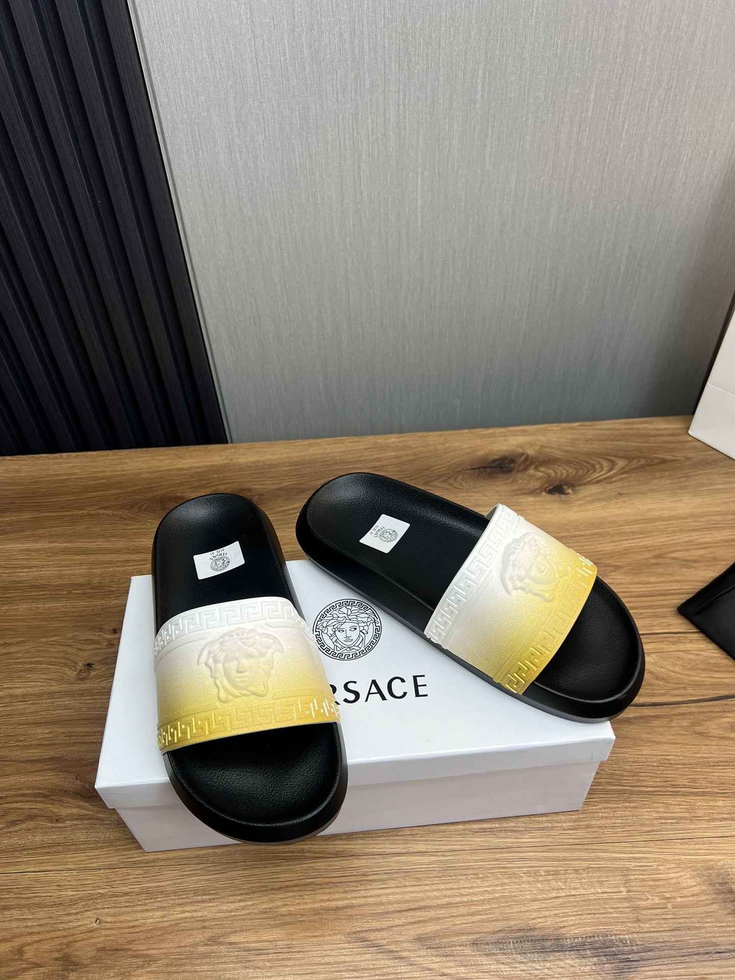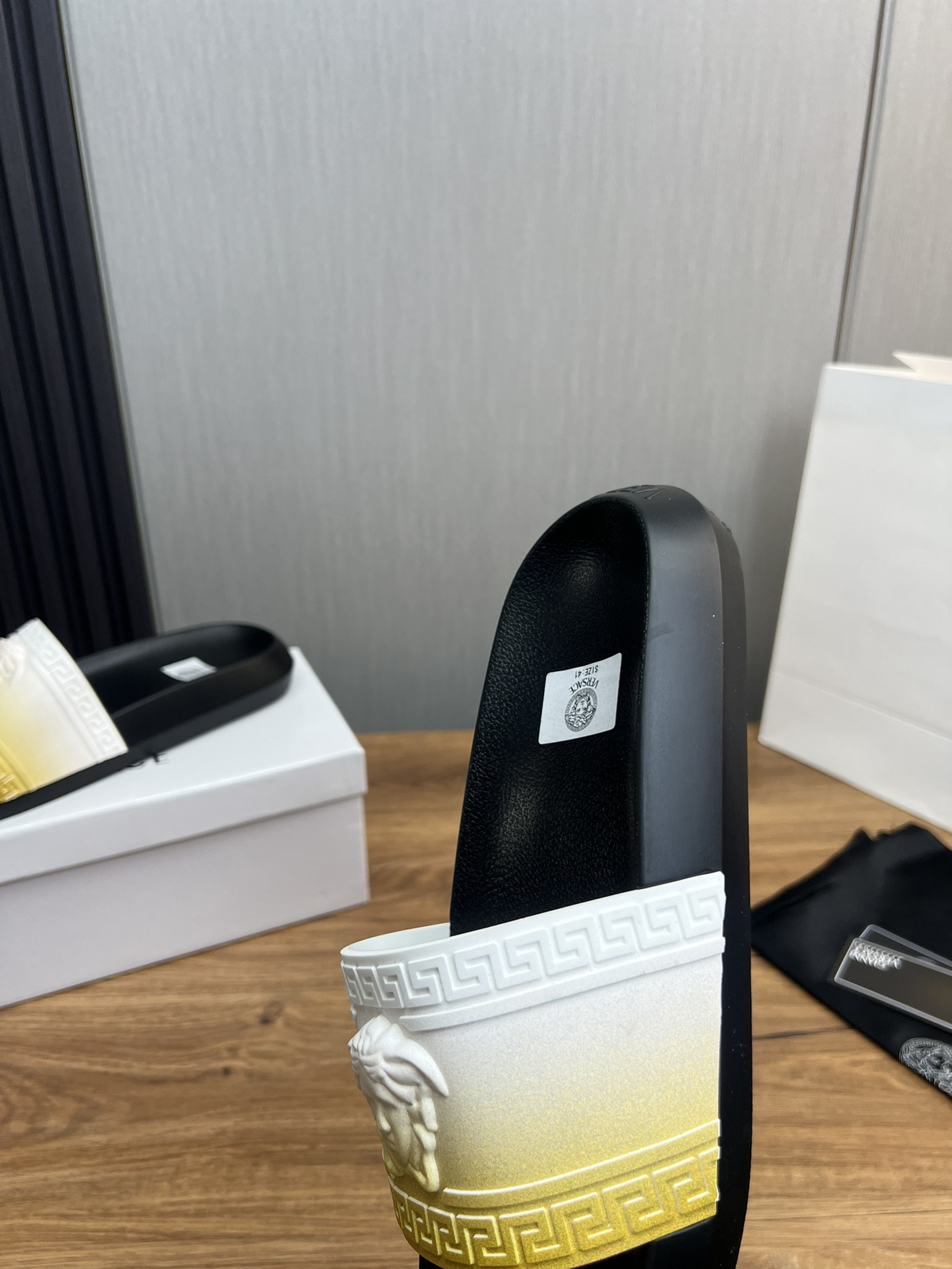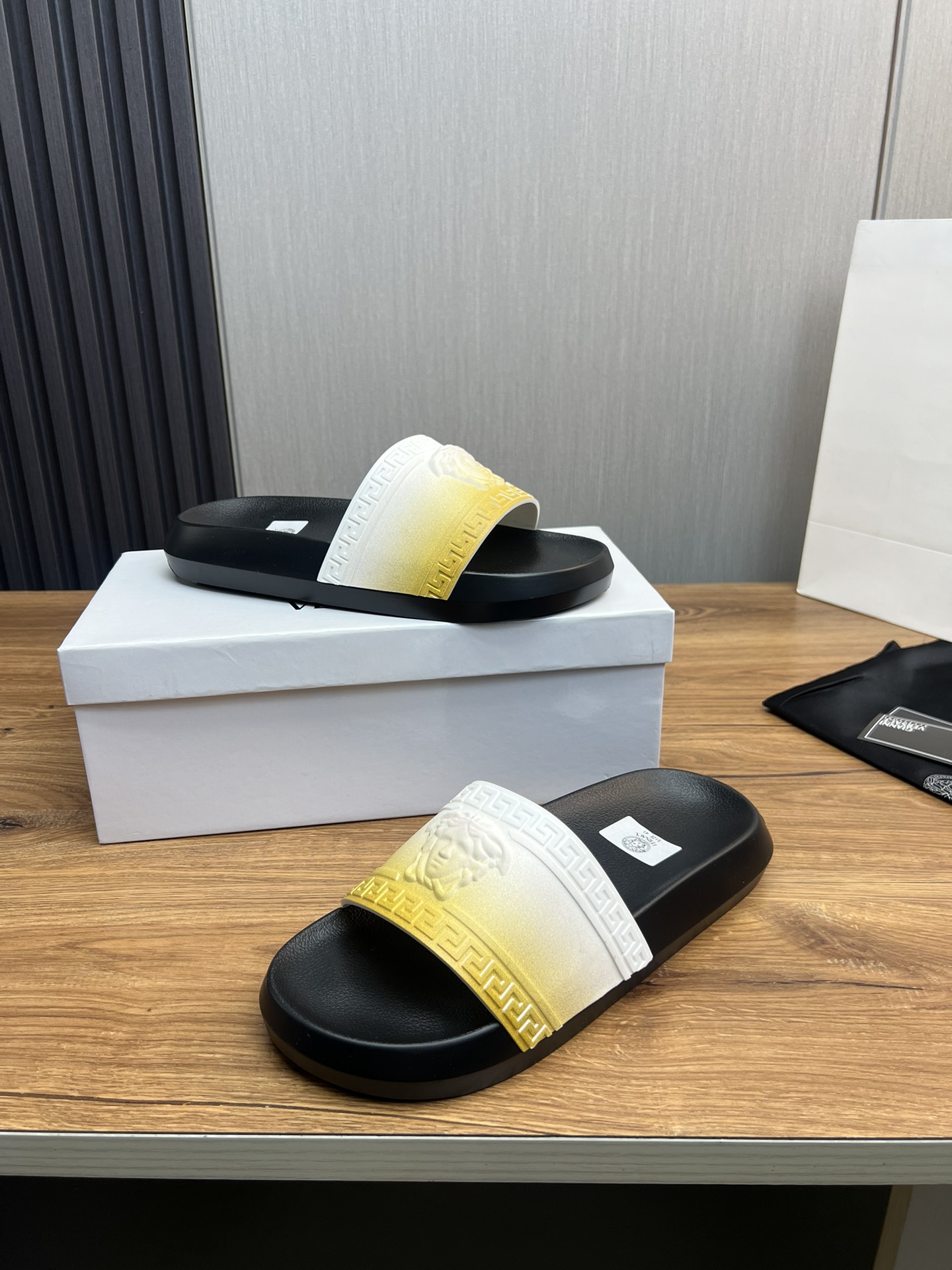 This shoes is AAAAA 1:1 quality (superb). Materials used are identical to the original ones. Versace trademark marks are indistinguishable to the authentic. Photos take by actual shoes, what you receive will be 100% same with our photos.