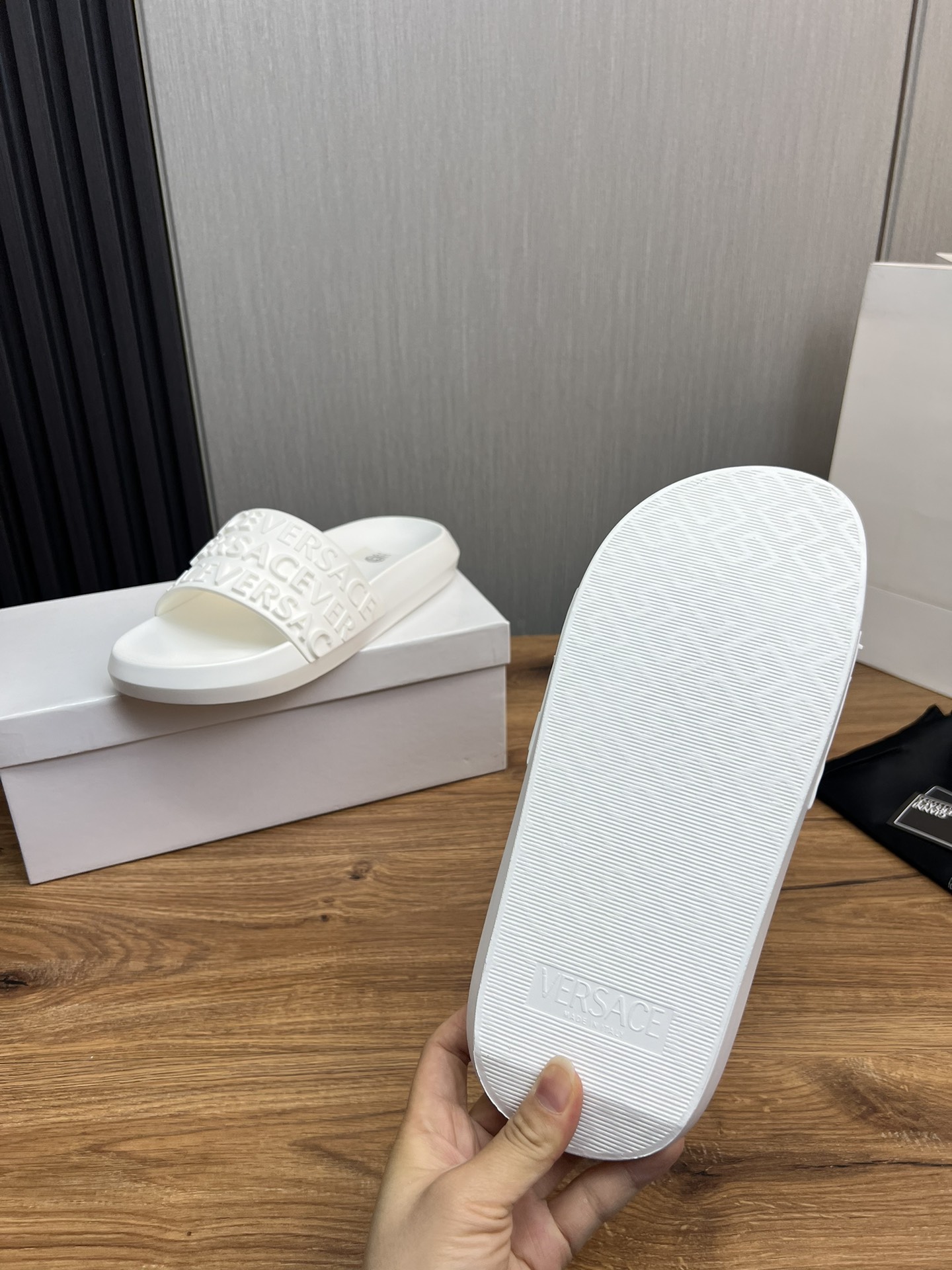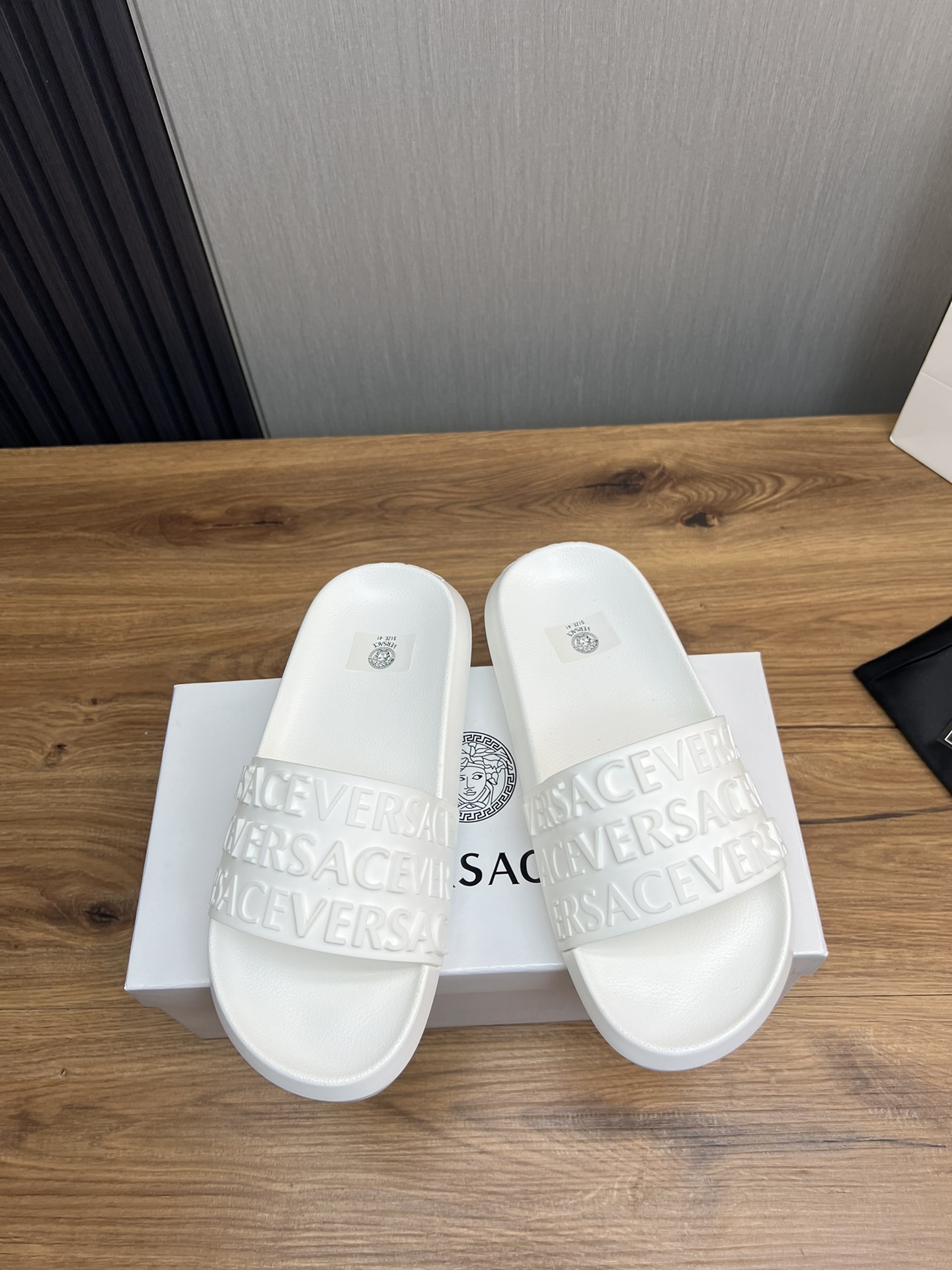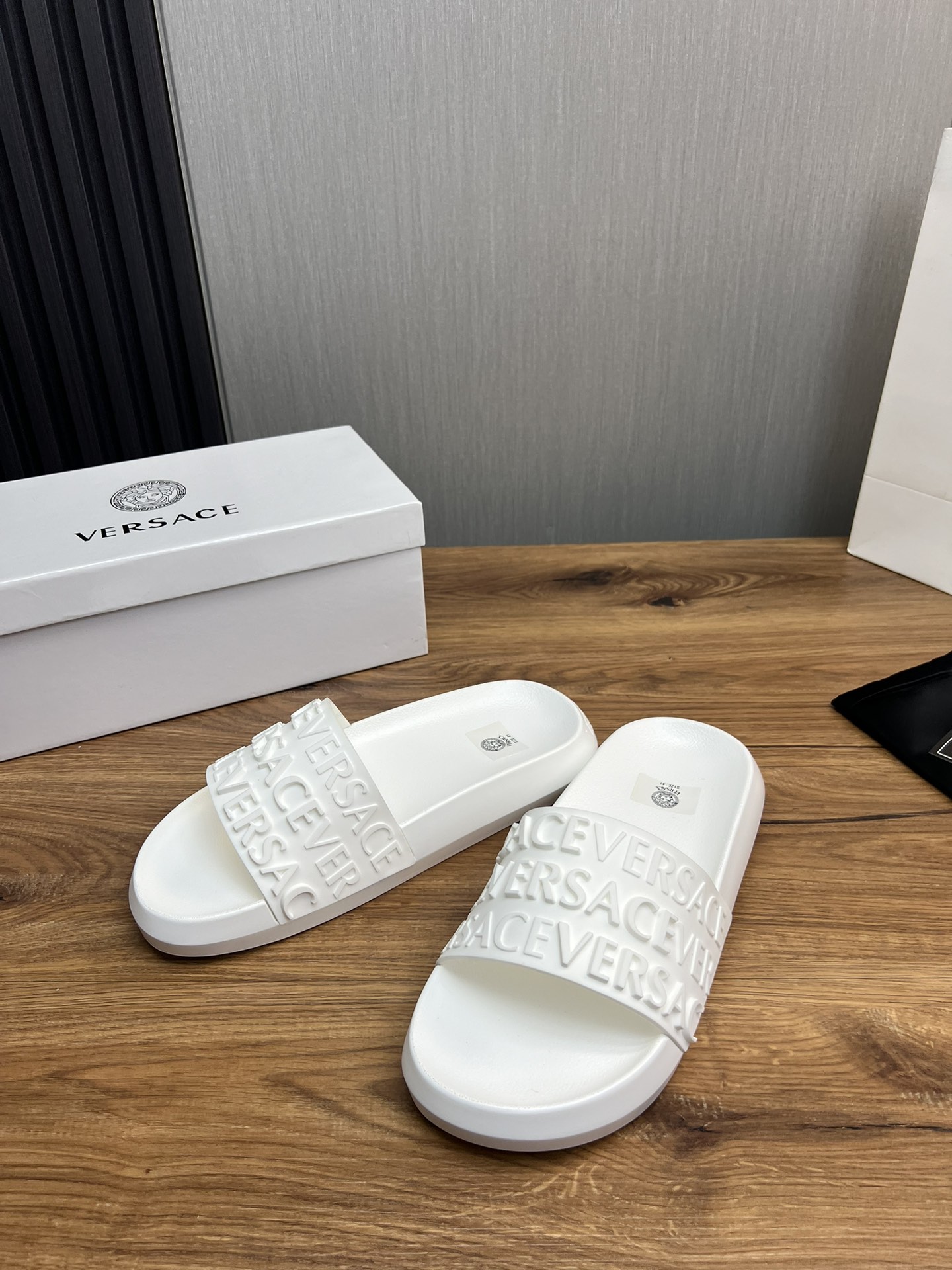 This shoes is AAAAA 1:1 quality (superb). Materials used are identical to the original ones. Versace trademark marks are indistinguishable to the authentic. Photos take by actual shoes, what you receive will be 100% same with our photos.