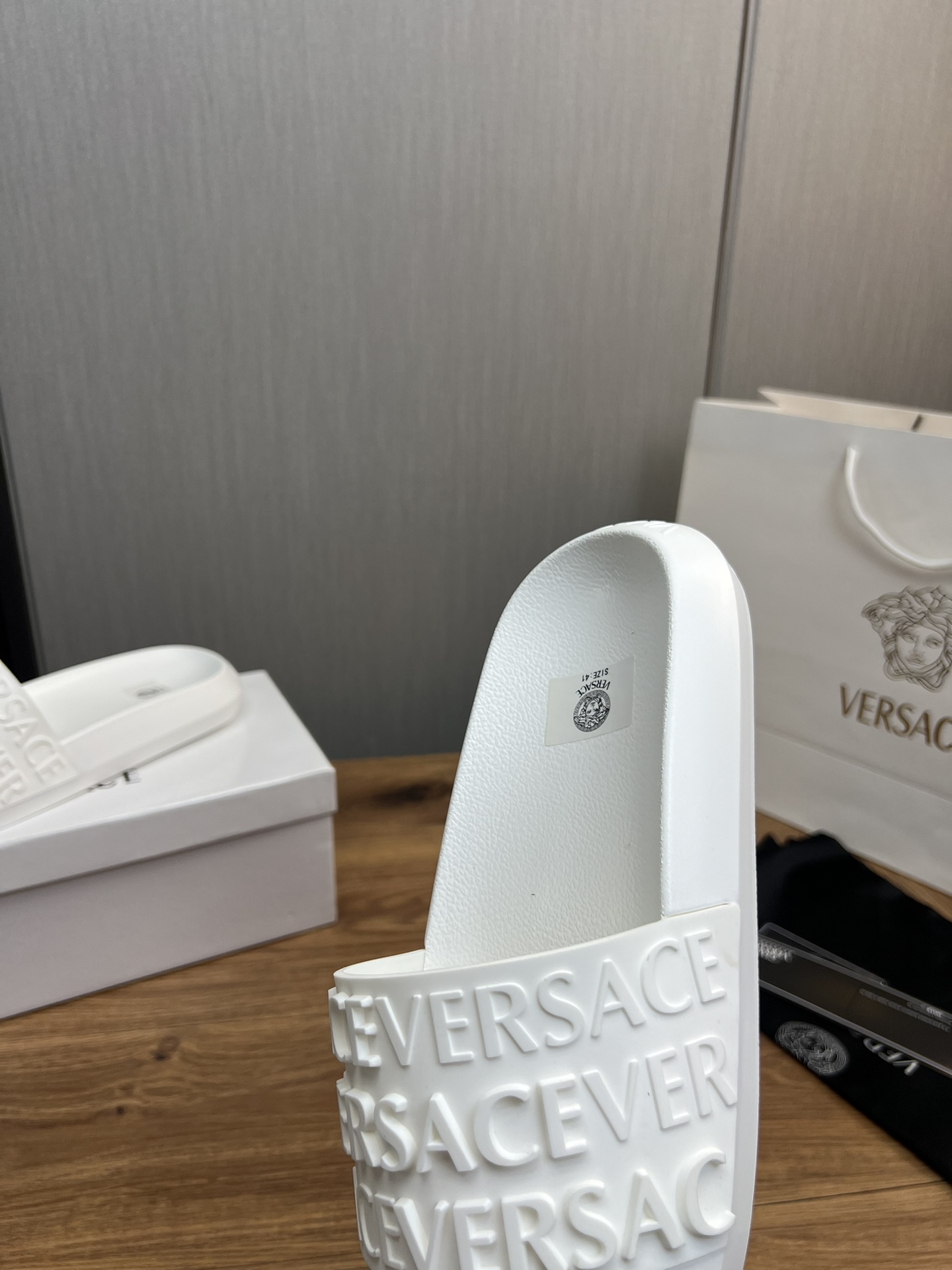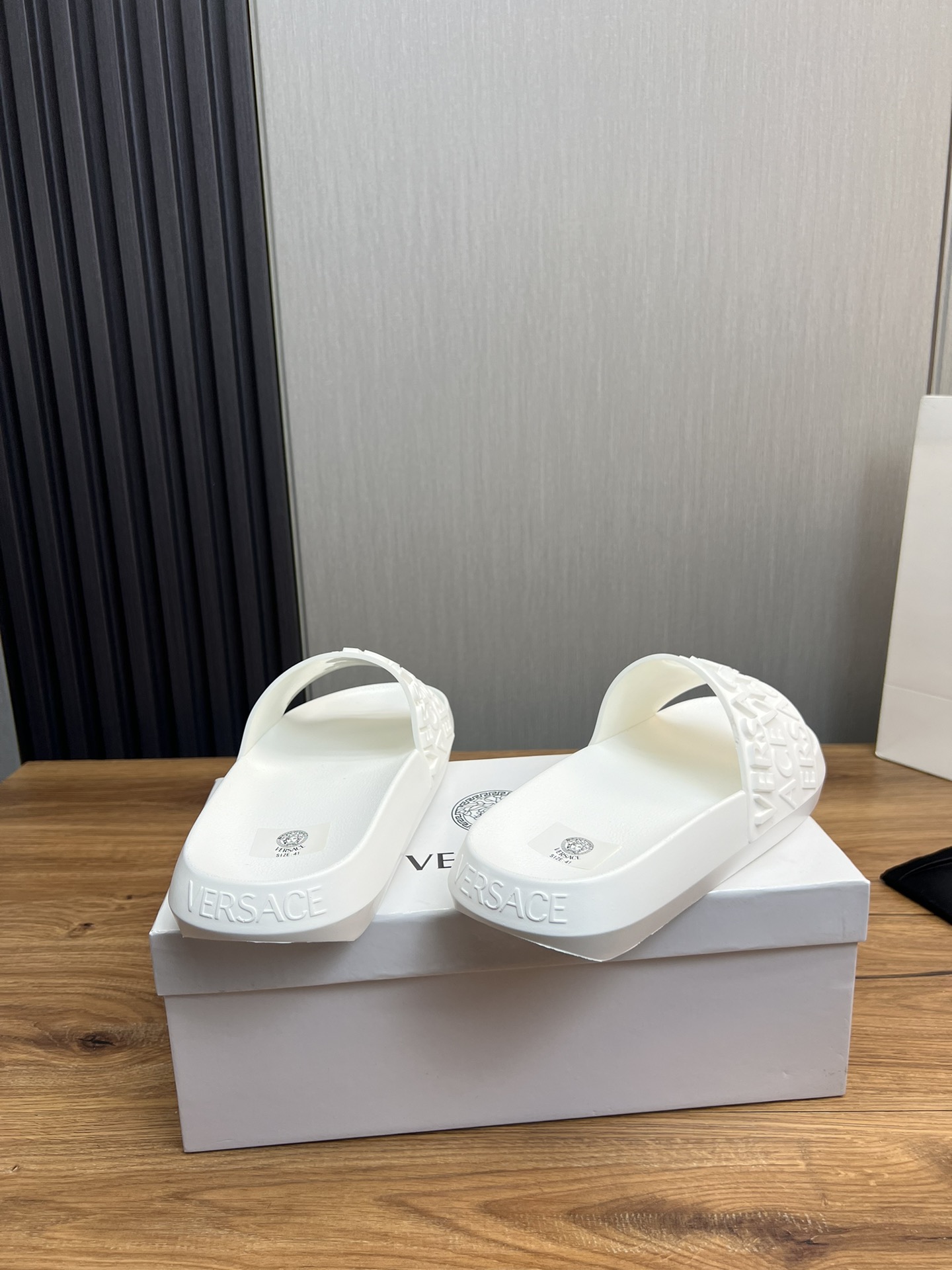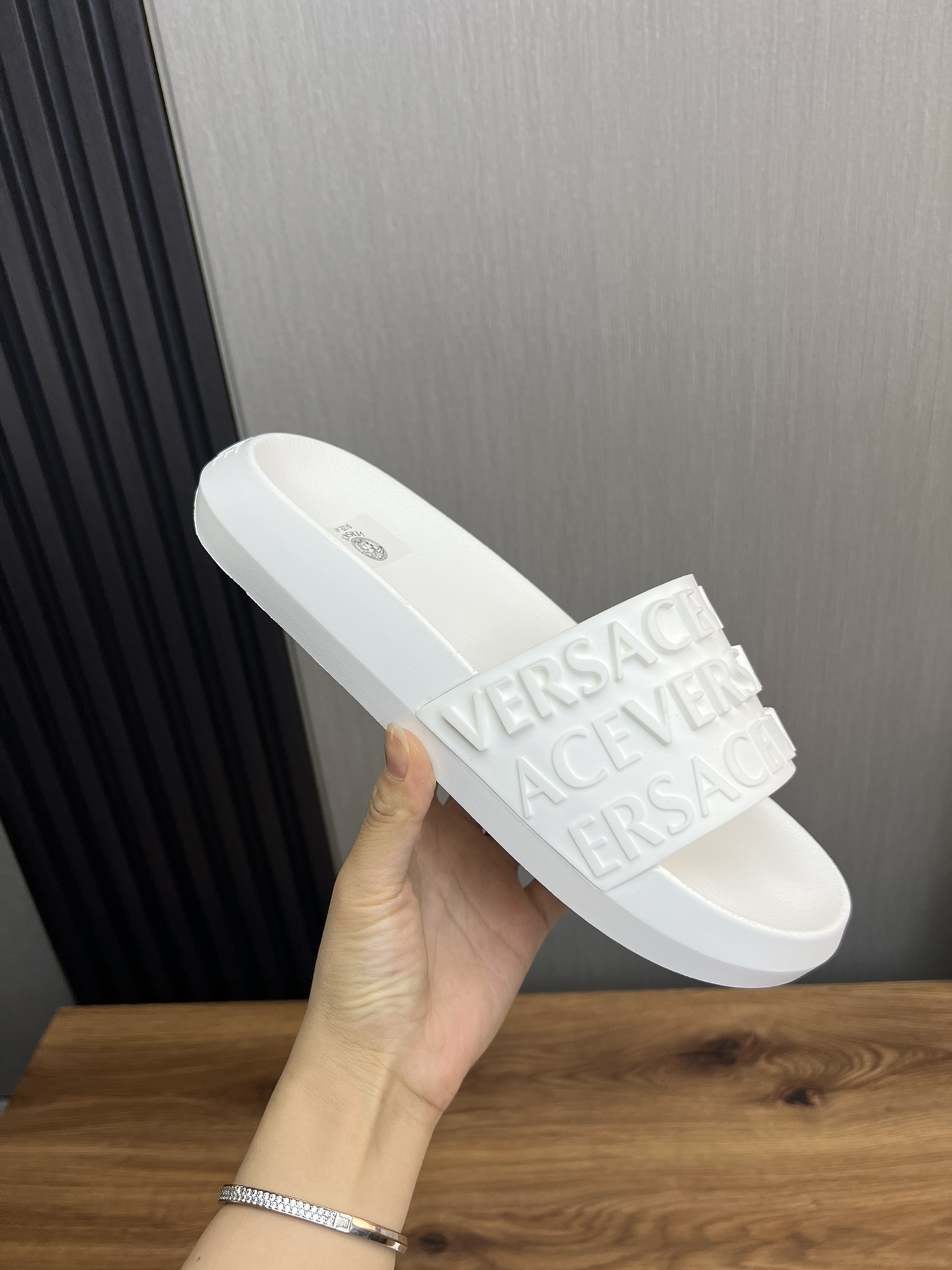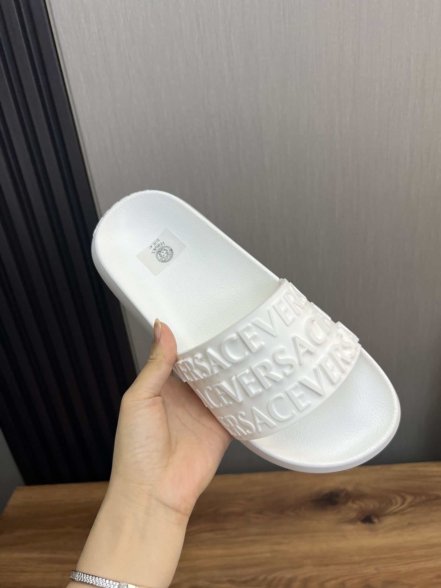 This shoes is AAAAA 1:1 quality (superb). Materials used are identical to the original ones. Versace trademark marks are indistinguishable to the authentic. Photos take by actual shoes, what you receive will be 100% same with our photos.