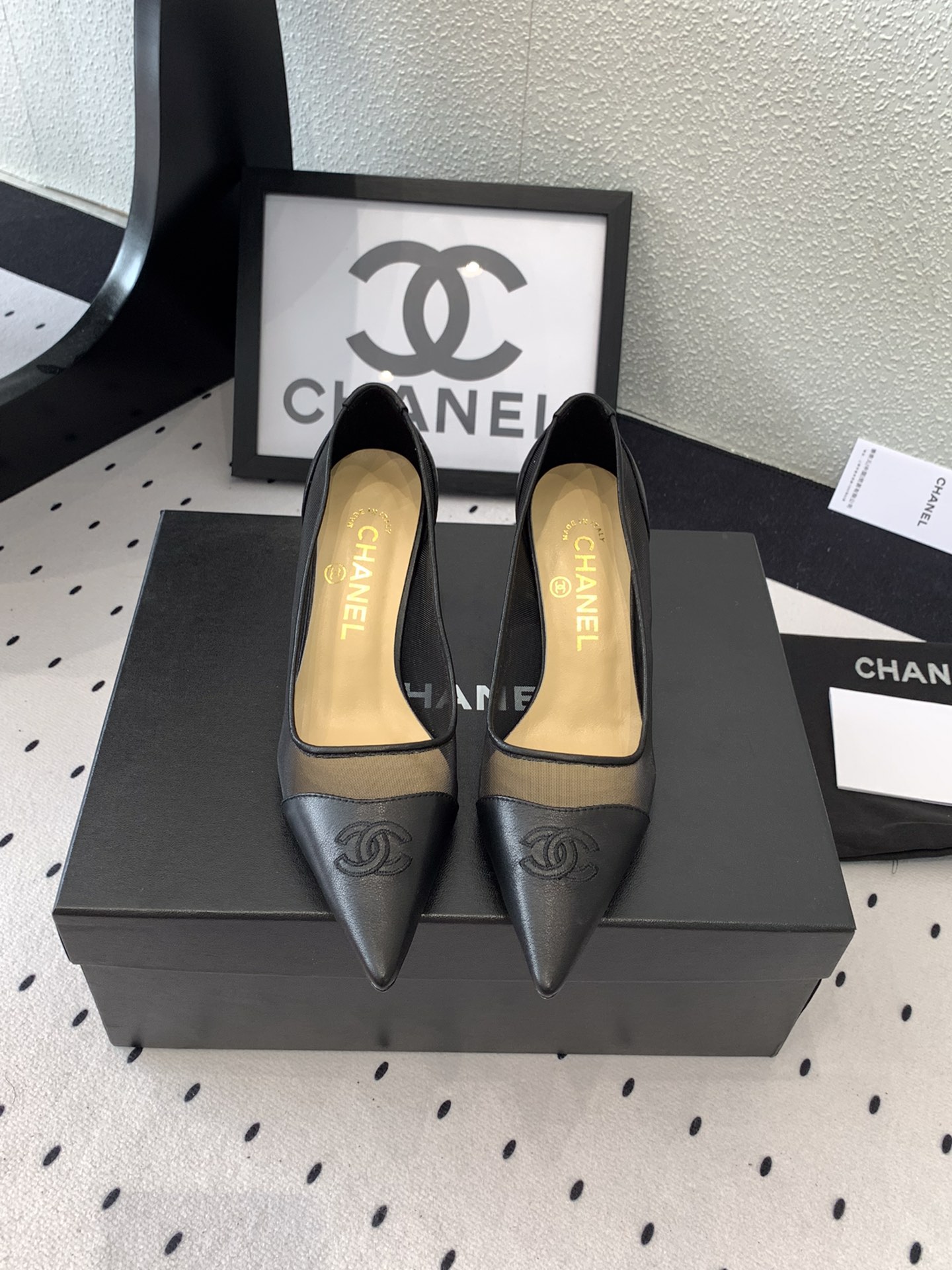 This shoes is AAAAA 1:1 quality (superb). Materials used are identical to the original ones. Chanel trademark marks are indistinguishable to the authentic. Photos take by actual shoes, what you receive will be 100% same with our photos.