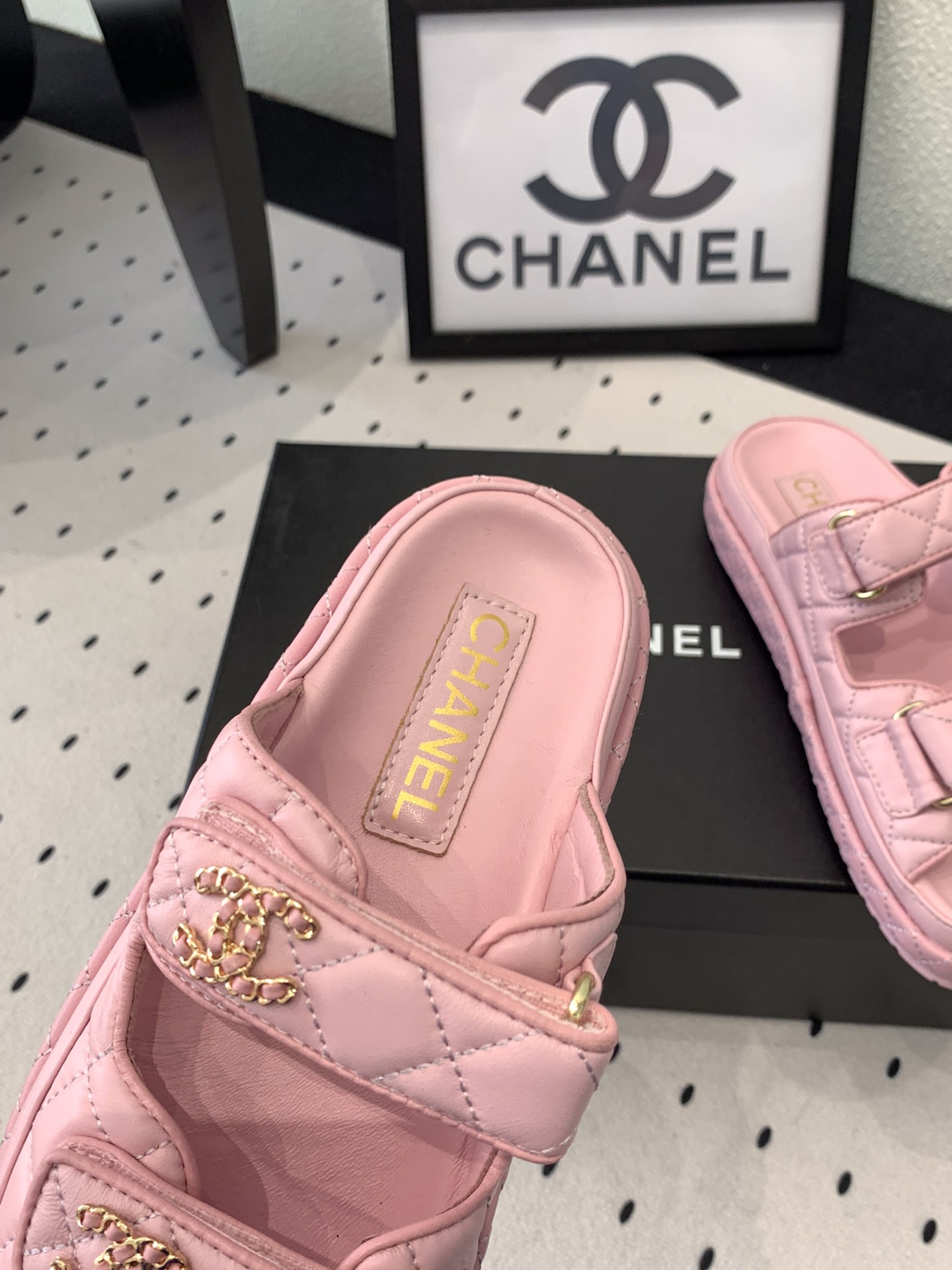 This shoes is AAAAA 1:1 quality (superb). Materials used are identical to the original ones. Chanel trademark marks are indistinguishable to the authentic. Photos take by actual shoes, what you receive will be 100% same with our photos.