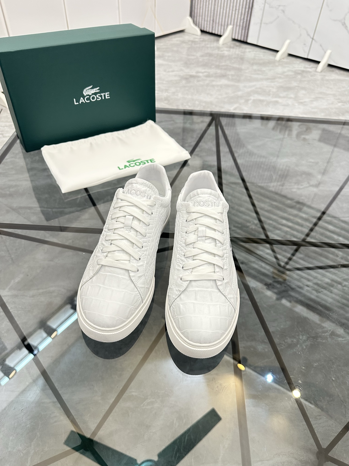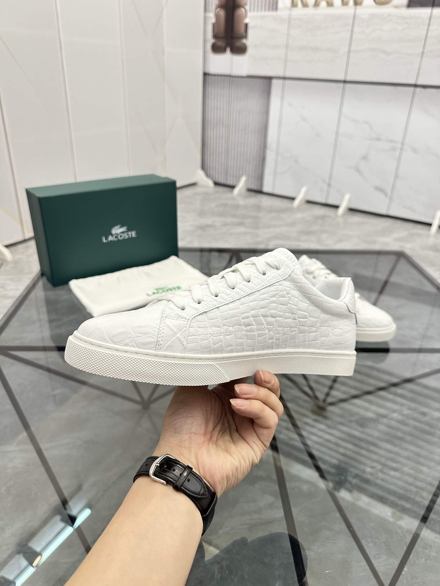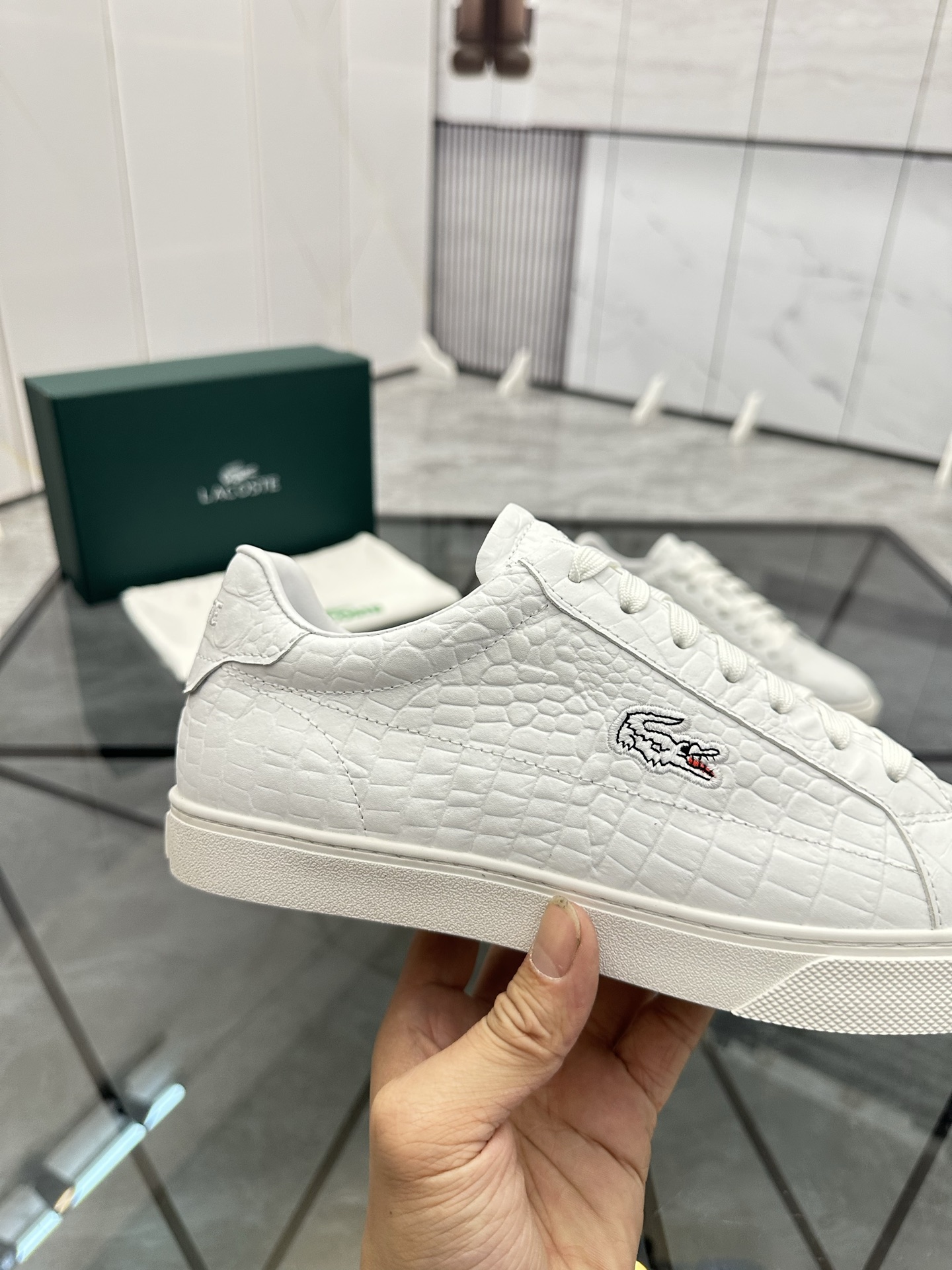 This shoes is AAAAA 1:1 quality (superb). Materials used are identical to the original ones. LACOSTE trademark marks are indistinguishable to the authentic. Photos take by actual shoes, what you receive will be 100% same with our photos.