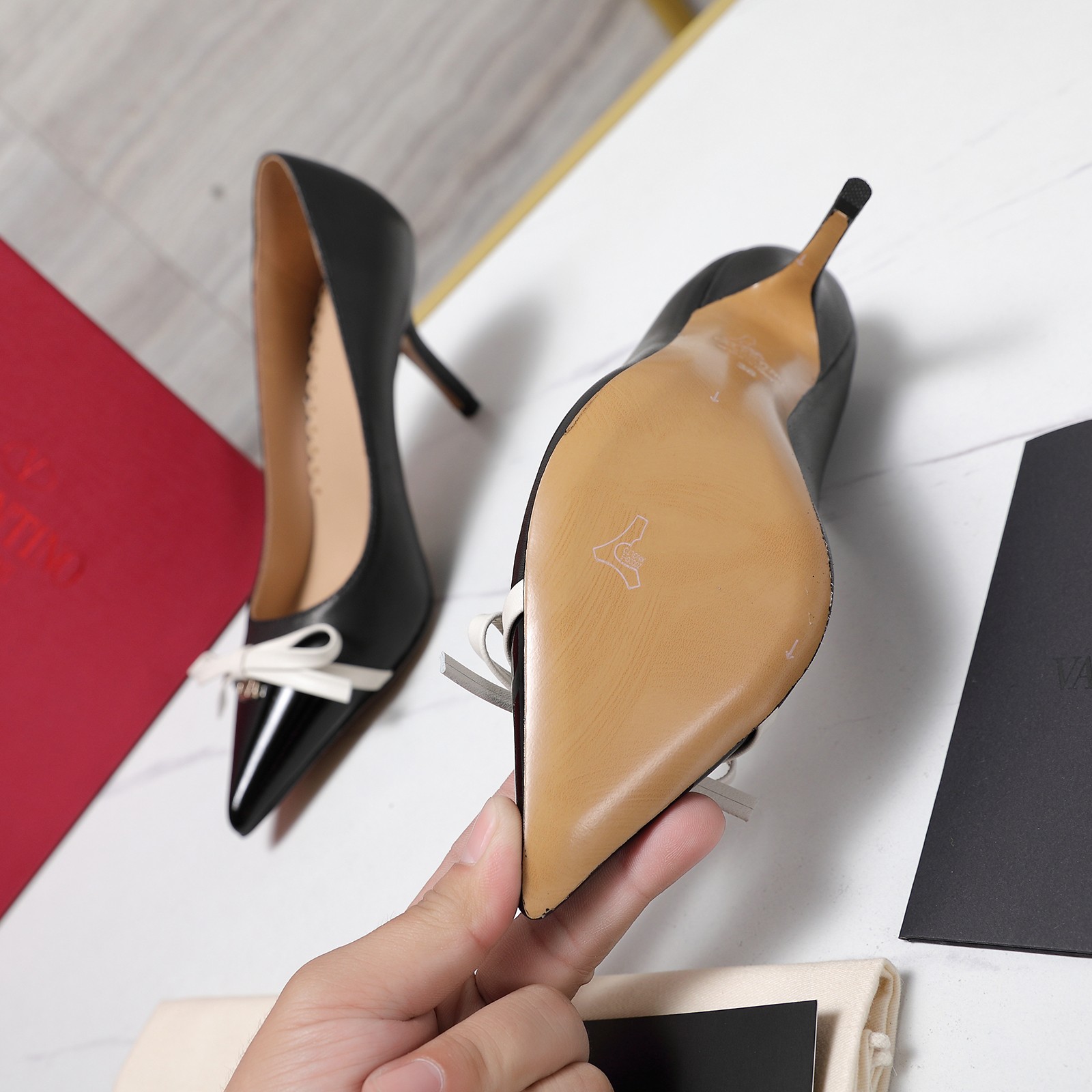 This shoes is AAAAA 1:1 quality (superb). Materials used are identical to the original ones. Valentino trademark marks are indistinguishable to the authentic. Photos take by actual shoes, what you receive will be 100% same with our photos.