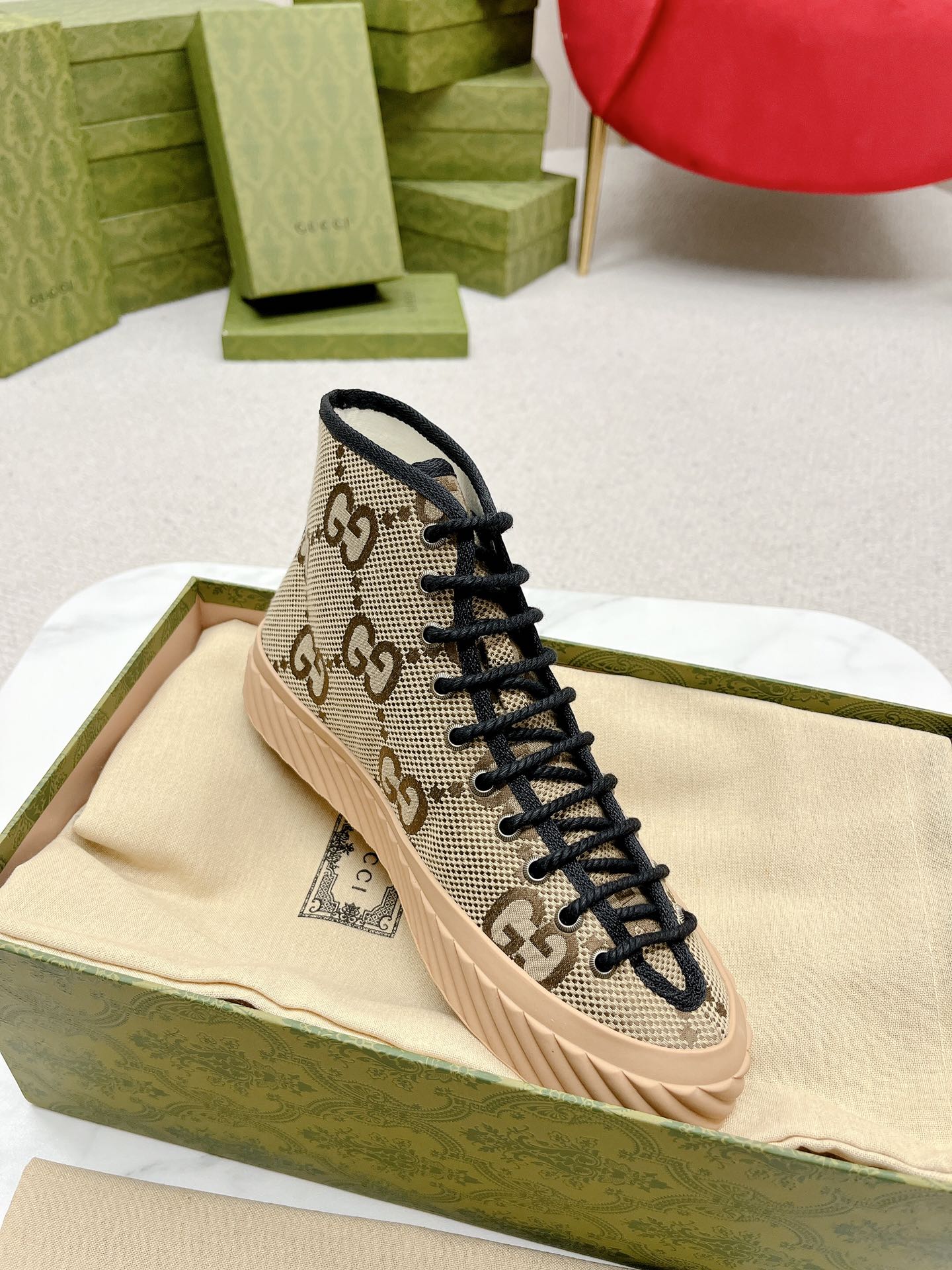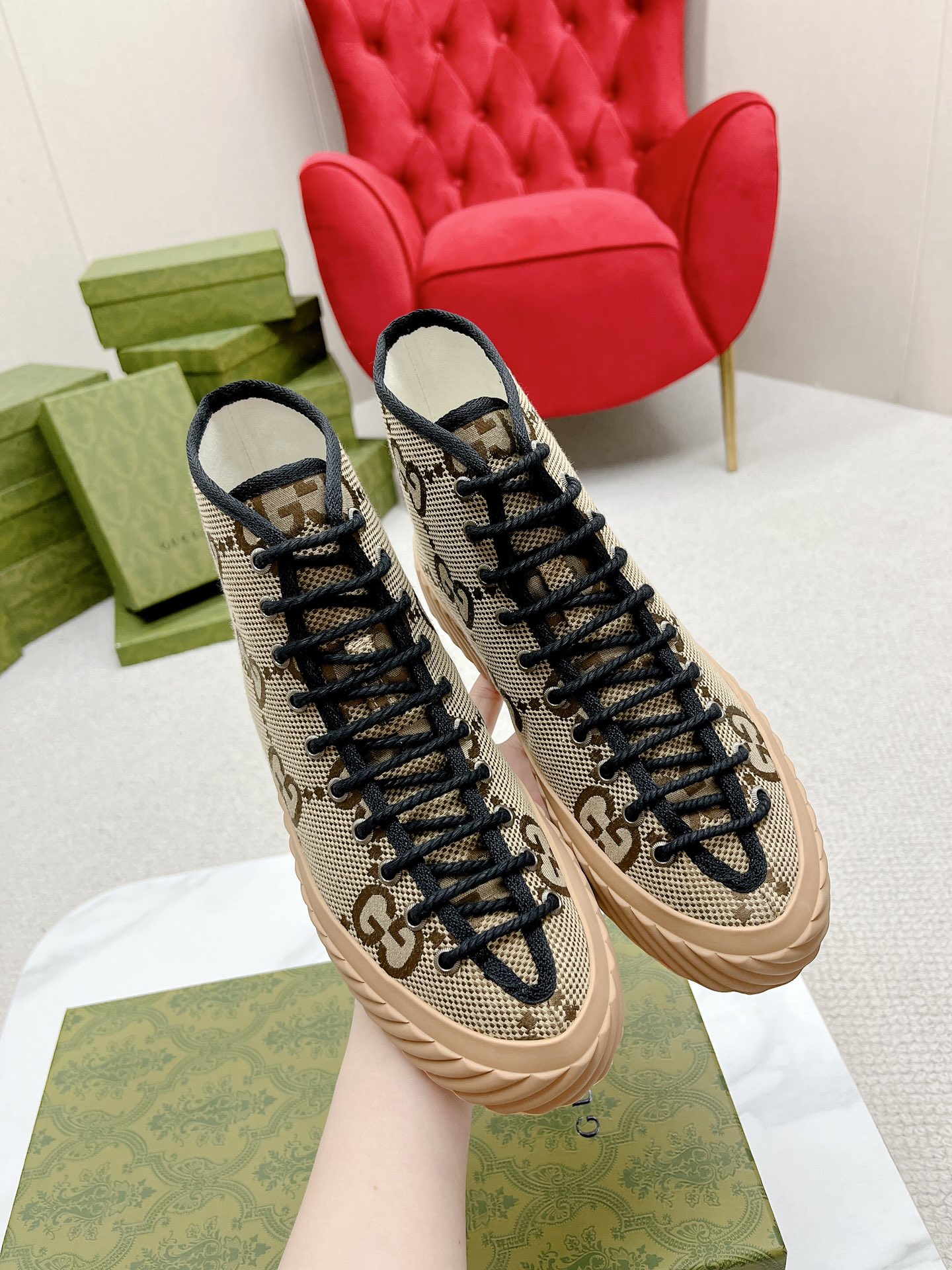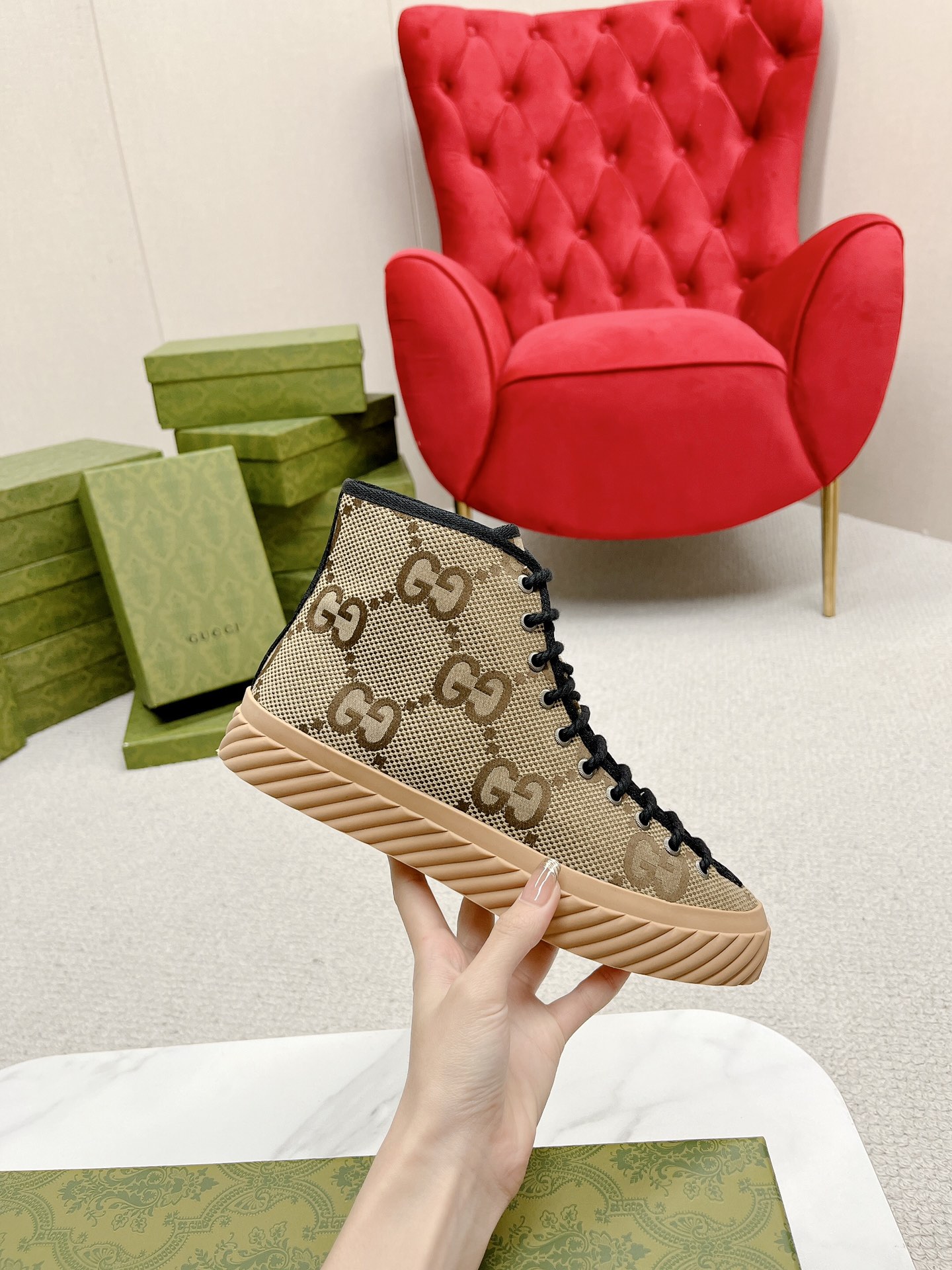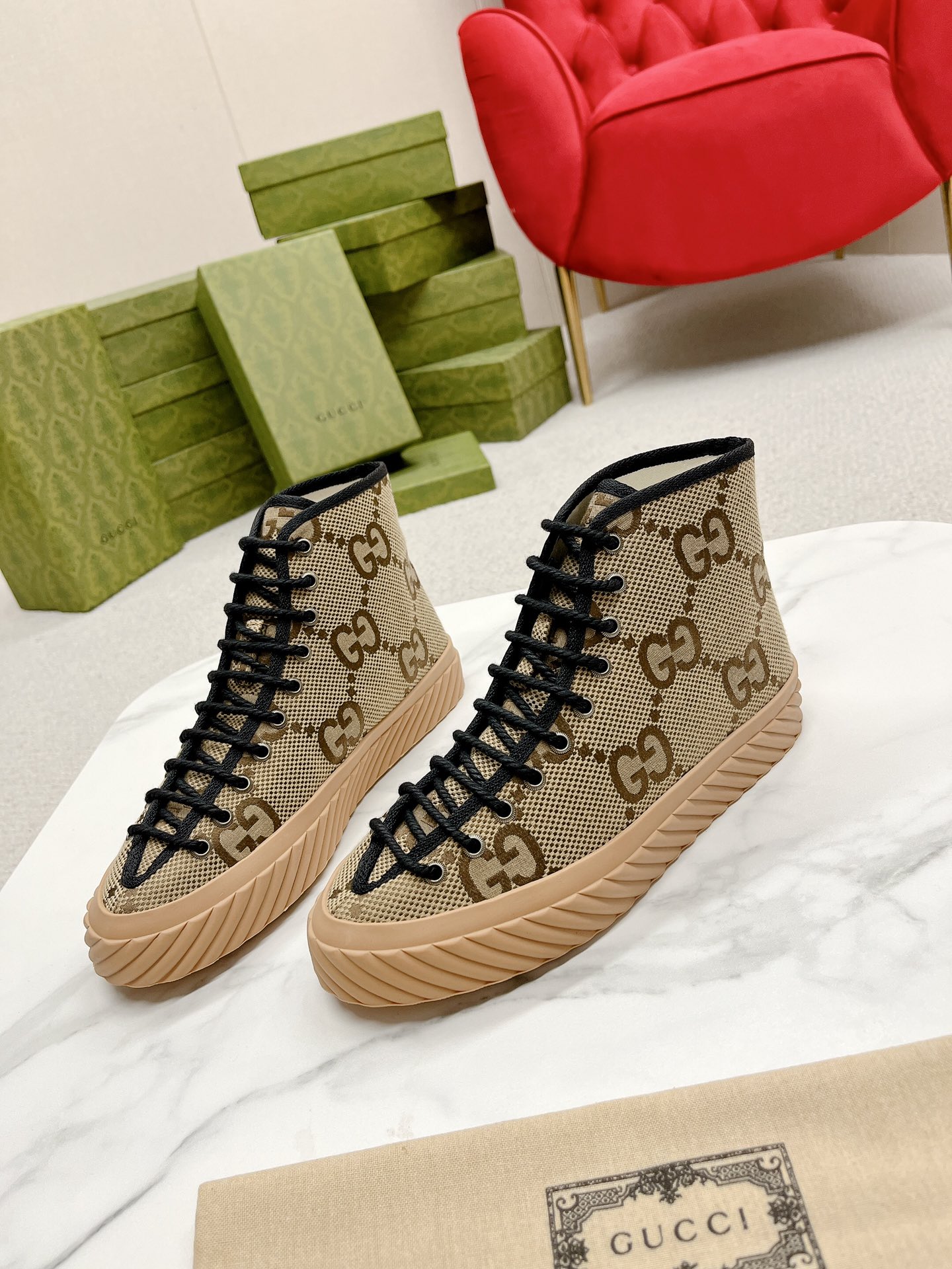 This shoes is AAAAA 1:1 quality (superb). Materials used are identical to the original ones. Gucci trademark marks are indistinguishable to the authentic. Photos take by actual shoes, what you receive will be 100% same with our photos.