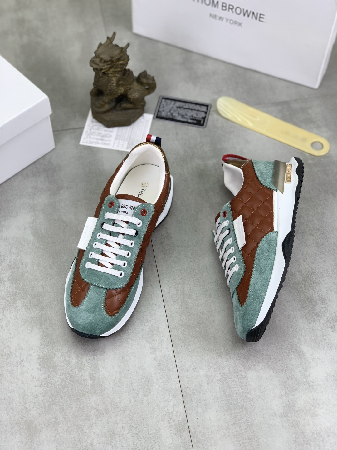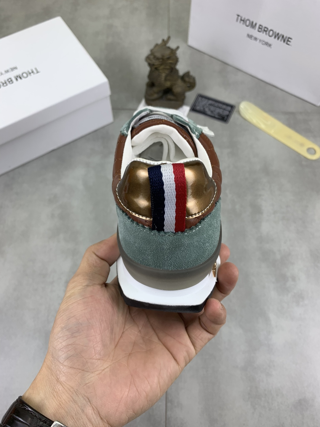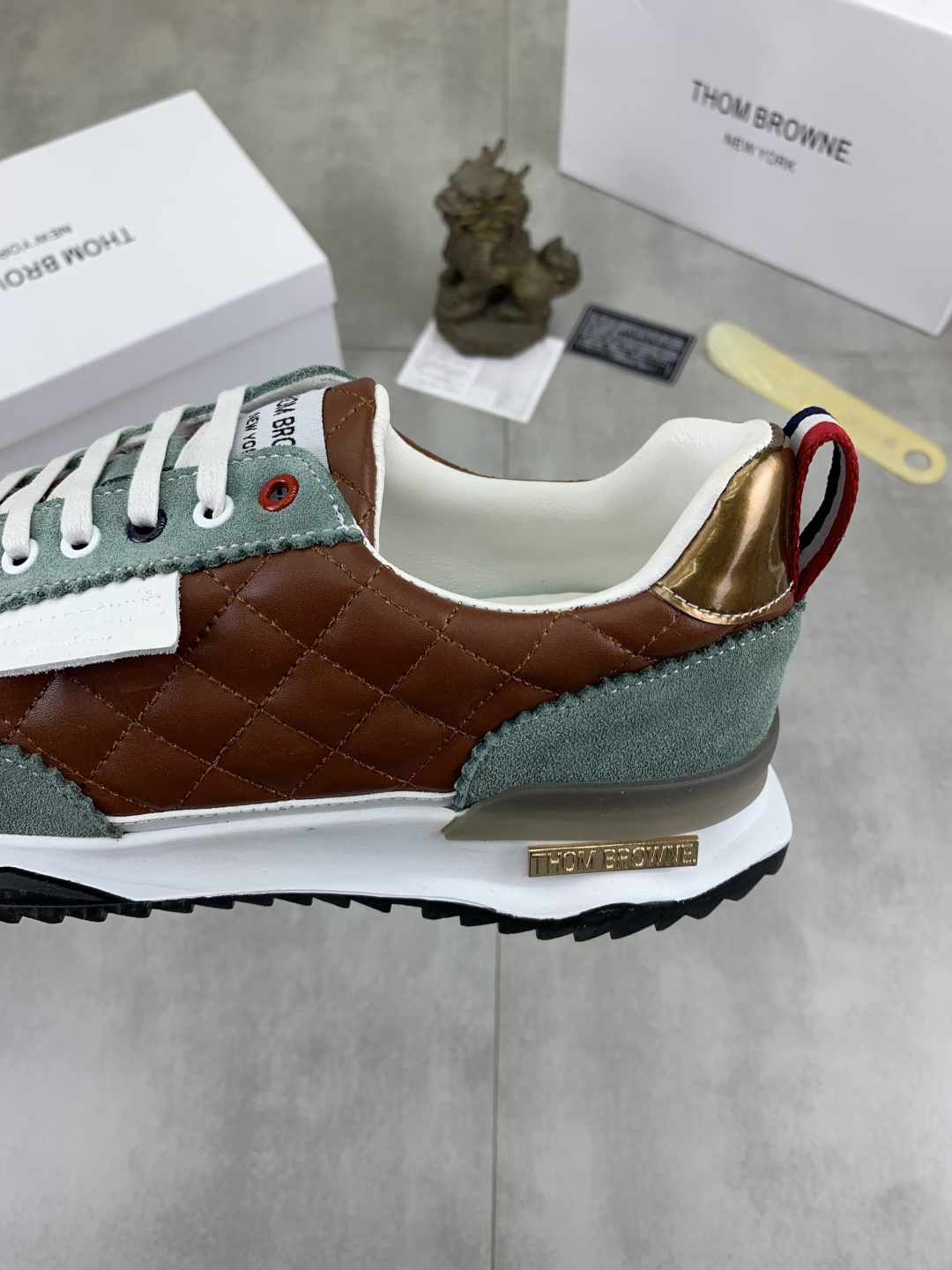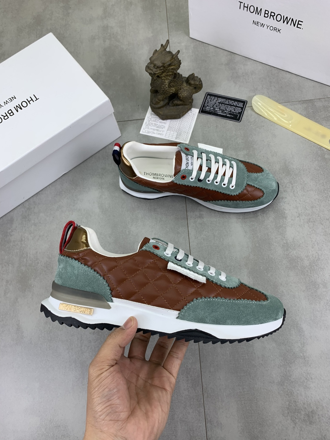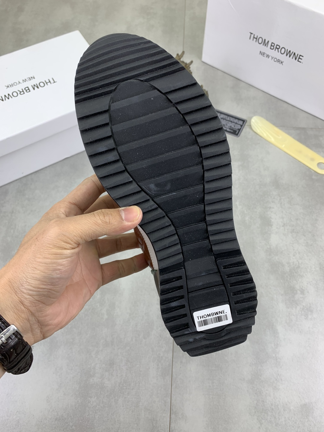 This shoes is AAAAA 1:1 quality (superb). Materials used are identical to the original ones. Thom Browne trademark marks are indistinguishable to the authentic. Photos take by actual shoes, what you receive will be 100% same with our photos.