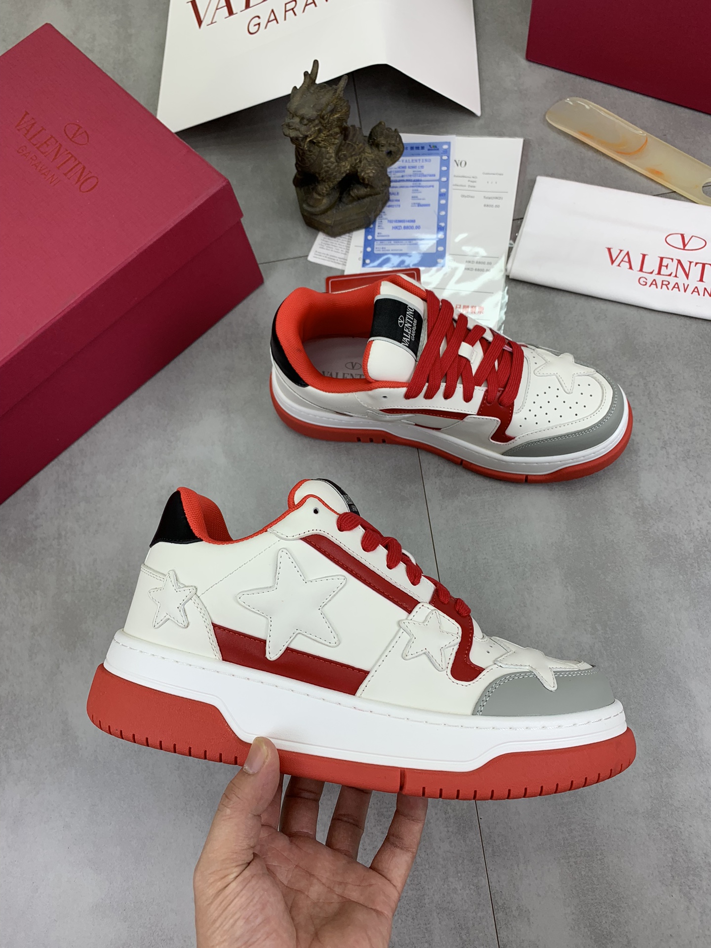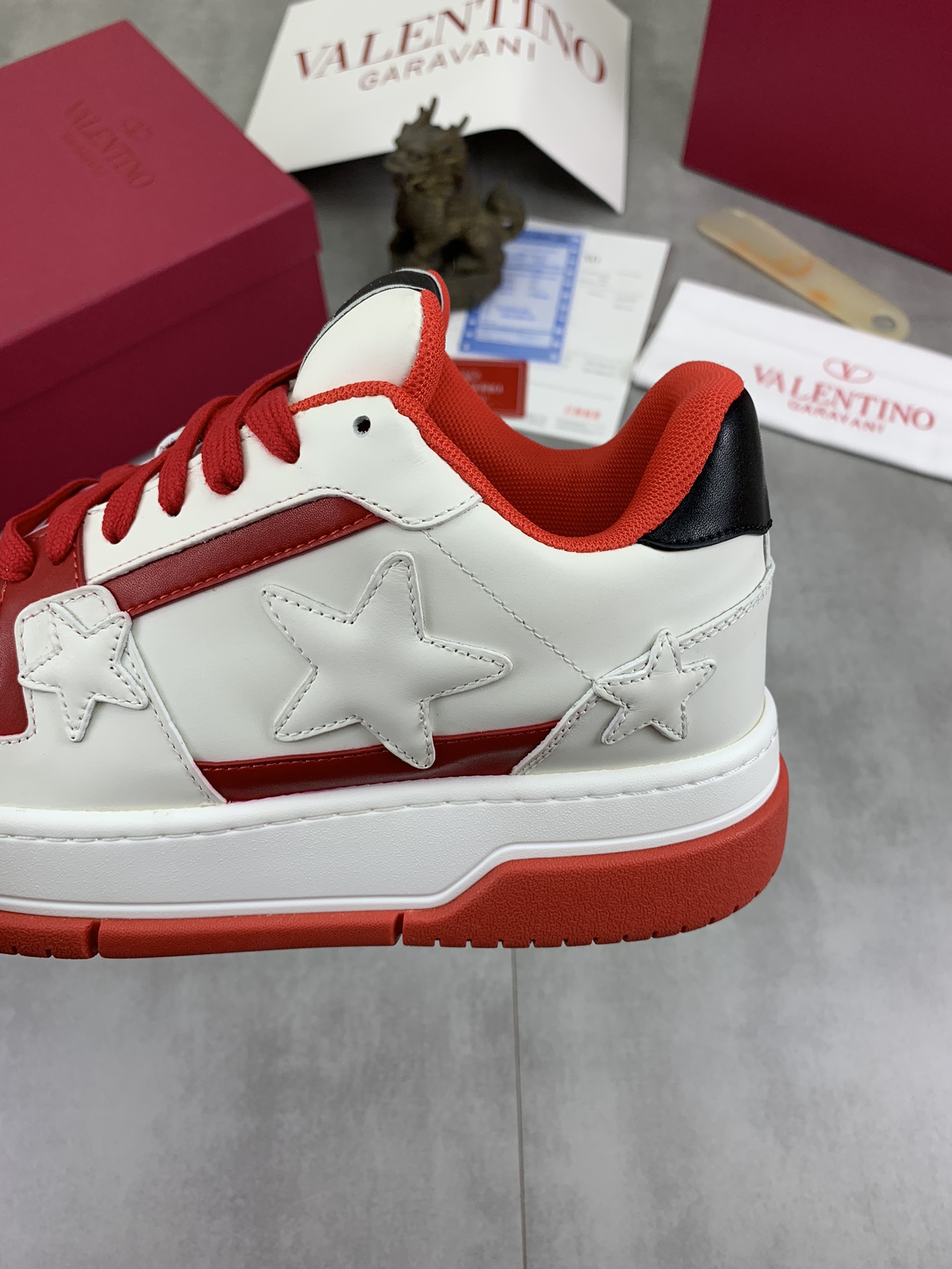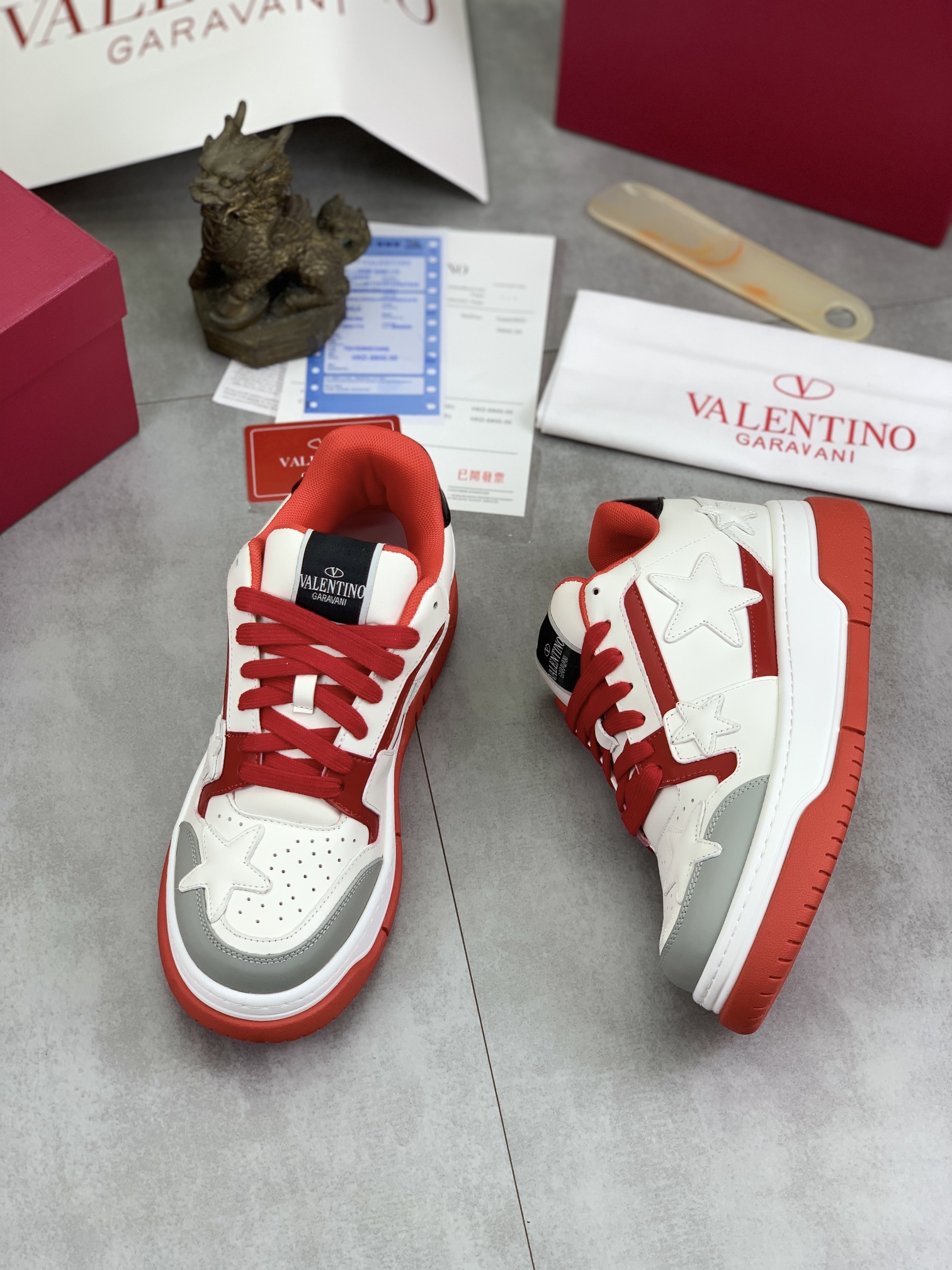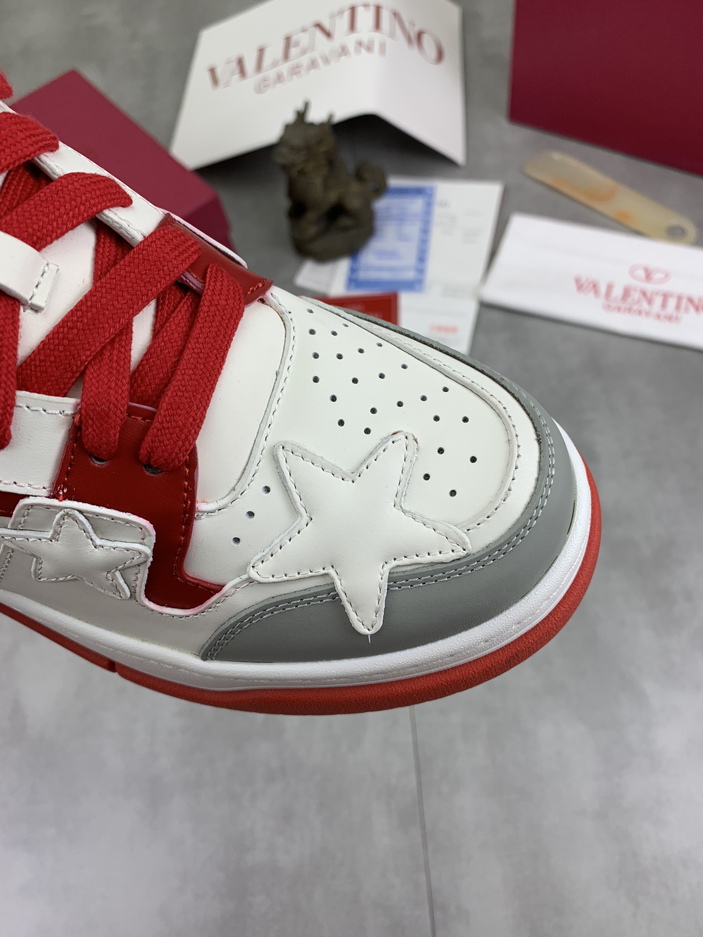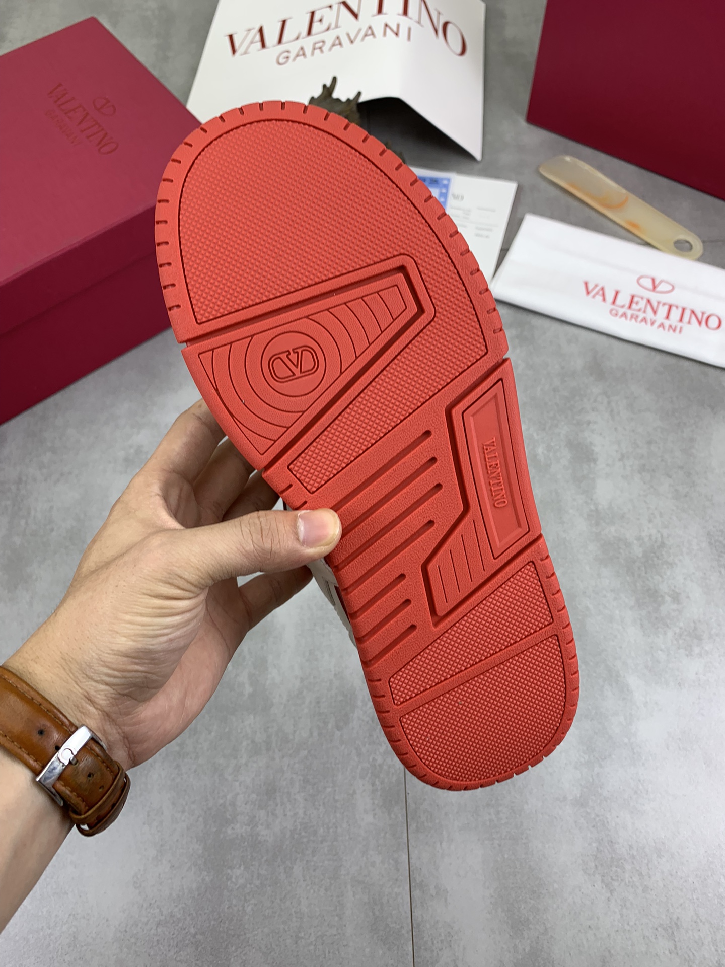 This shoes is AAAAA 1:1 quality (superb). Materials used are identical to the original ones. Valentino trademark marks are indistinguishable to the authentic. Photos take by actual shoes, what you receive will be 100% same with our photos.