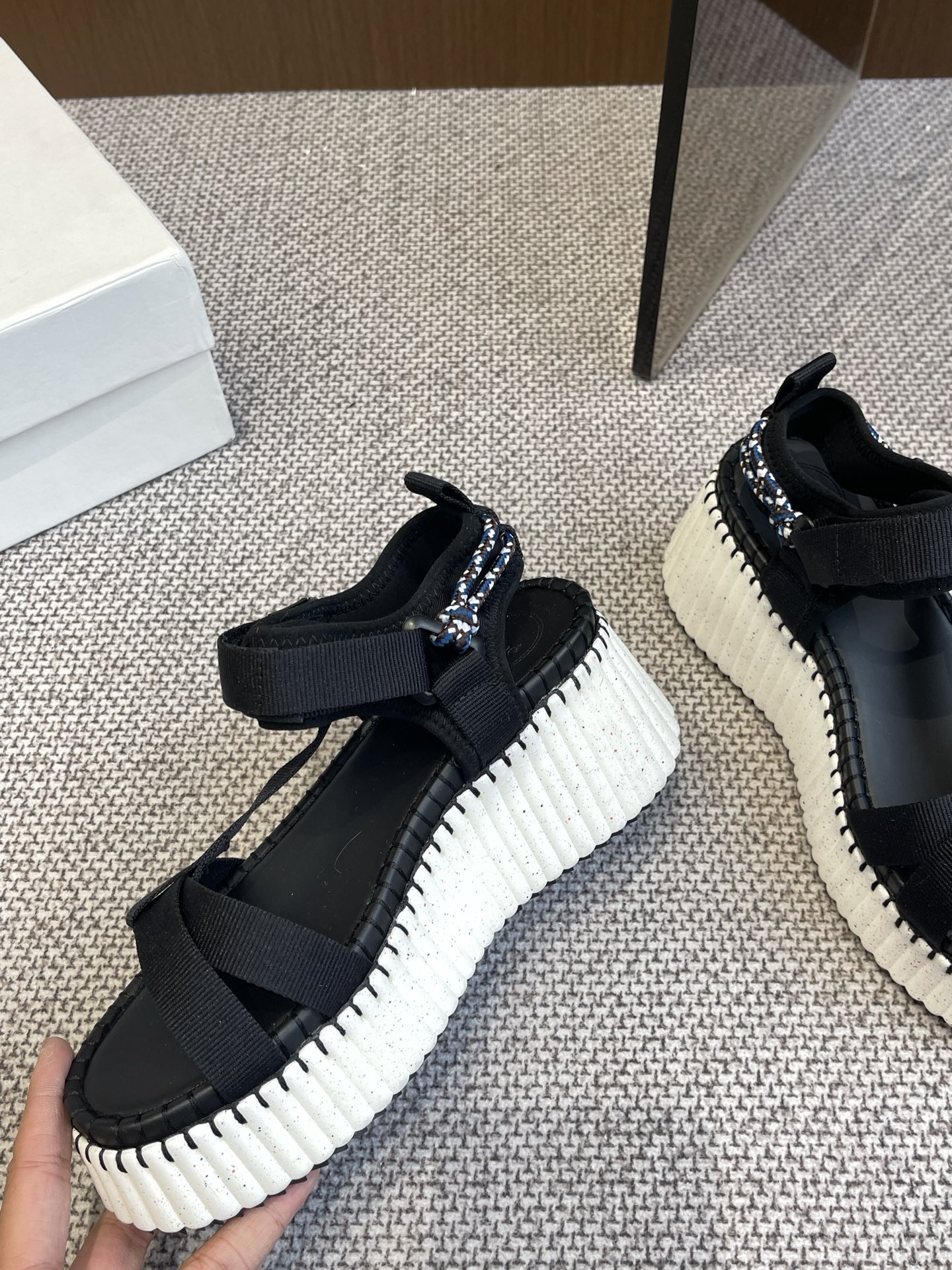 This shoes is AAAAA 1:1 quality (superb). Materials used are identical to the original ones. Chloe trademark marks are indistinguishable to the authentic. Photos take by actual shoes, what you receive will be 100% same with our photos.