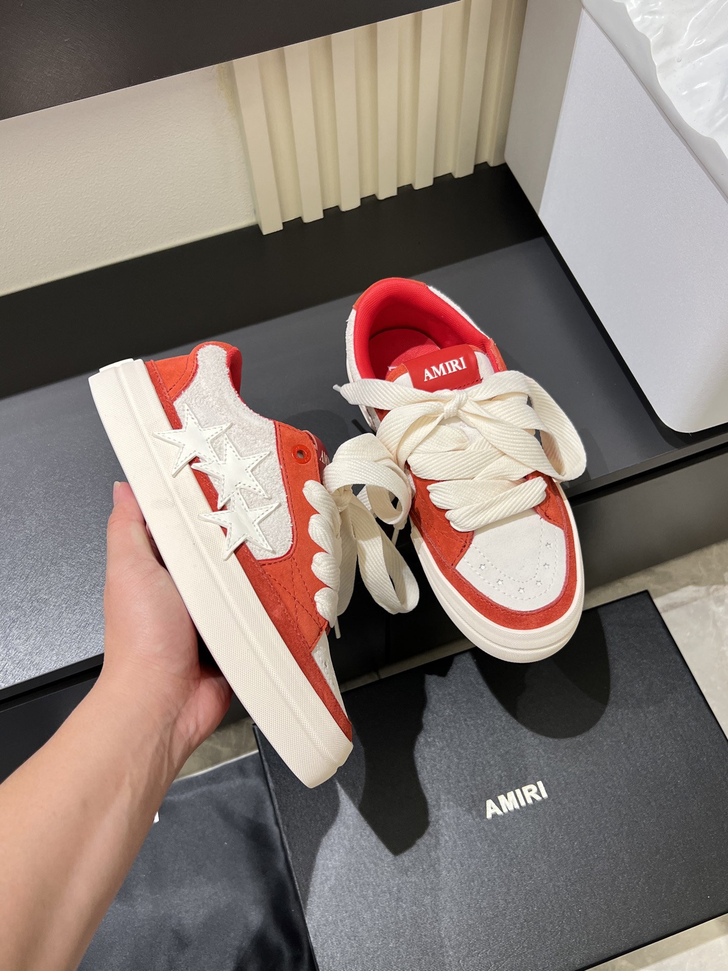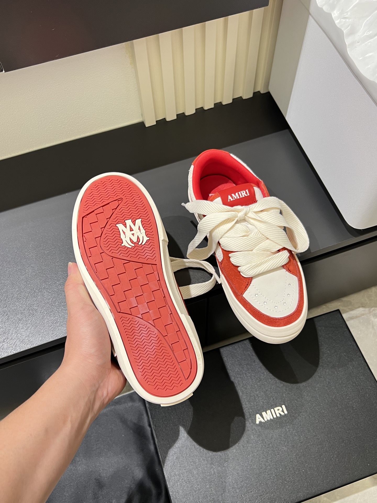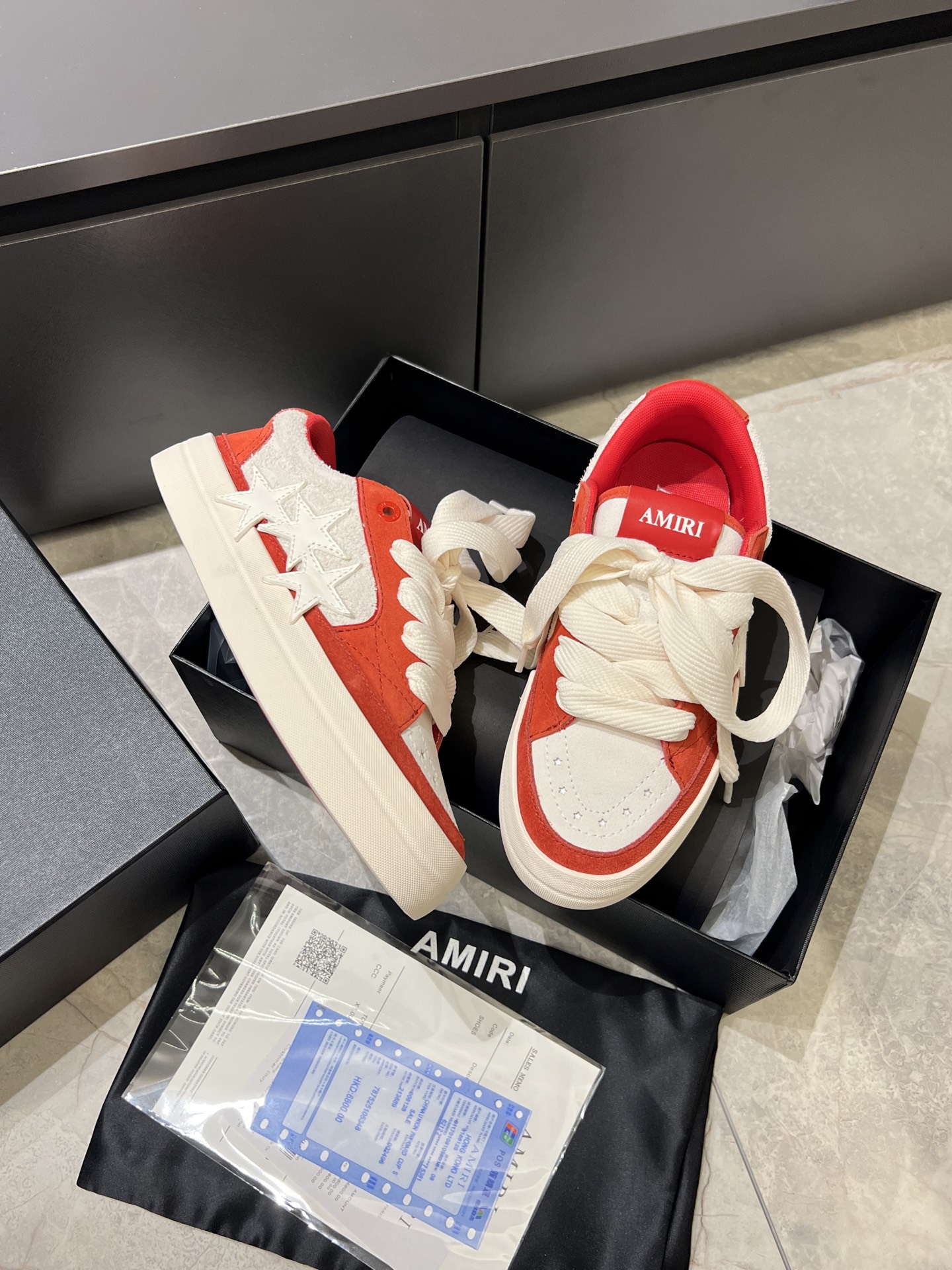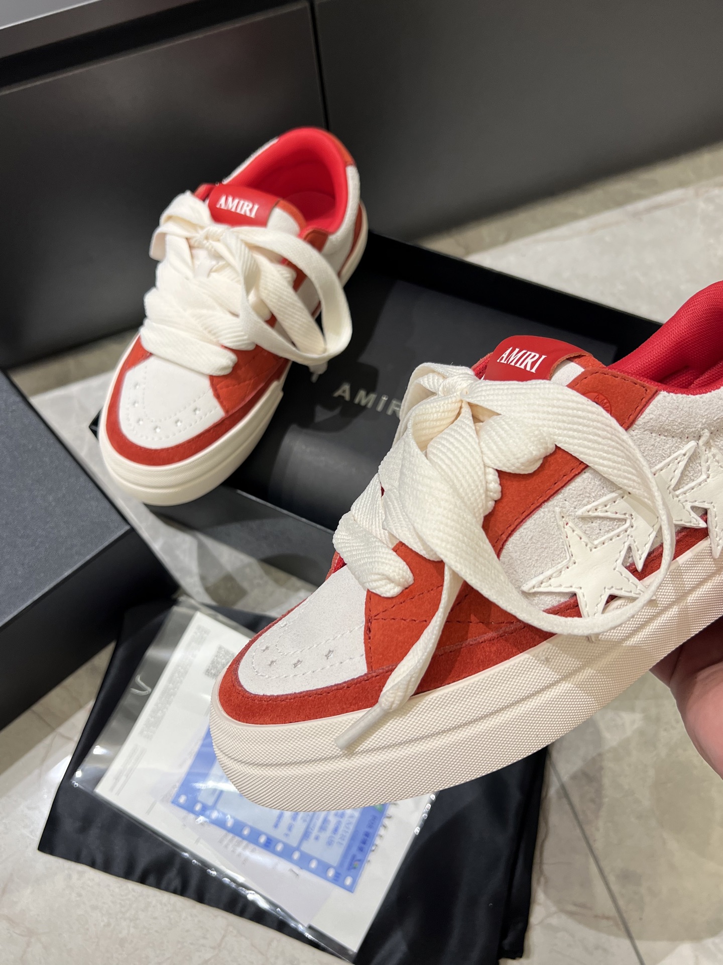 This shoes is AAAAA 1:1 quality (superb). Materials used are identical to the original ones. AMIRI trademark marks are indistinguishable to the authentic. Photos take by actual shoes, what you receive will be 100% same with our photos.