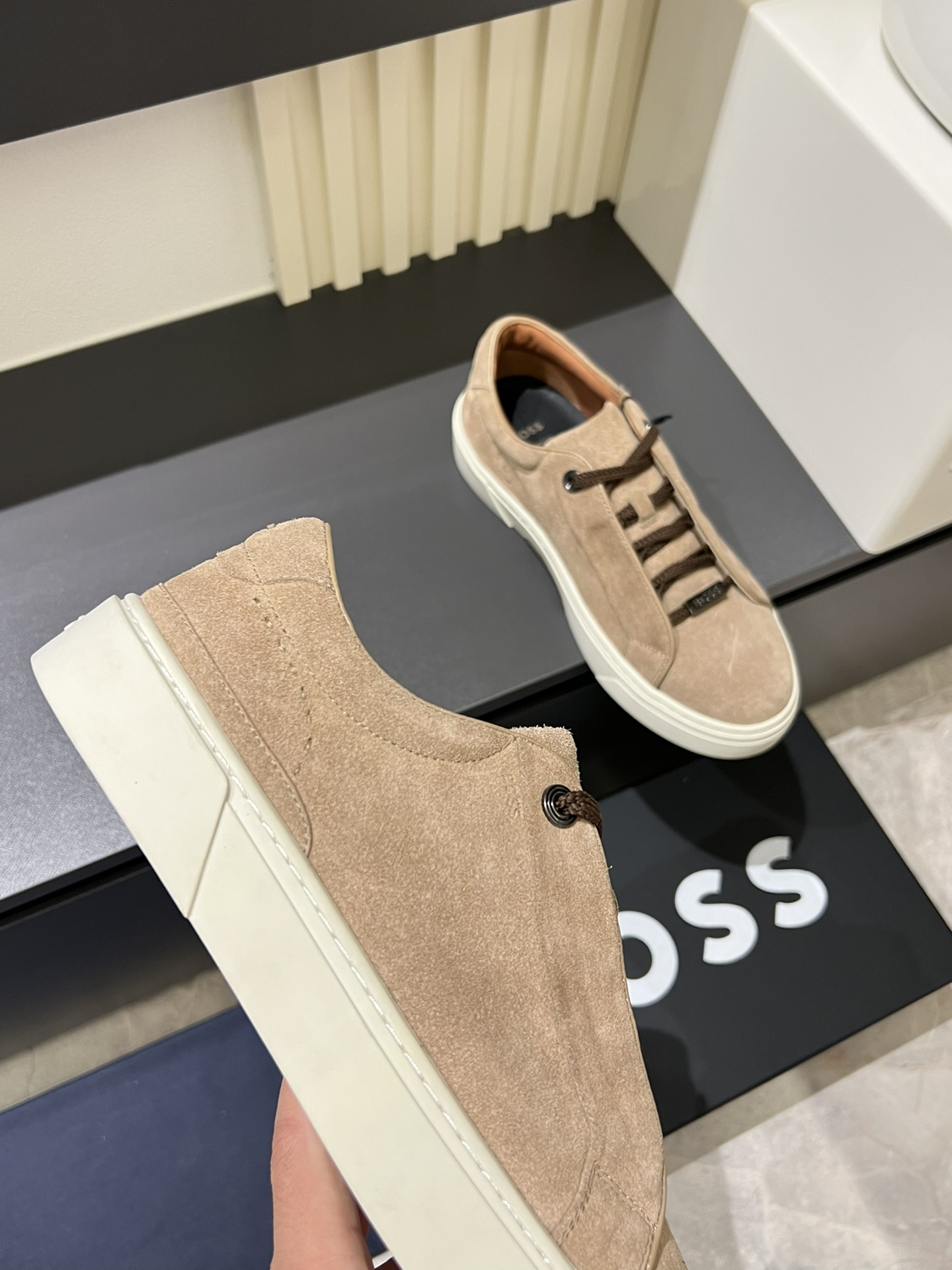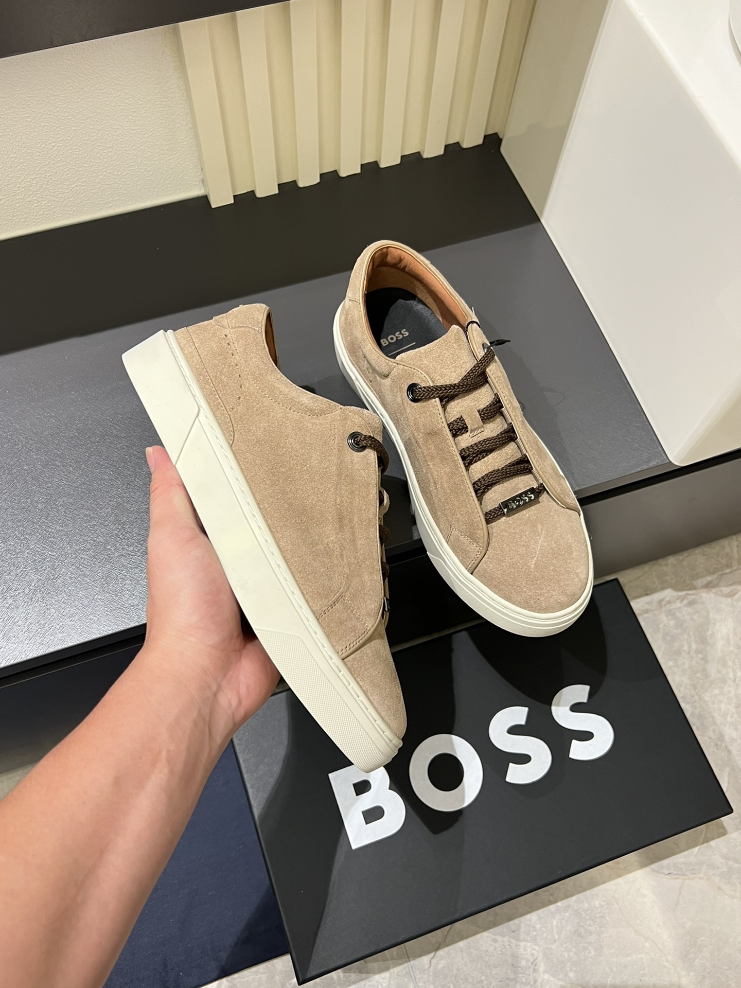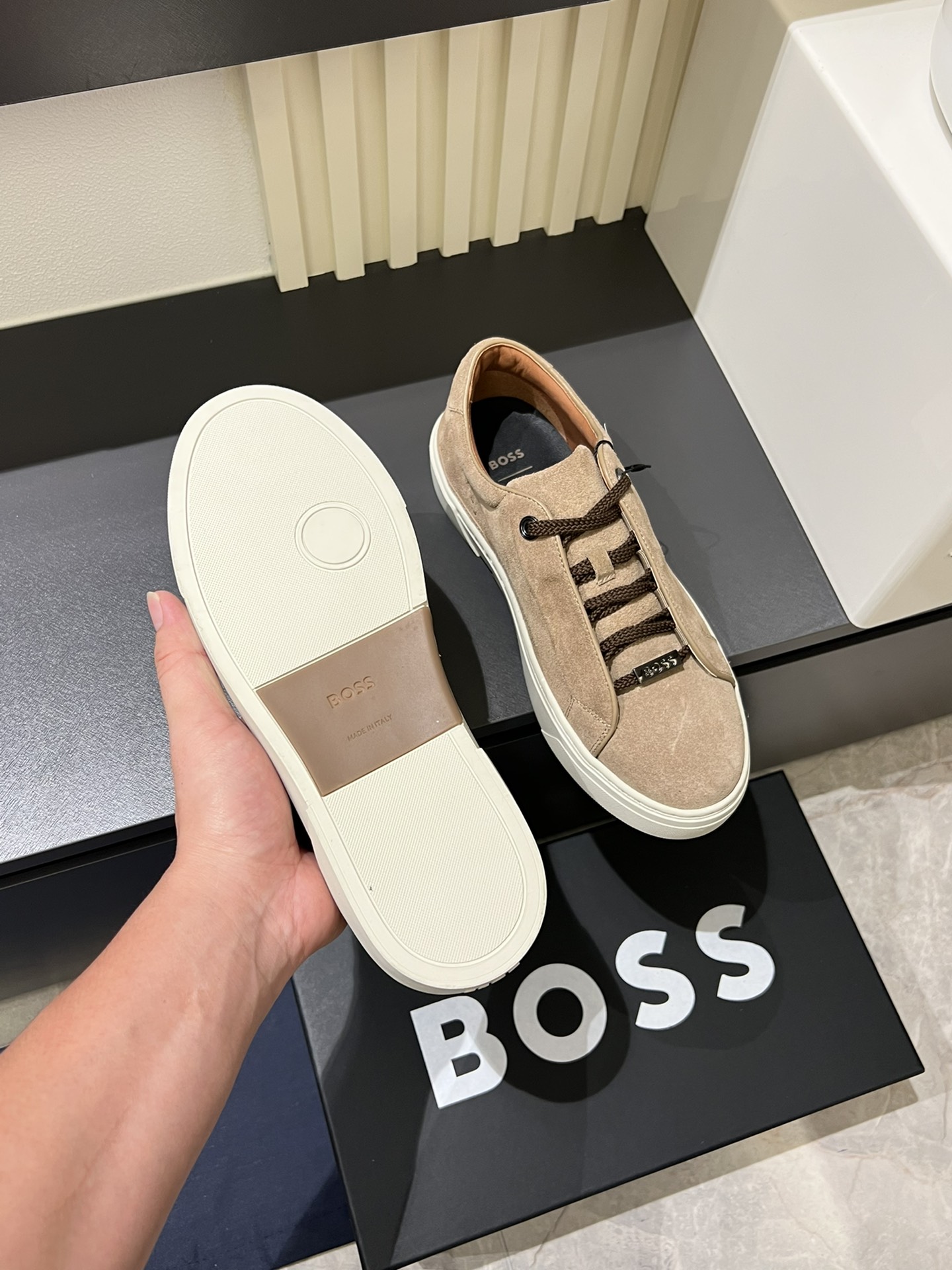 This shoes is AAAAA 1:1 quality (superb). Materials used are identical to the original ones. BOSS trademark marks are indistinguishable to the authentic. Photos take by actual shoes, what you receive will be 100% same with our photos.