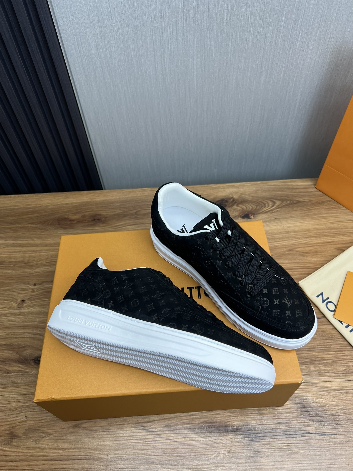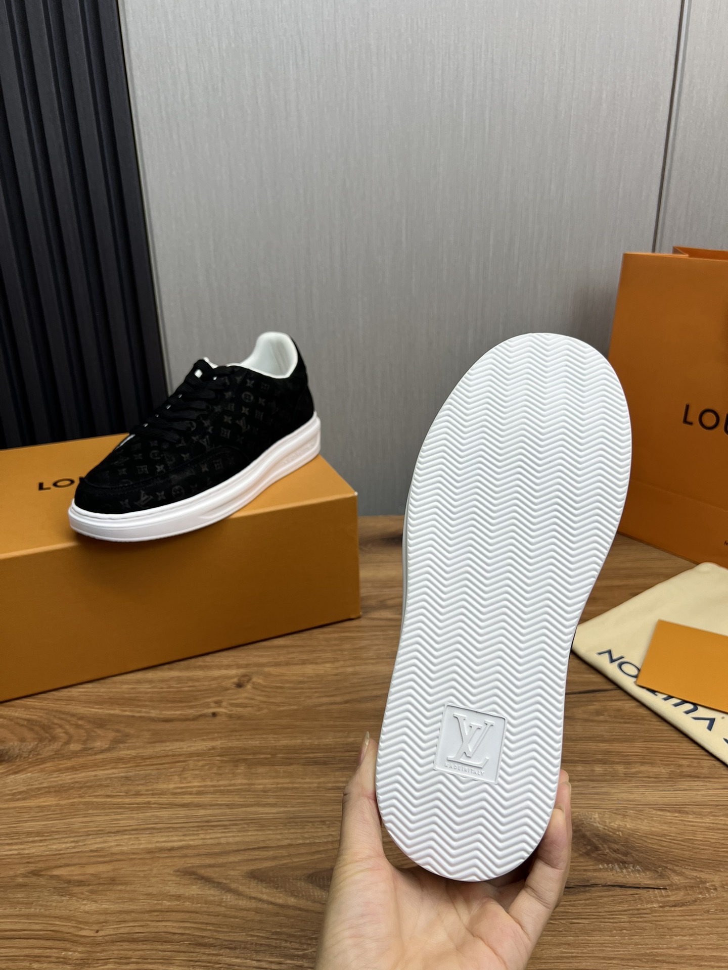 This shoes is AAAAA 1:1 quality (superb). Materials used are identical to the original ones. Louis Vuitton trademark marks are indistinguishable to the authentic. Photos take by actual shoes, what you receive will be 100% same with our photos.