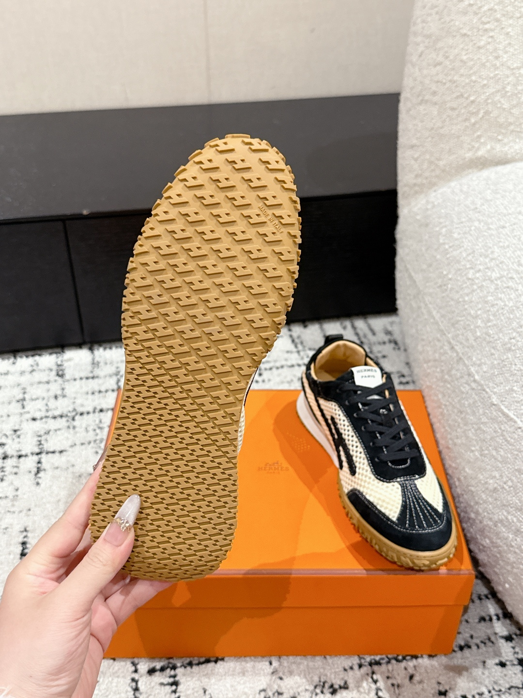This shoes is AAAAA 1:1 quality (superb). Materials used are identical to the original ones. Hermes trademark marks are indistinguishable to the authentic. Photos take by actual shoes, what you receive will be 100% same with our photos.