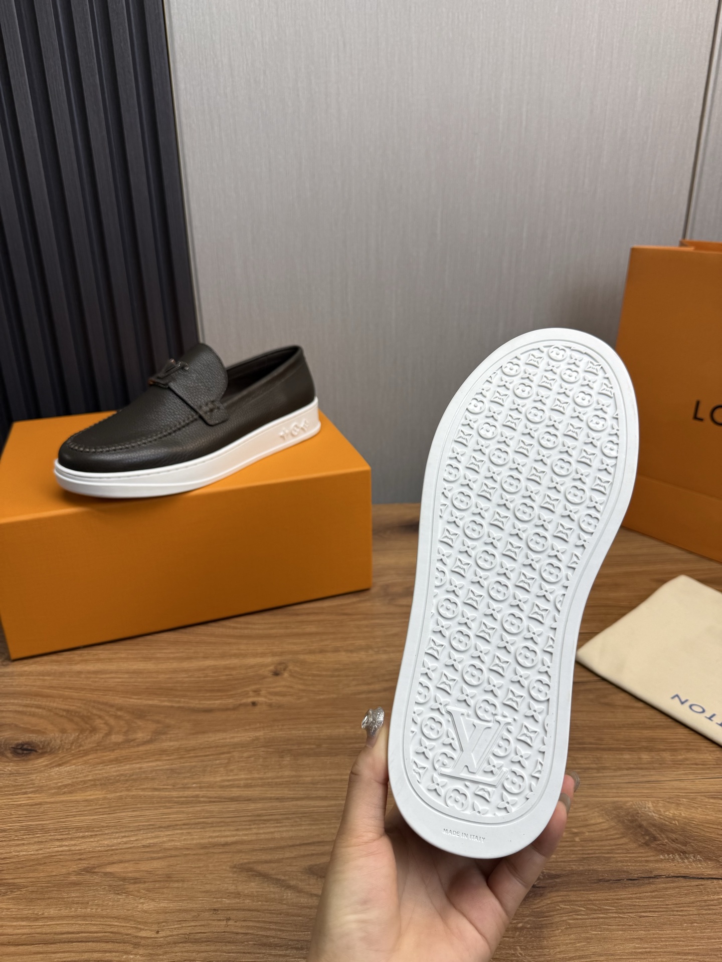 This shoes is AAAAA 1:1 quality (superb). Materials used are identical to the original ones. Louis Vuitton trademark marks are indistinguishable to the authentic. Photos take by actual shoes, what you receive will be 100% same with our photos.