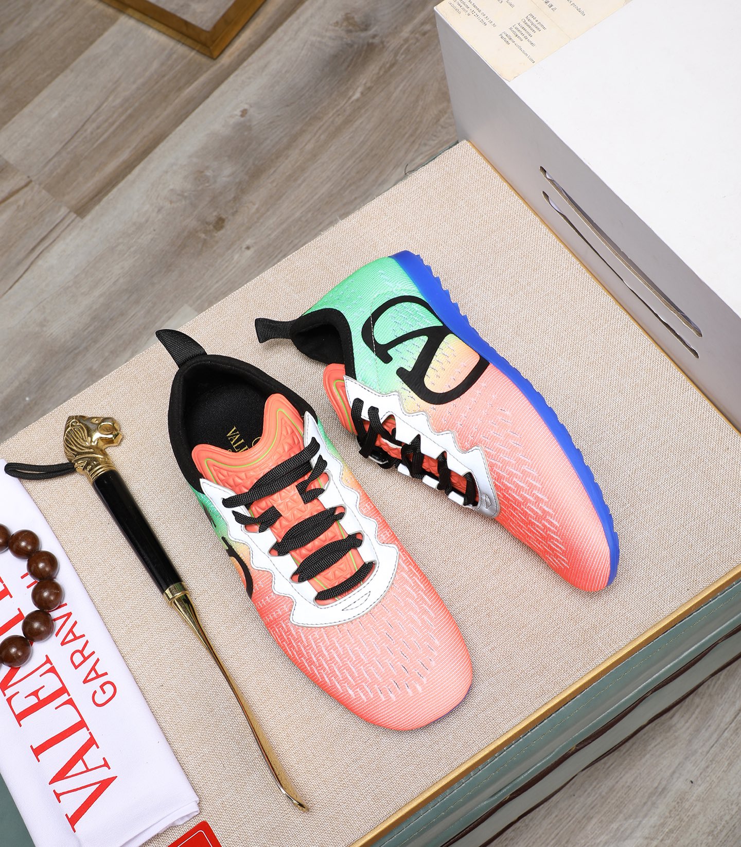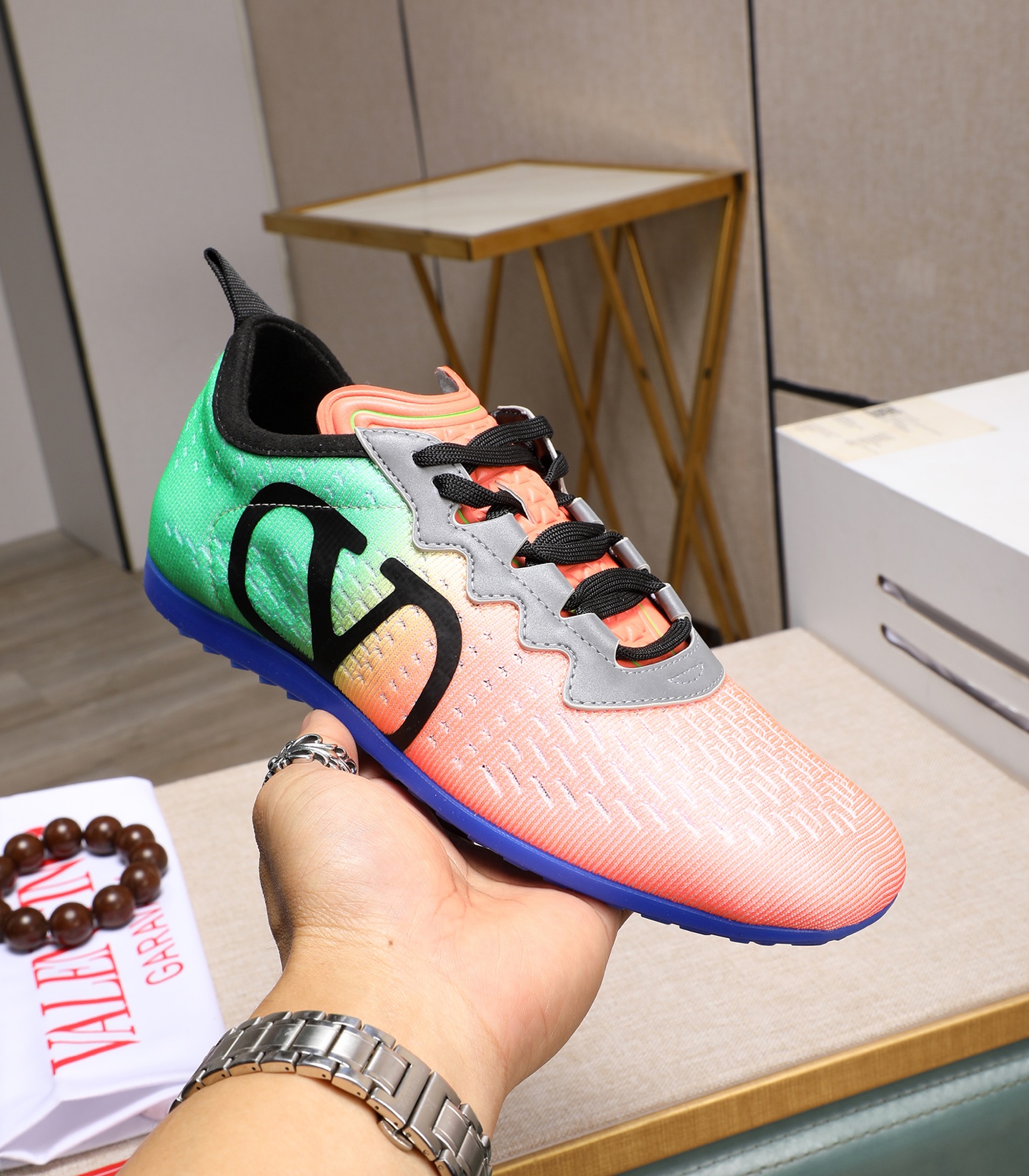 This shoes is AAAAA 1:1 quality (superb). Materials used are identical to the original ones. Valentino trademark marks are indistinguishable to the authentic. Photos take by actual shoes, what you receive will be 100% same with our photos.