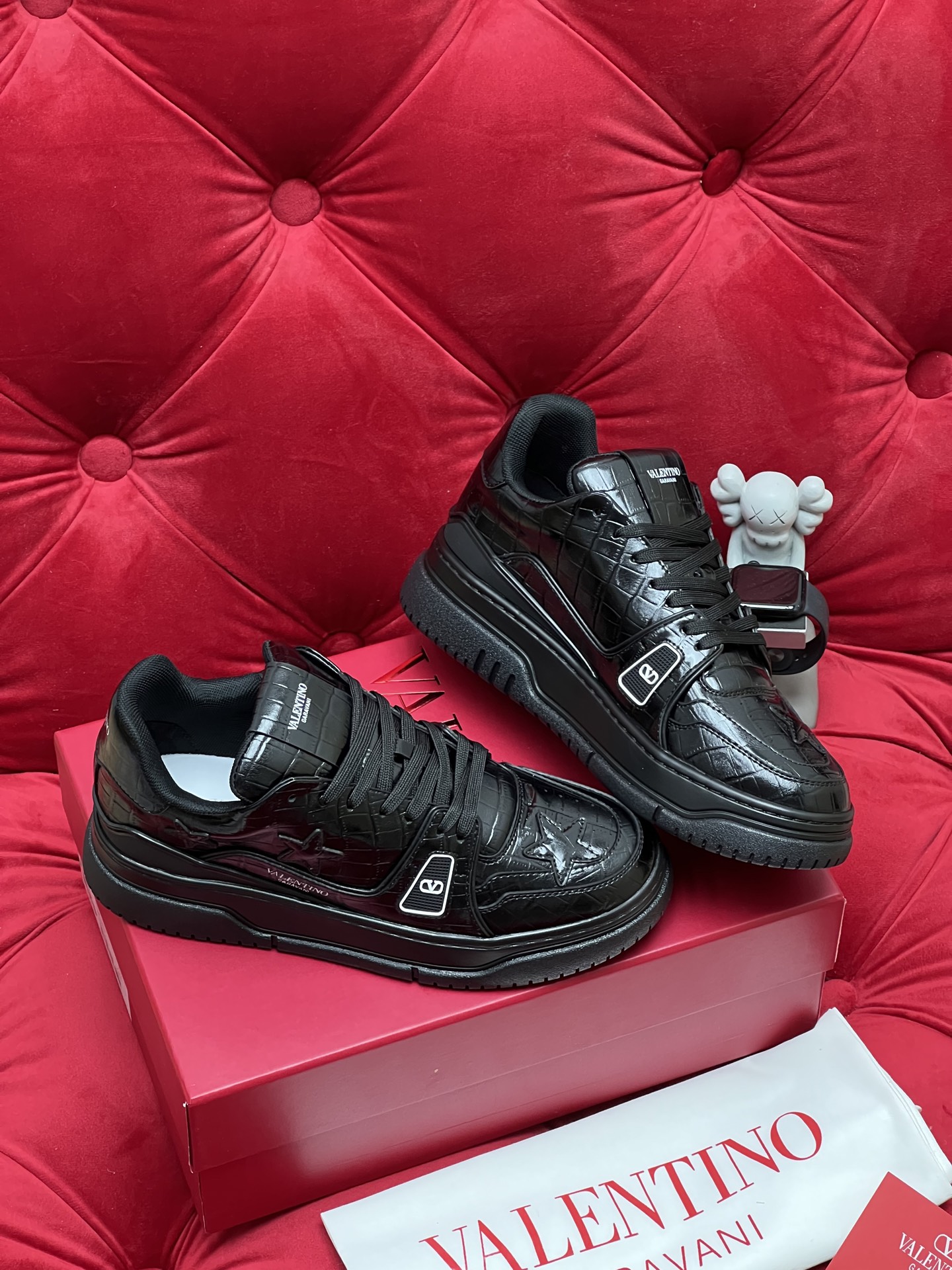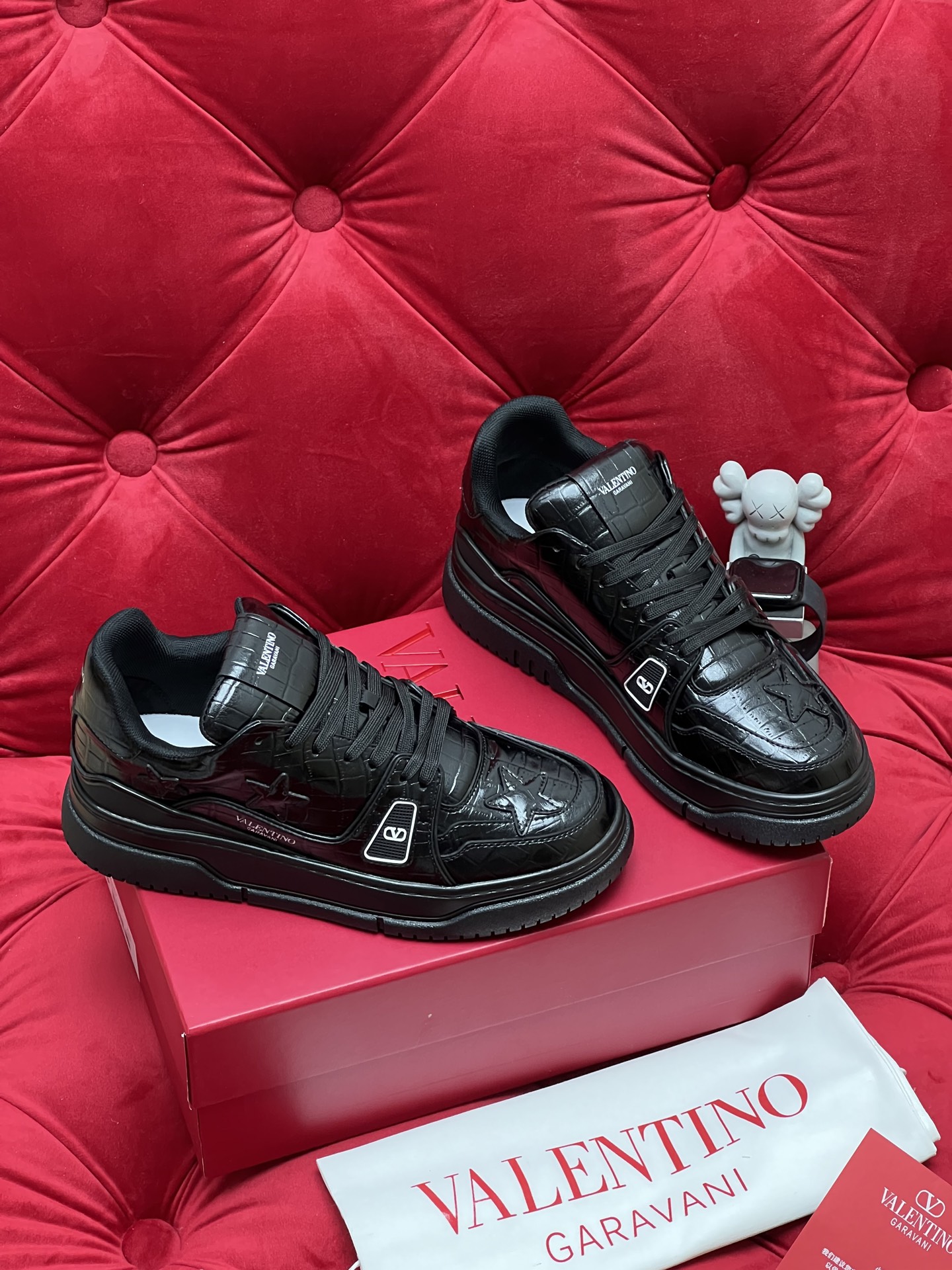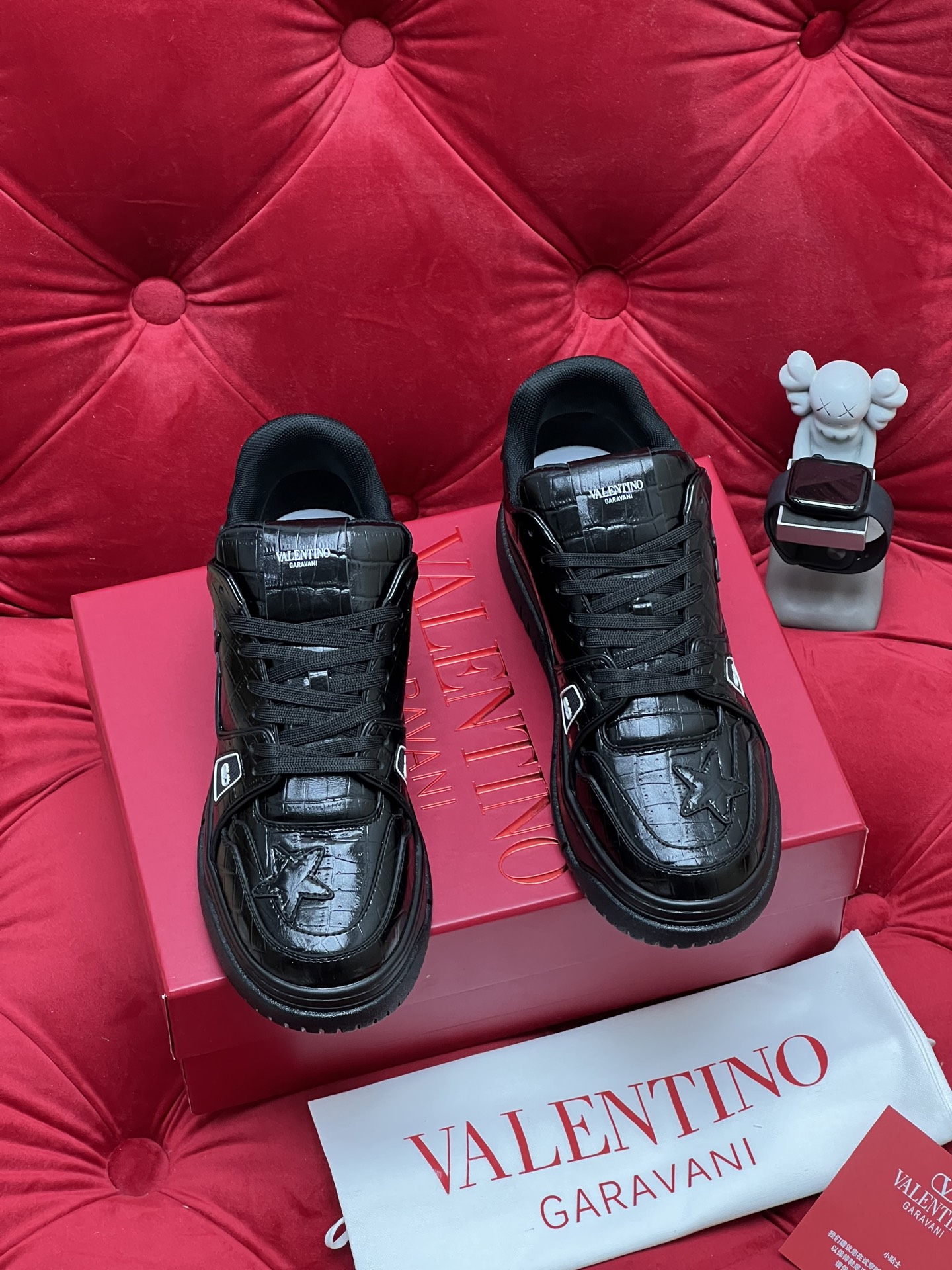 This shoes is AAAAA 1:1 quality (superb). Materials used are identical to the original ones. Valentino trademark marks are indistinguishable to the authentic. Photos take by actual shoes, what you receive will be 100% same with our photos.
