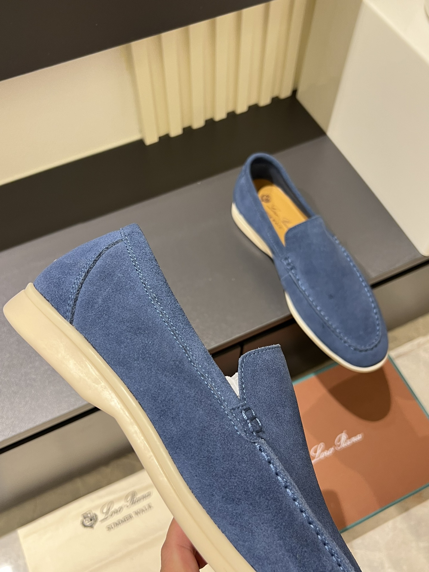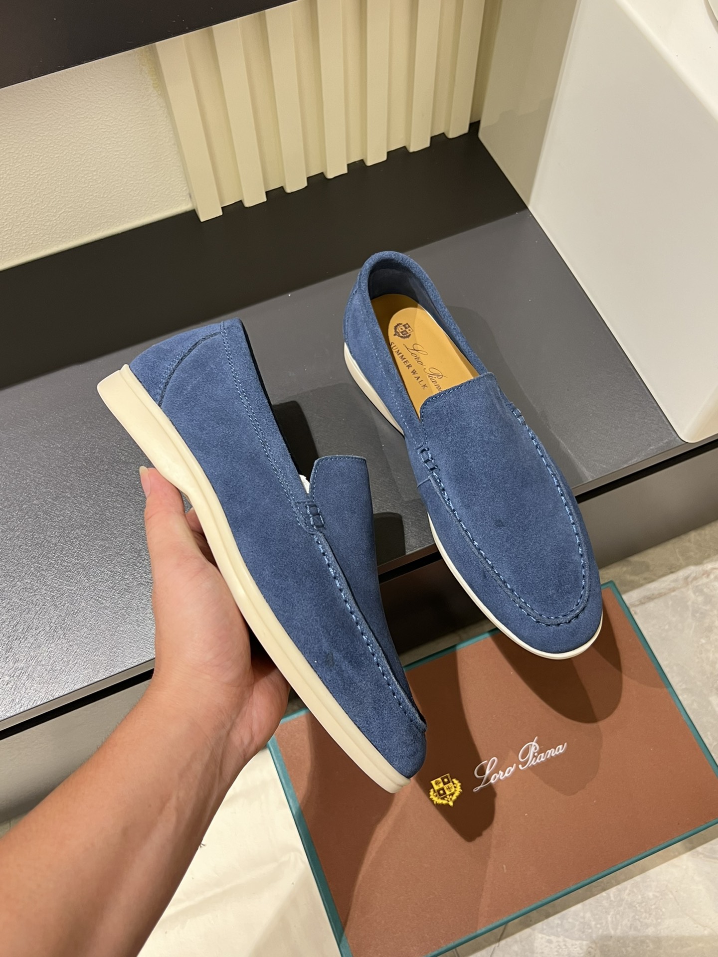 This shoes is AAAAA 1:1 quality (superb). Materials used are identical to the original ones. Loro Piana trademark marks are indistinguishable to the authentic. Photos take by actual shoes, what you receive will be 100% same with our photos.