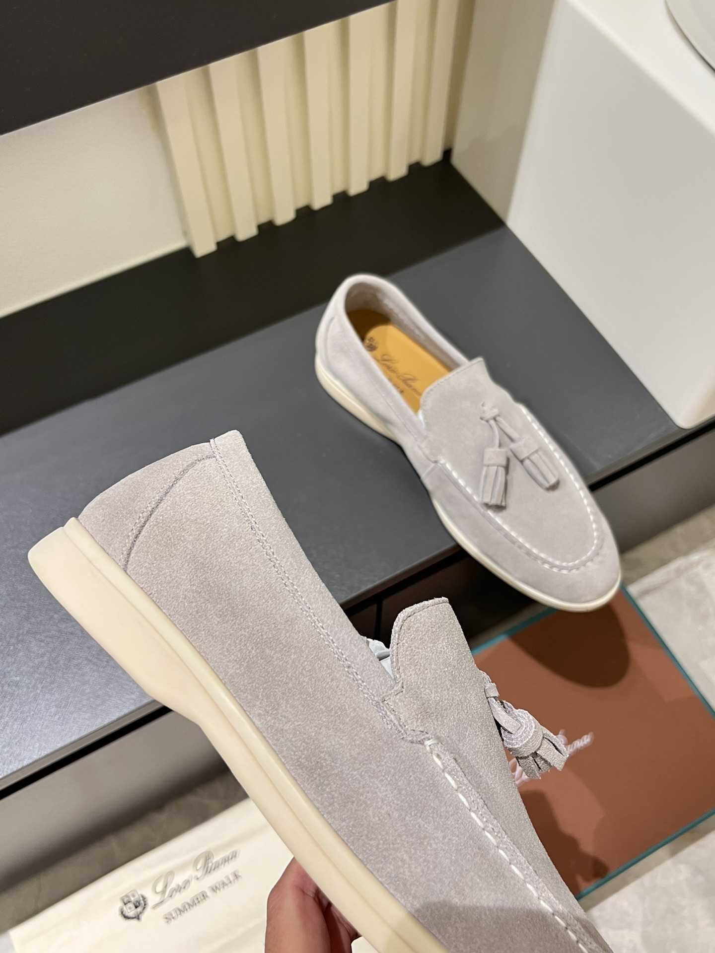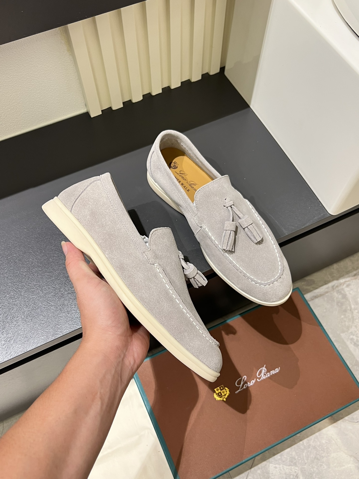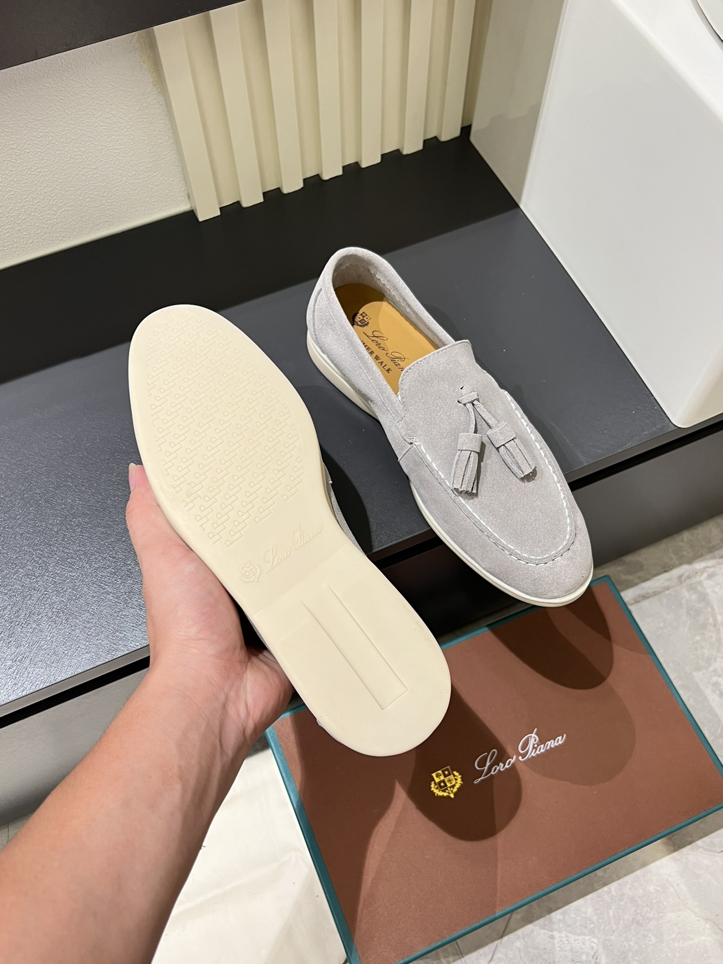 This shoes is AAAAA 1:1 quality (superb). Materials used are identical to the original ones. Loro Piana trademark marks are indistinguishable to the authentic. Photos take by actual shoes, what you receive will be 100% same with our photos.