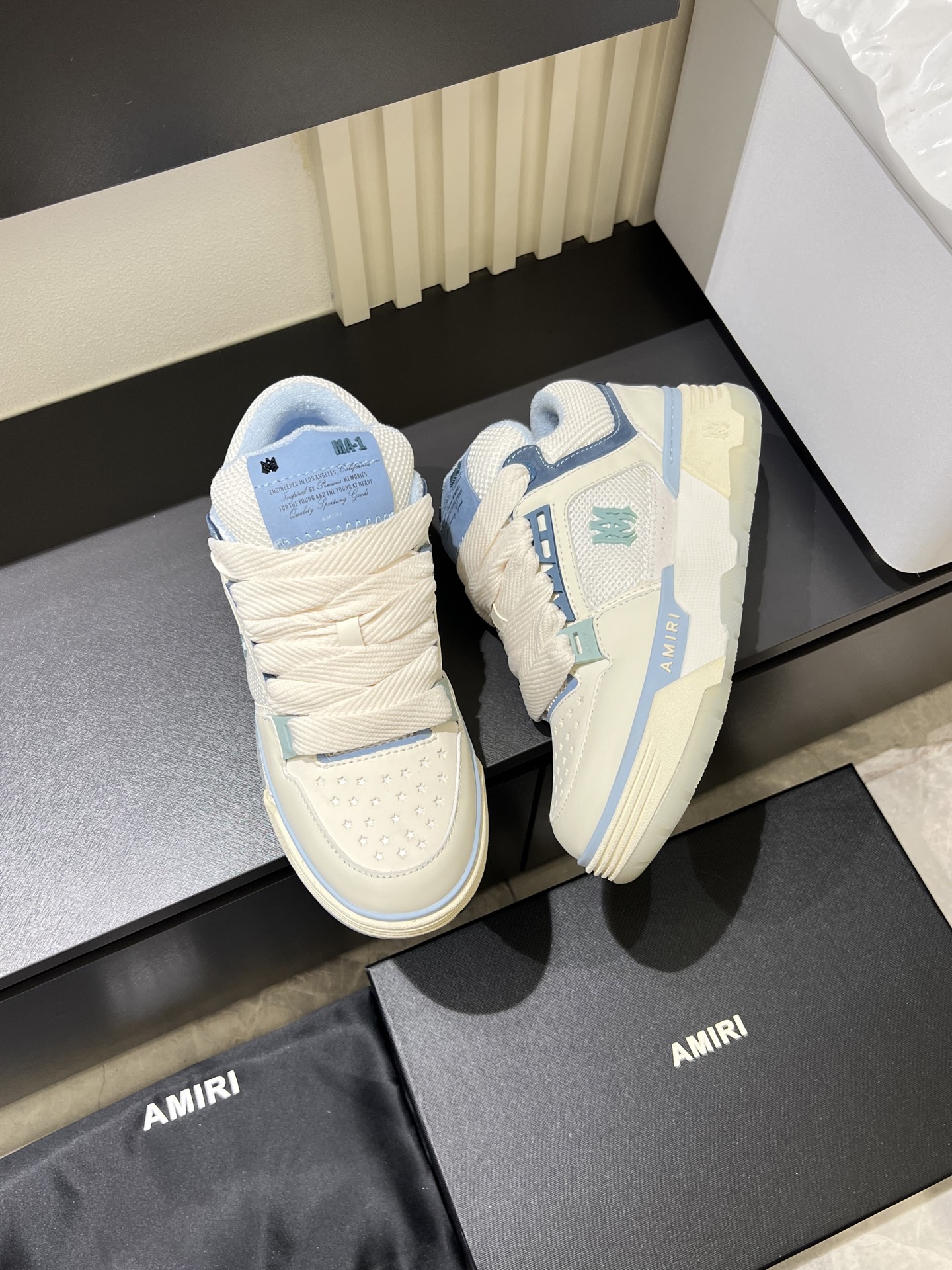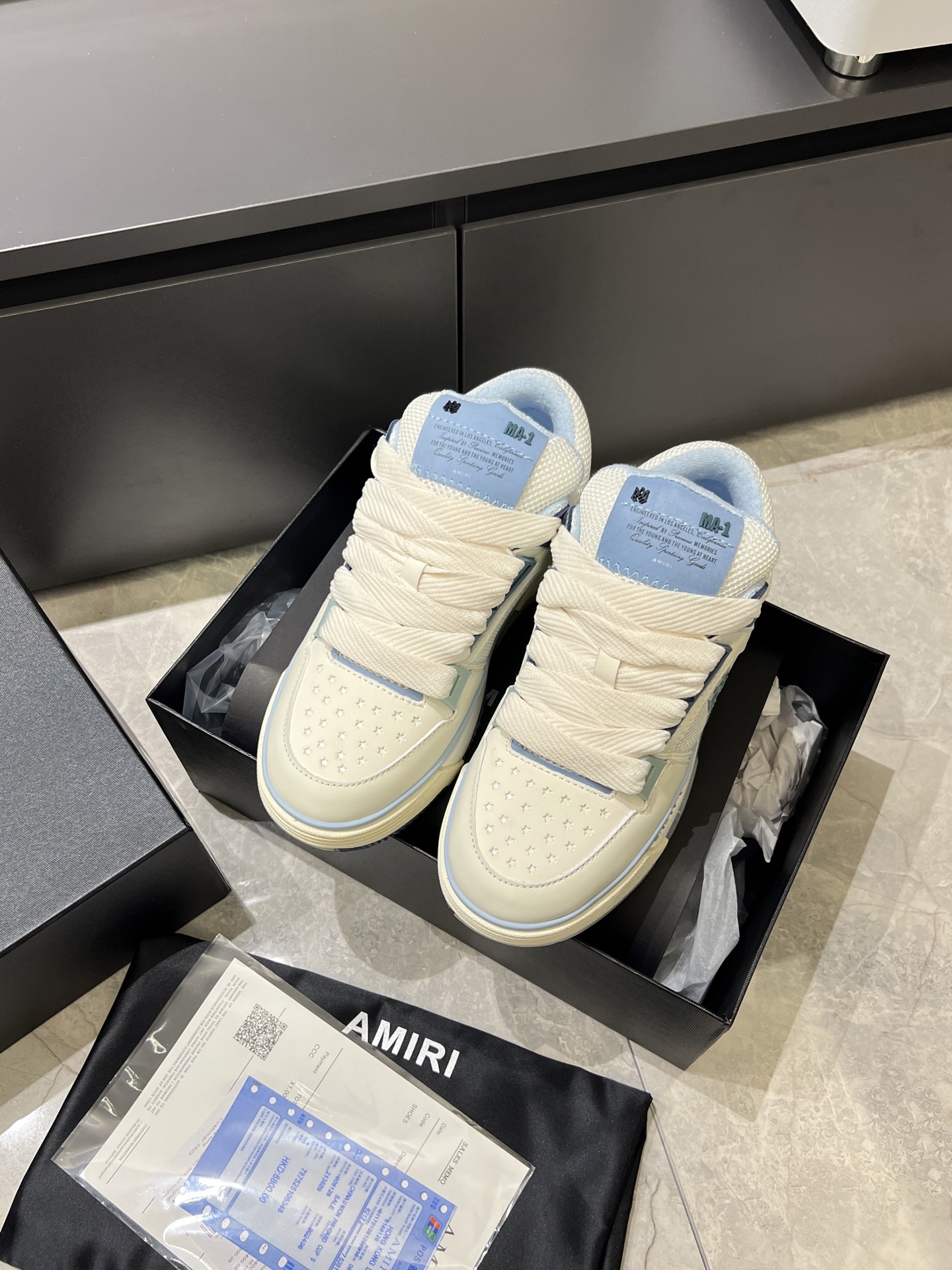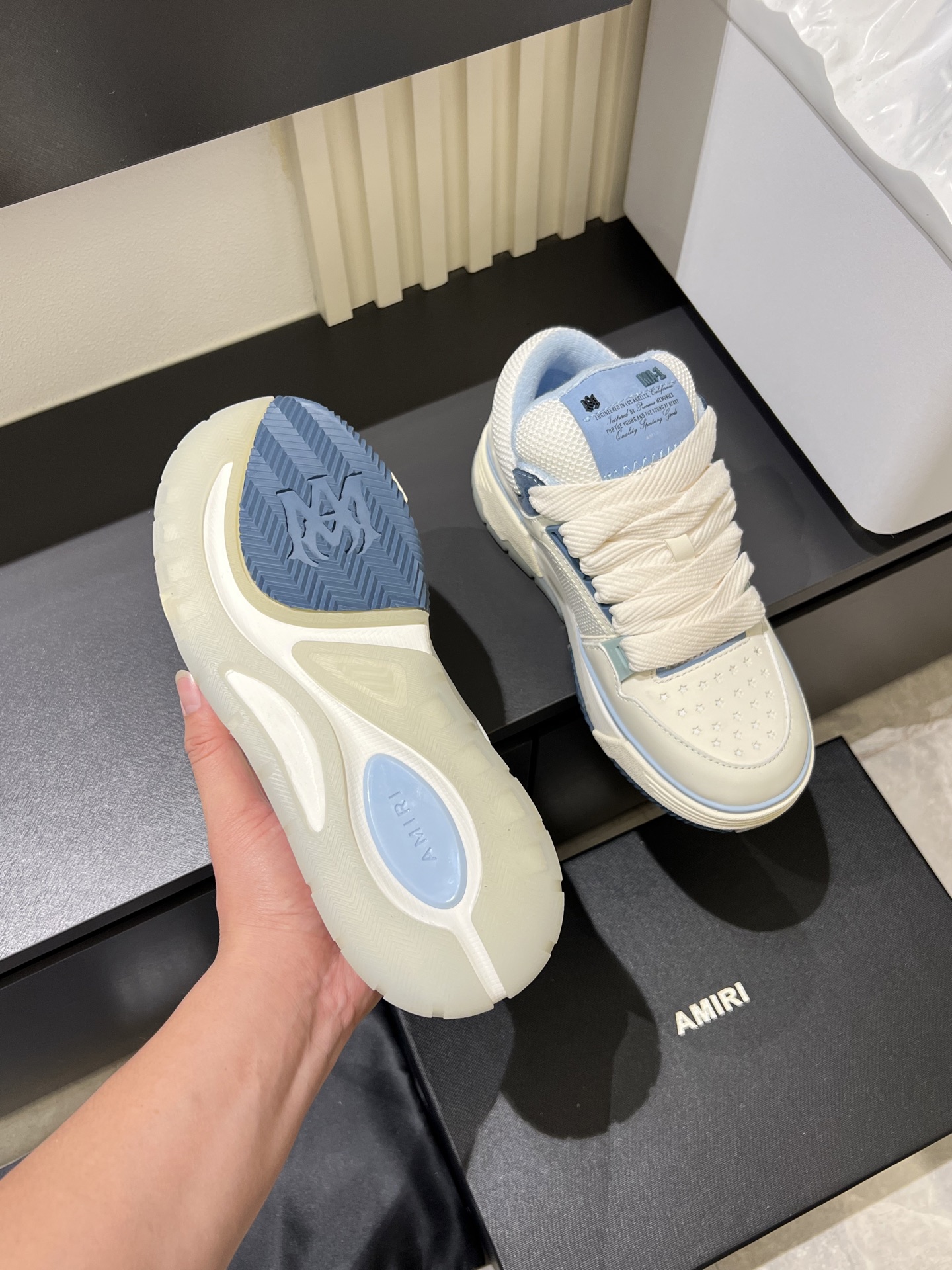 This shoes is AAAAA 1:1 quality (superb). Materials used are identical to the original ones. AMIRI trademark marks are indistinguishable to the authentic. Photos take by actual shoes, what you receive will be 100% same with our photos.