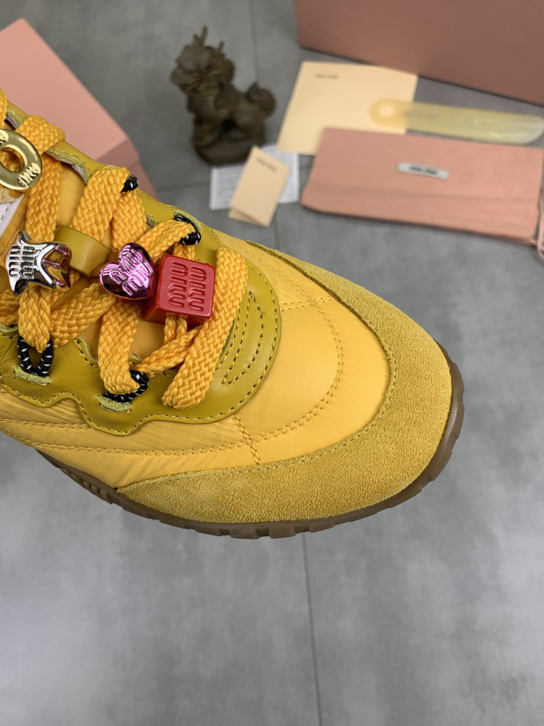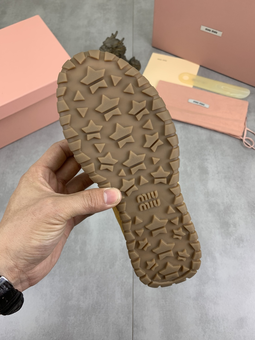 This shoes is AAAAA 1:1 quality (superb). Materials used are identical to the original ones. Miu Miu trademark marks are indistinguishable to the authentic. Photos take by actual shoes, what you receive will be 100% same with our photos.