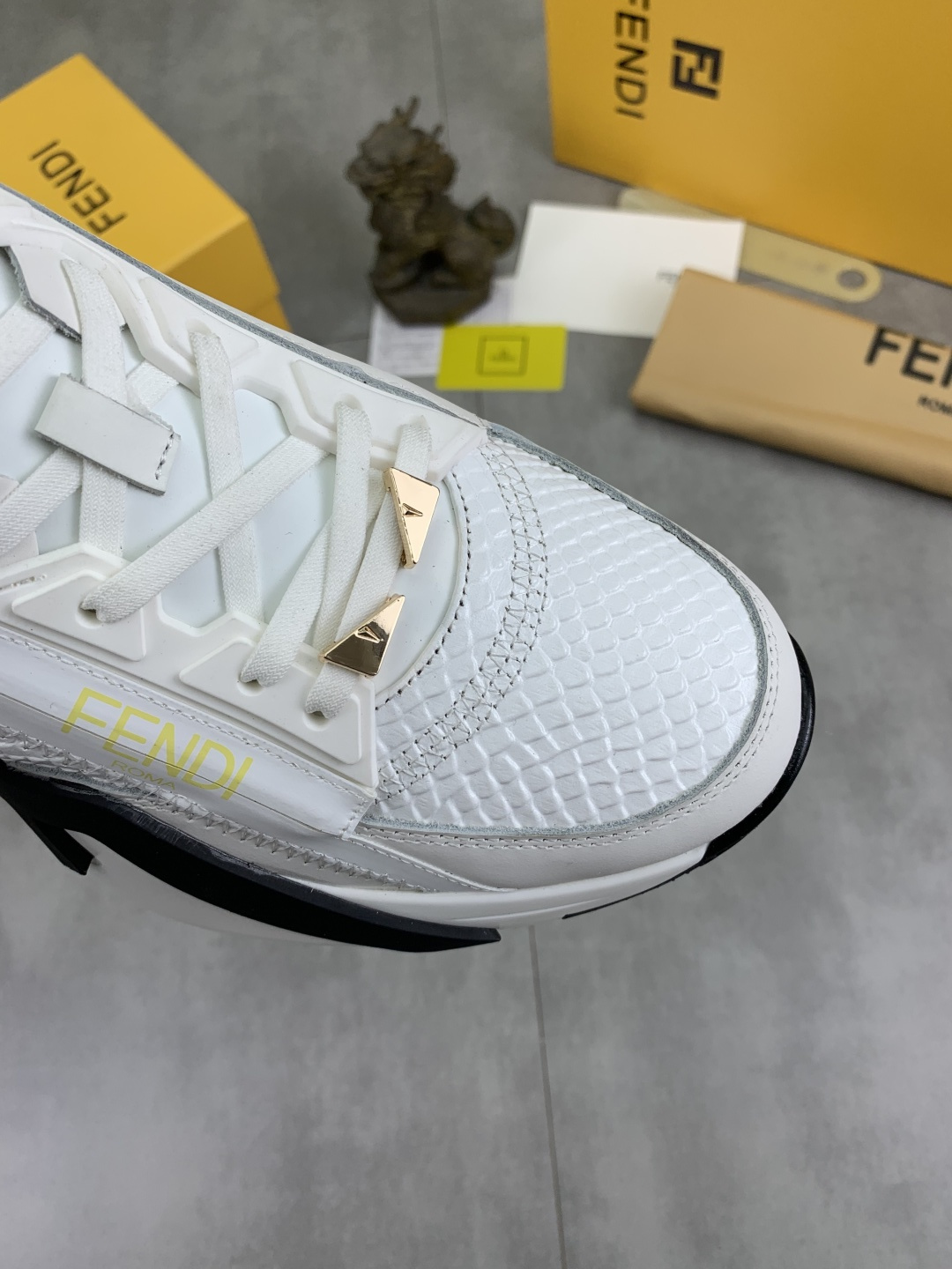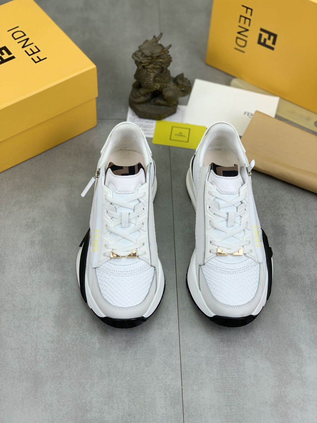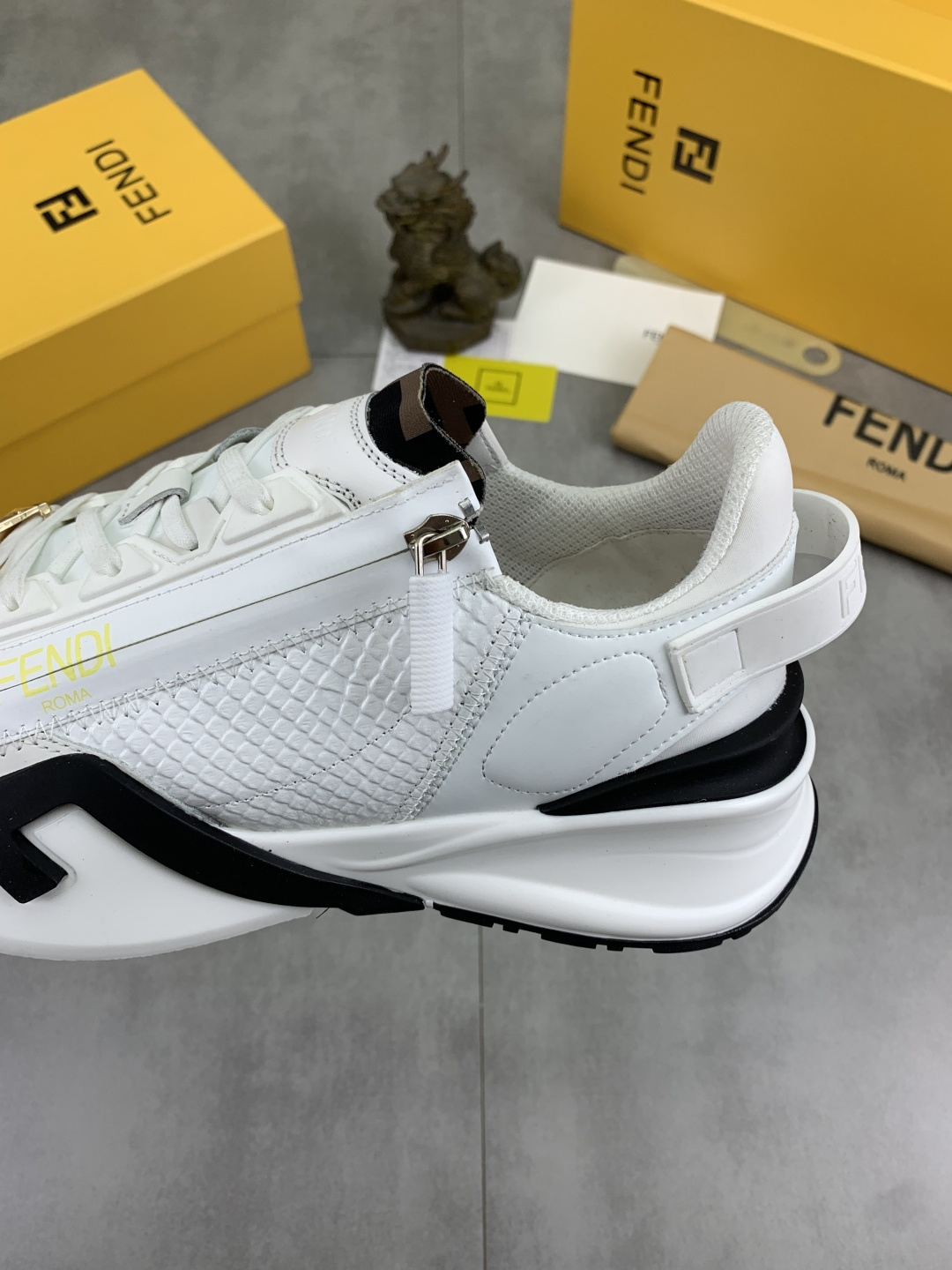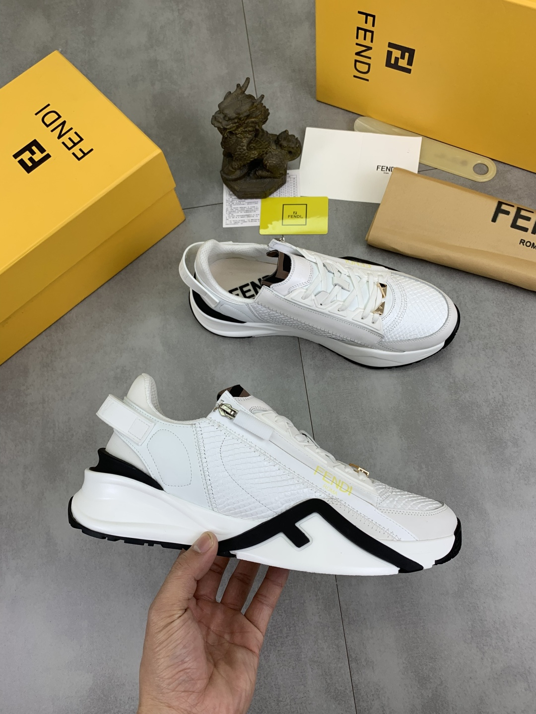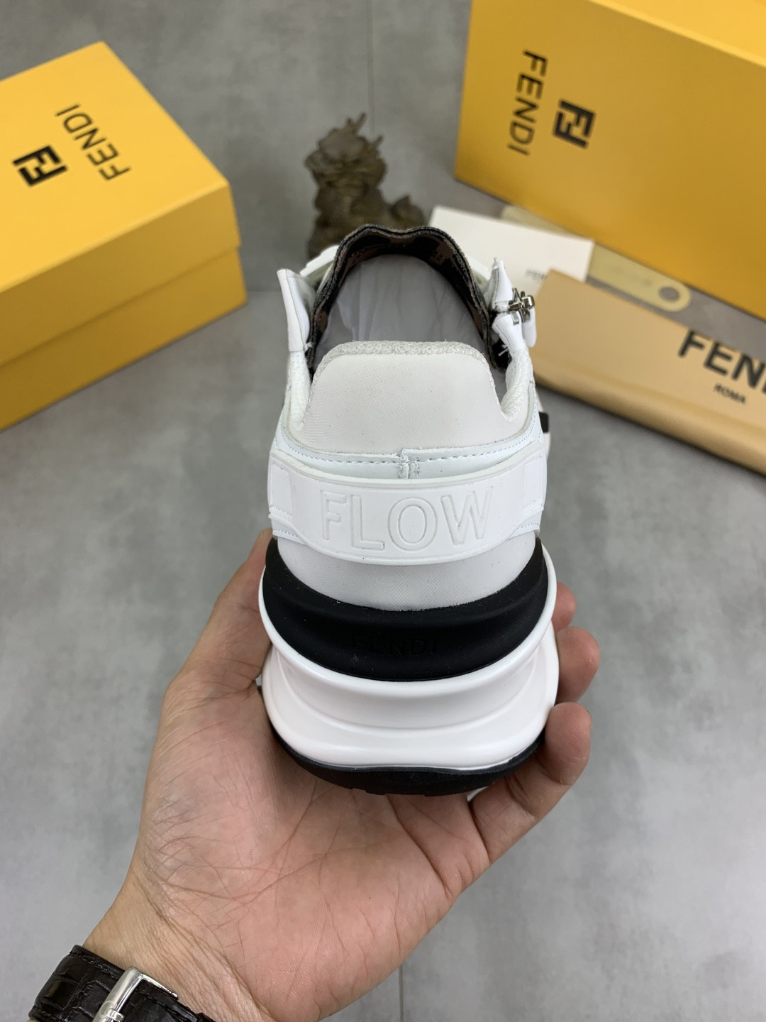This shoes is AAAAA 1:1 quality (superb). Materials used are identical to the original ones. Fendi trademark marks are indistinguishable to the authentic. Photos take by actual shoes, what you receive will be 100% same with our photos.