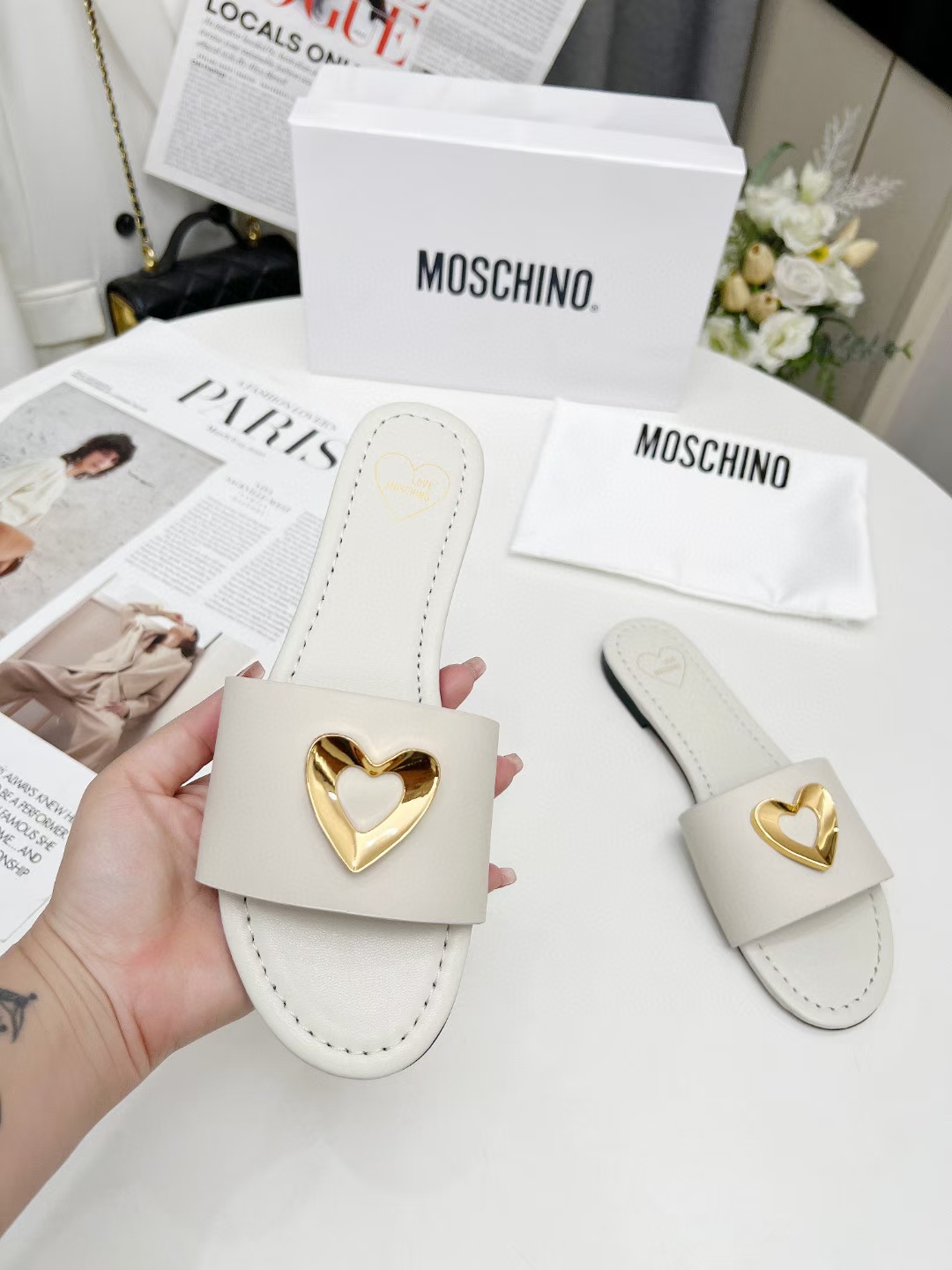 This shoes is AAAAA 1:1 quality (superb). Materials used are identical to the original ones. Moschino trademark marks are indistinguishable to the authentic. Photos take by actual shoes, what you receive will be 100% same with our photos.