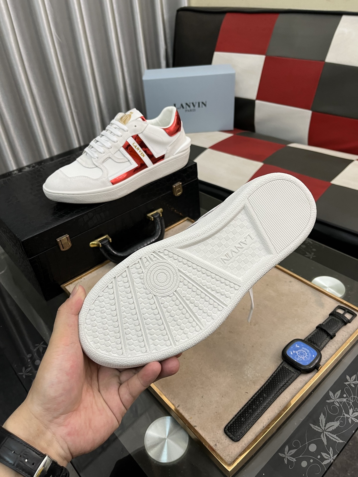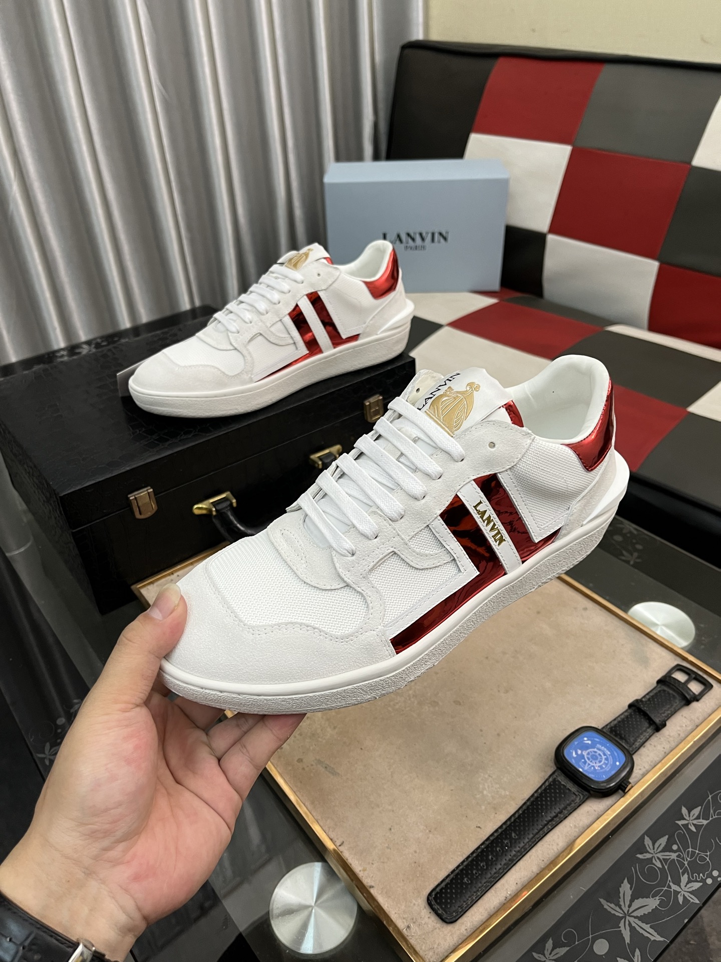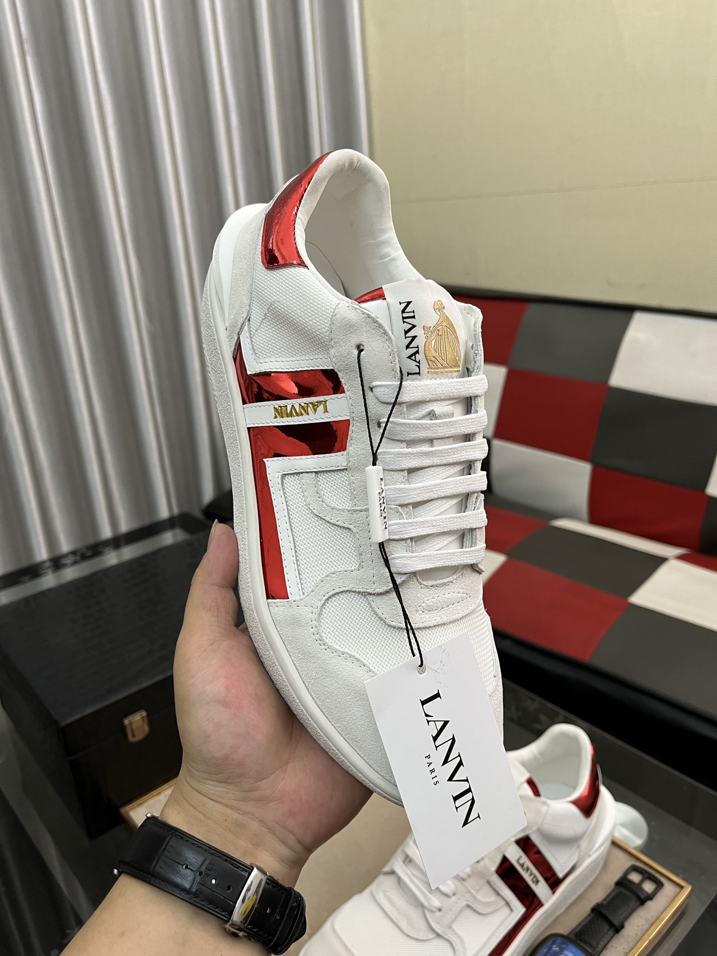 This shoes is AAAAA 1:1 quality (superb). Materials used are identical to the original ones. Lanvin trademark marks are indistinguishable to the authentic. Photos take by actual shoes, what you receive will be 100% same with our photos.