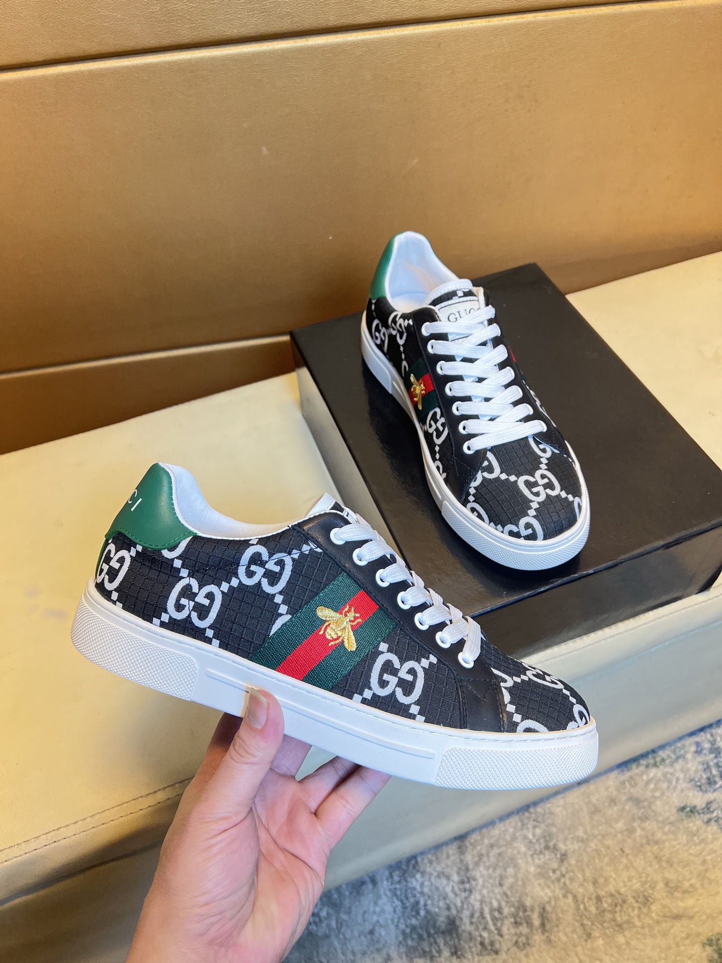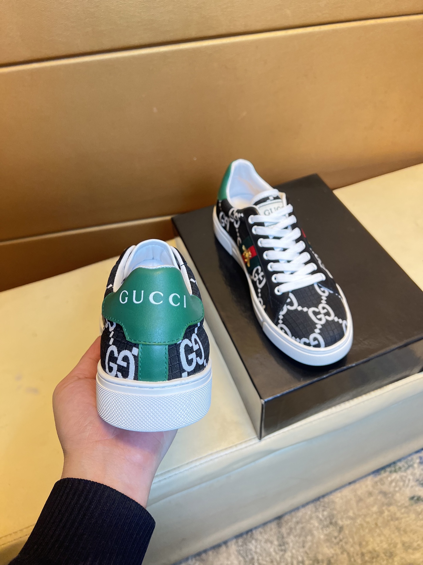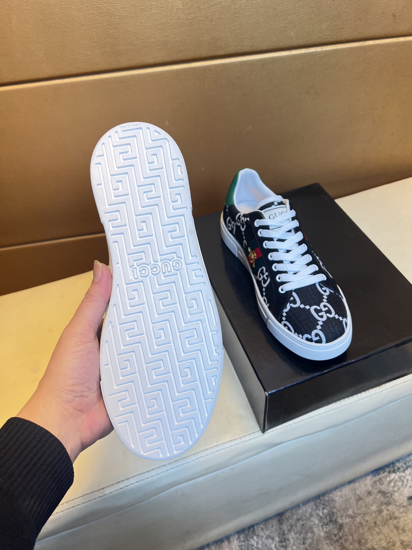 This shoes is AAAAA 1:1 quality (superb). Materials used are identical to the original ones. Gucci trademark marks are indistinguishable to the authentic. Photos take by actual shoes, what you receive will be 100% same with our photos.