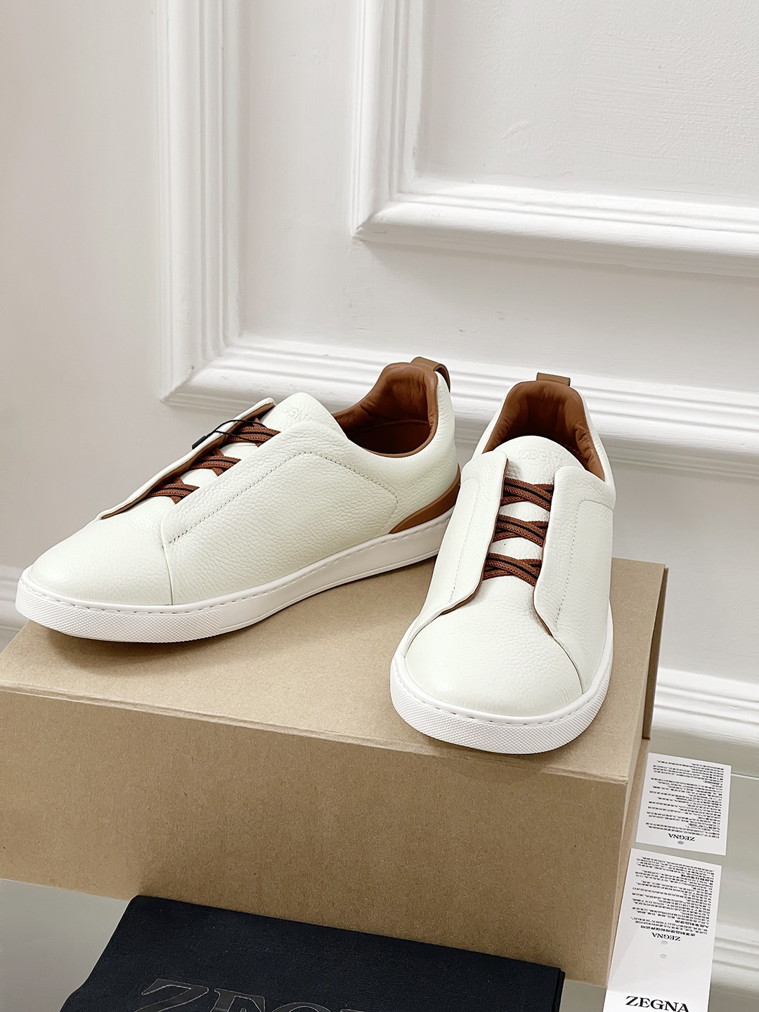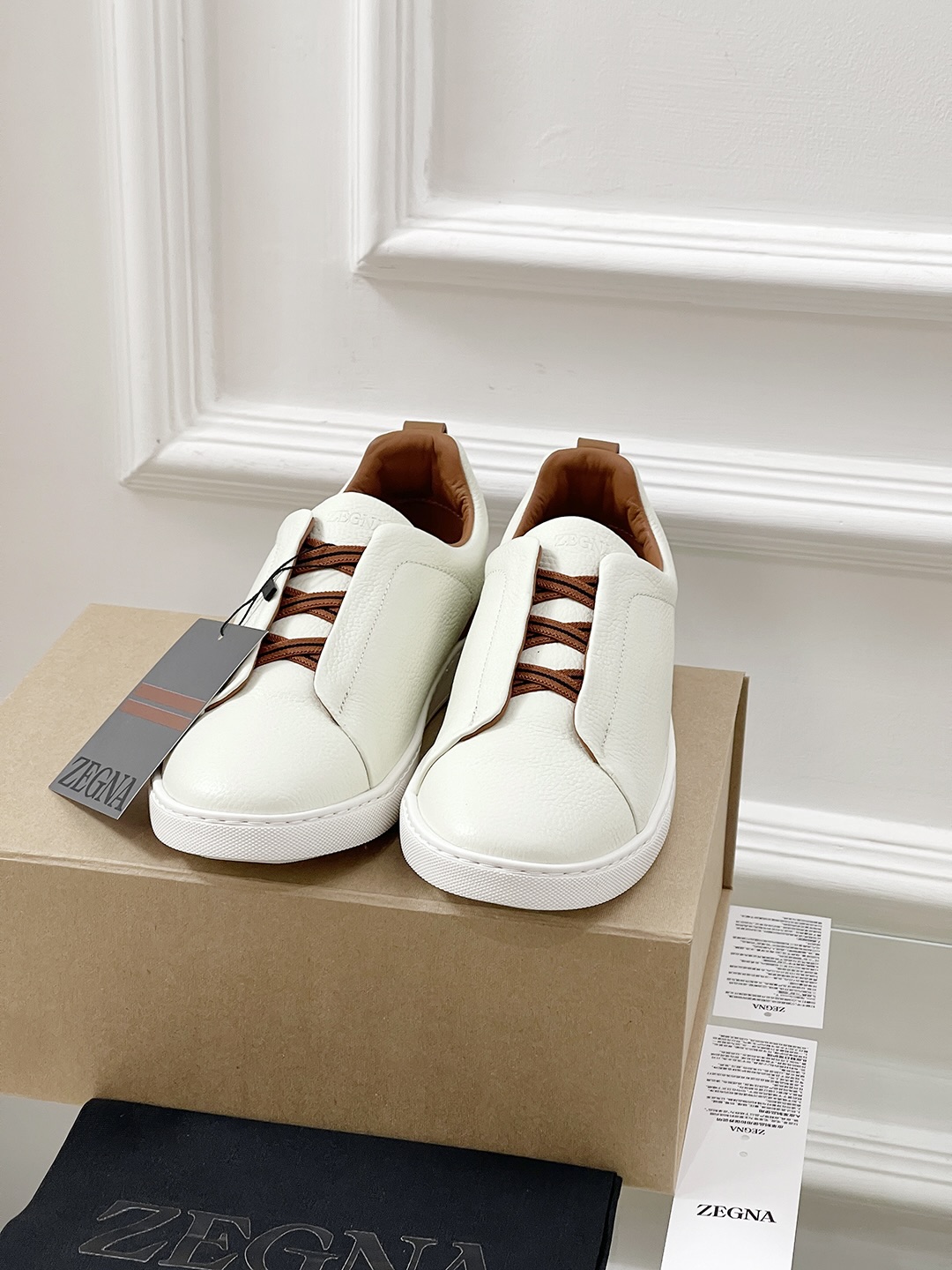 This shoes is AAAAA 1:1 quality (superb). Materials used are identical to the original ones. Zegna trademark marks are indistinguishable to the authentic. Photos take by actual shoes, what you receive will be 100% same with our photos.