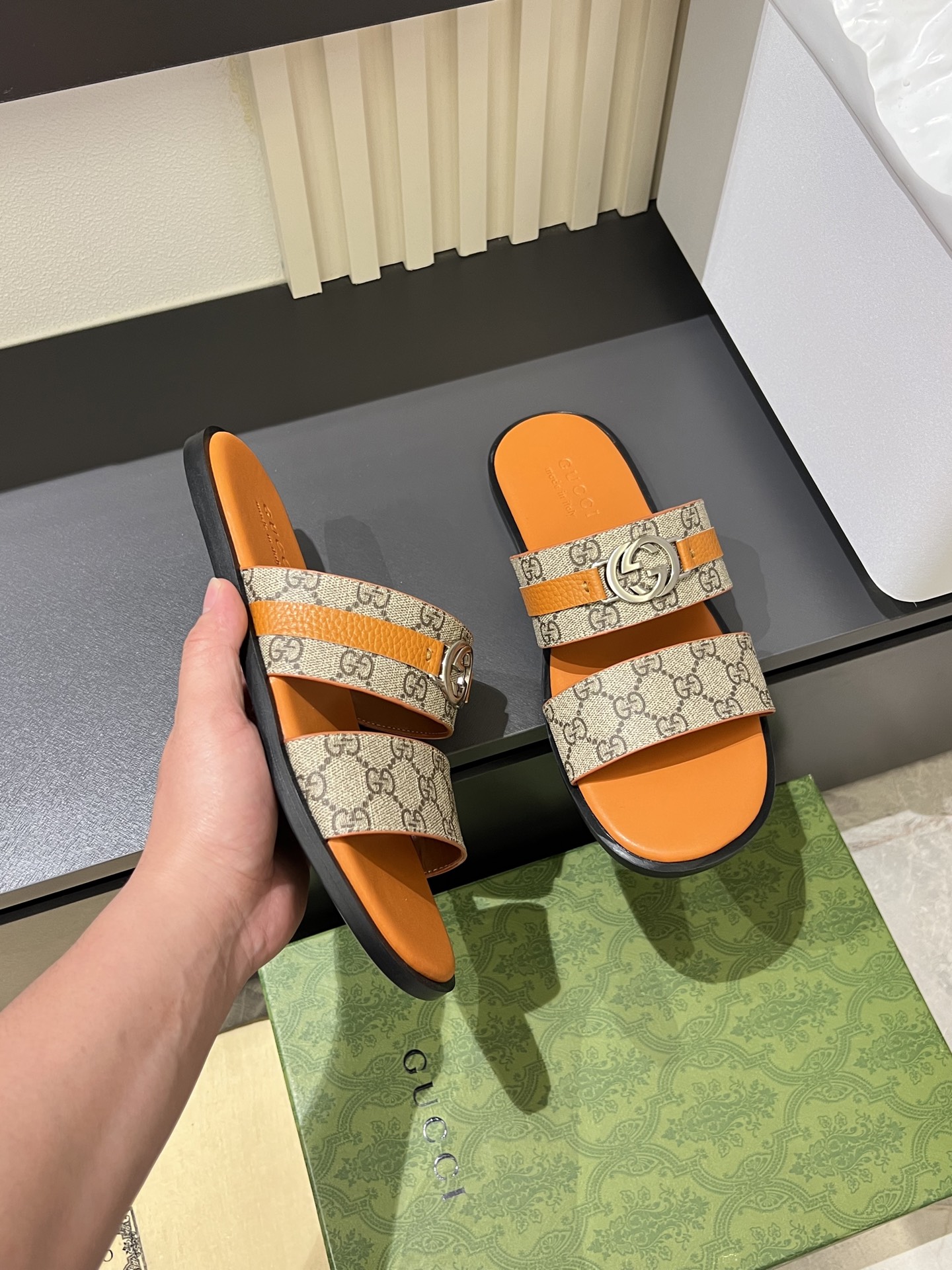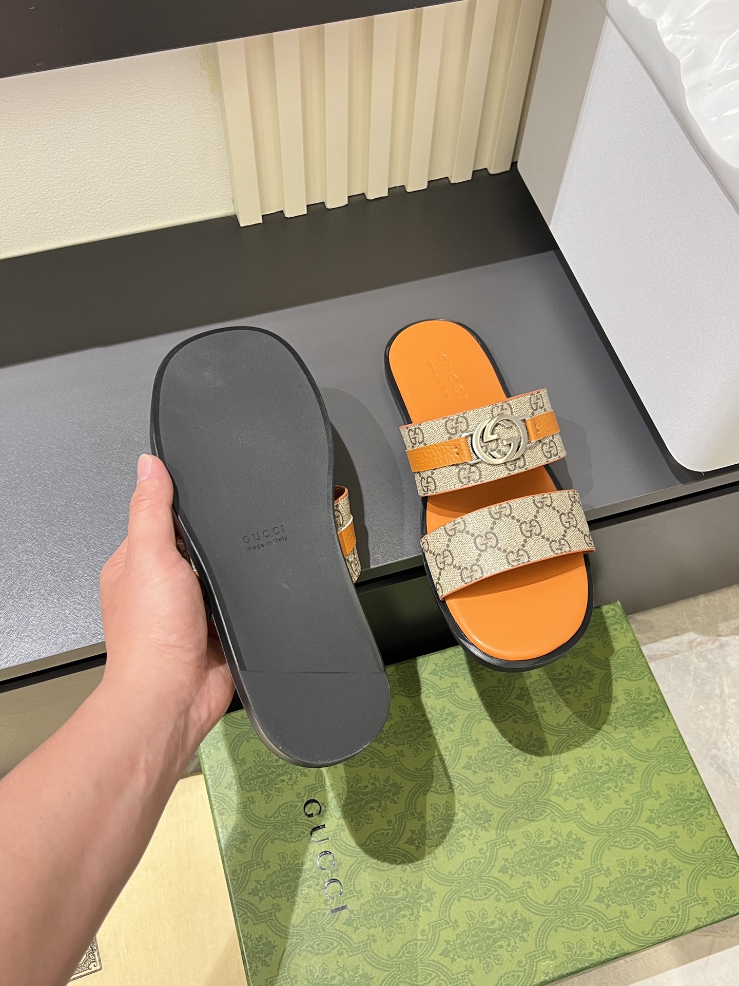 This shoes is AAAAA 1:1 quality (superb). Materials used are identical to the original ones. Gucci trademark marks are indistinguishable to the authentic. Photos take by actual shoes, what you receive will be 100% same with our photos.